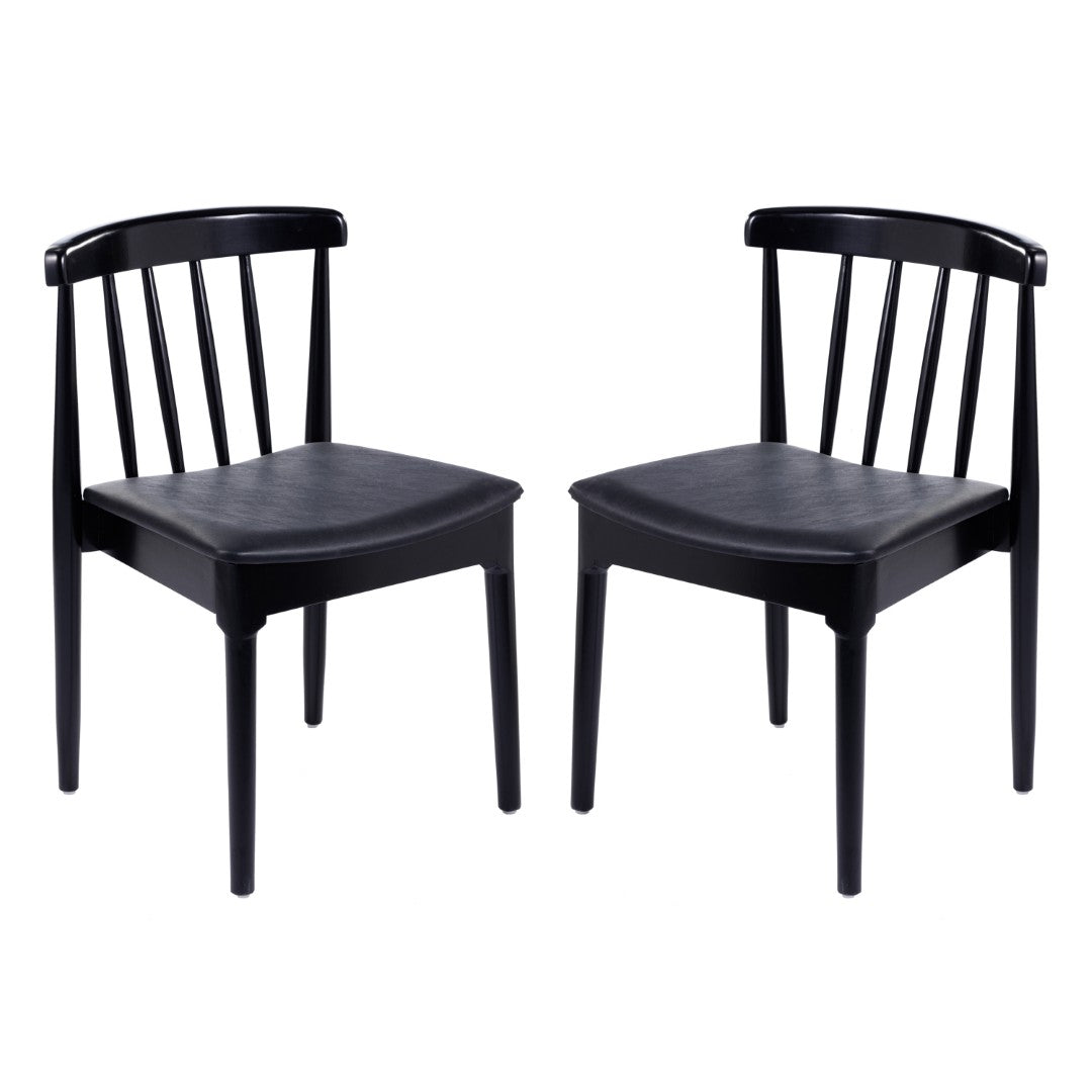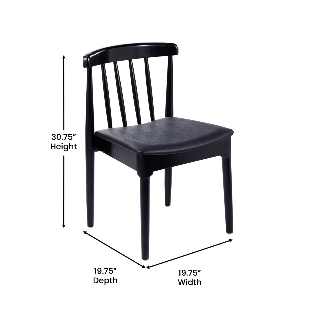 Bring classic charm and commercial-grade durability to your dining or hospitality space with this set of two solid beechwood chairs. Their curved spindle backrests and padded vinyl seats combine traditional styling with practical comfort, while robust mortise-and-tenon construction and protective glides ensure reliable performance in high-traffic environments. Ready to use straight out of the box and simple to clean, these versatile chairs are ideal for restaurants, bistros, hotels, or busy homes.