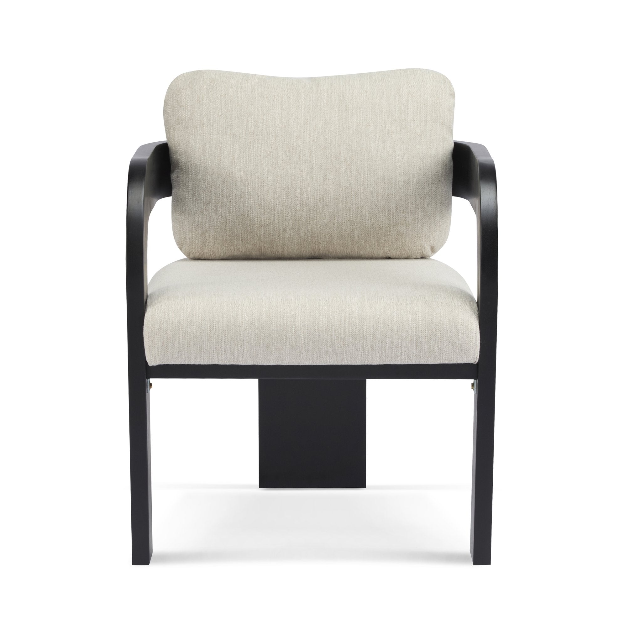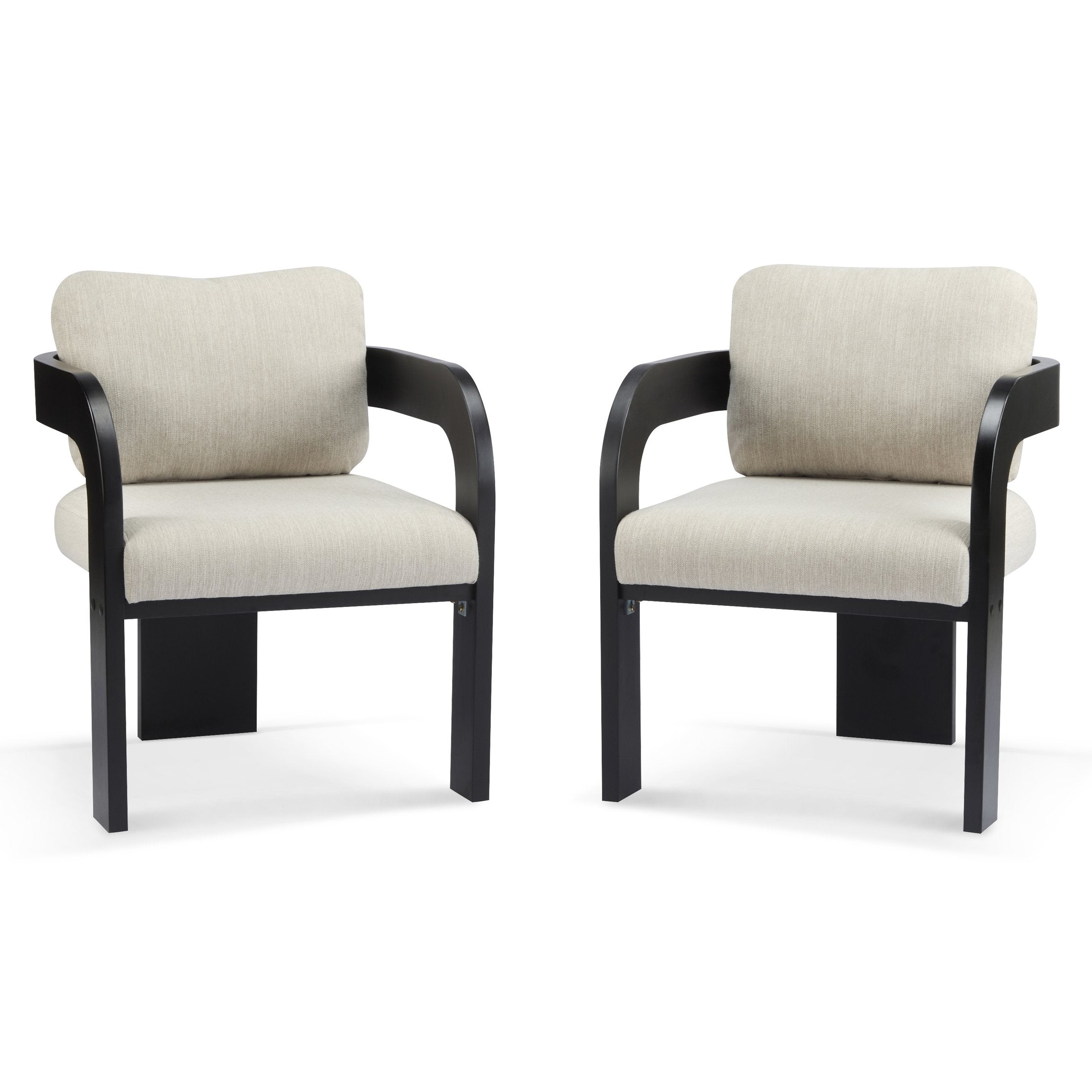 Elevate your dining area with this elegant 2-piece chair set that blends comfort, durability, and modern style. Upholstered in soft beige fabric with matching pillow backs, these chairs provide supportive, cushioned seating while the black solid rubber wood frame and gently curved arms add a refined, contemporary touch. Designed for everyday use and entertaining, they strike a balance between compact footprint and solid construction.