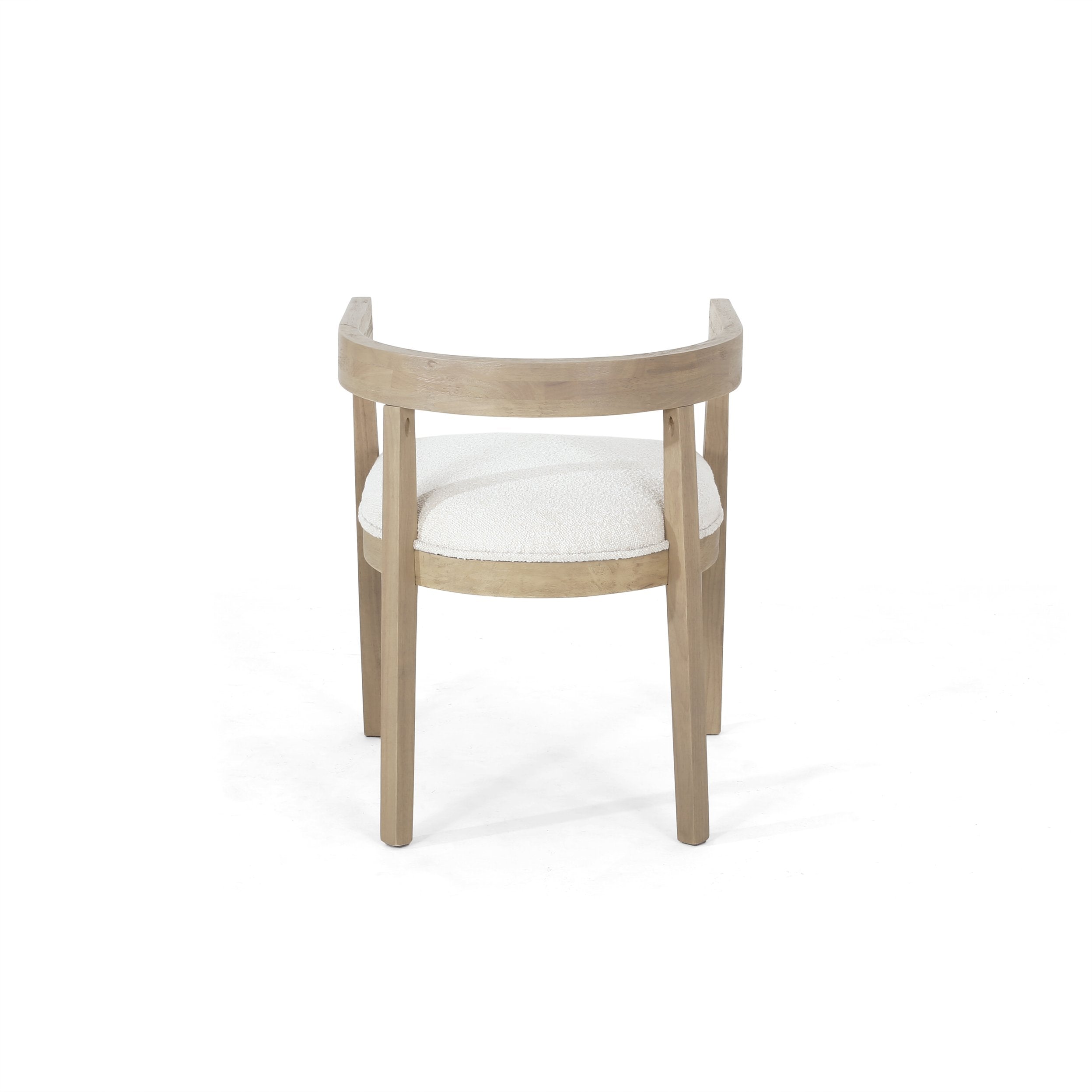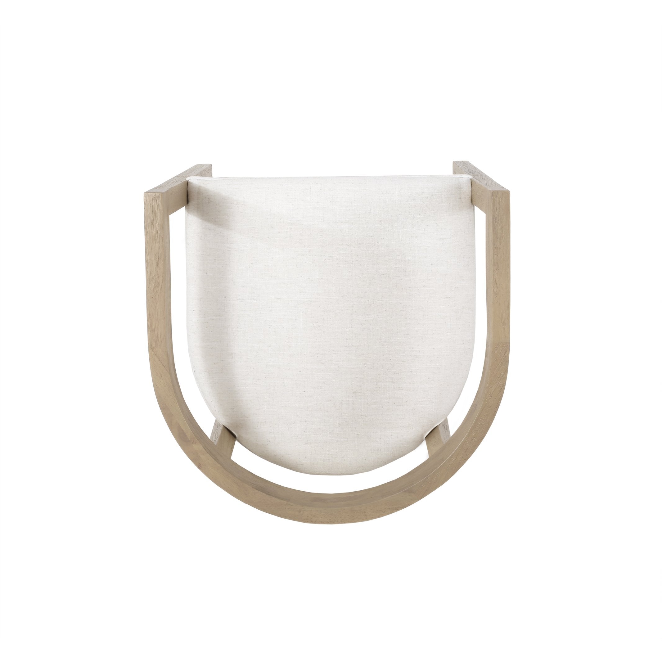 Refresh your dining area with this elegant beige upholstered arm chair that blends contemporary minimalism with mid-century warmth. Its rounded tub silhouette and polished rubberwood frame create a refined, inviting seat that works equally well as part of a matching set or as a standalone accent. The plush fabric upholstery and thoughtful ergonomics deliver everyday comfort while the clean open-back design keeps your space feeling light and modern.
