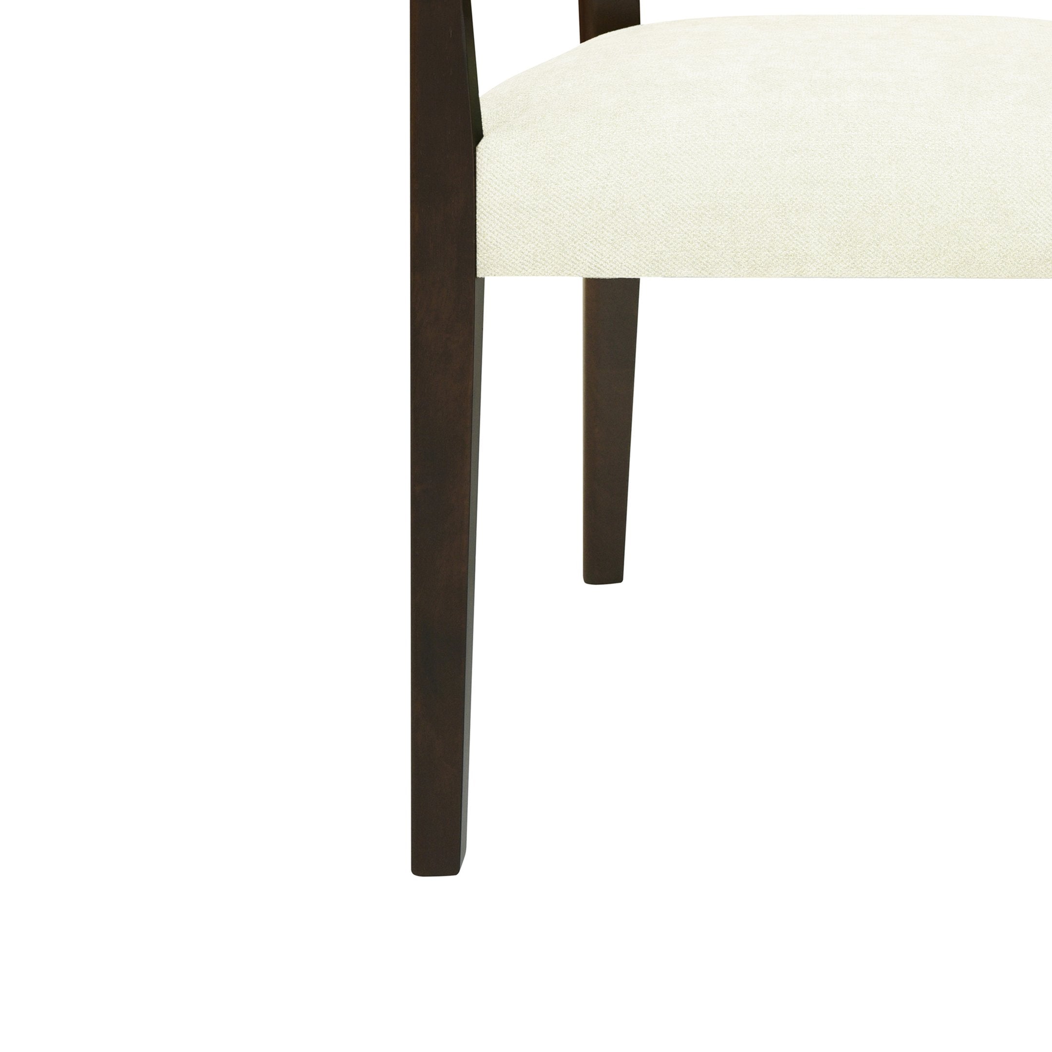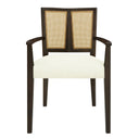 Elevate your dining area with these stylish and comfortable arm dining chairs, offered as a set of two. Blending mid-century modern lines with natural materials, they feature a distinctive rattan back and cushioned fabric seat that bring warmth and texture to any dining room, living room, or bedroom. Built with a durable solid wood frame and high-density foam cushion, these chairs deliver lasting support and everyday comfort while enhancing your décor.