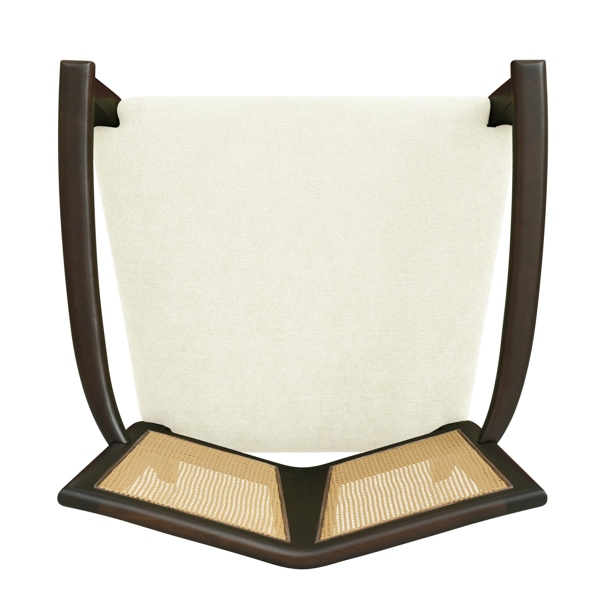 - Materials: Solid rubberwood frame for strength and eco-friendly durability; woven rattan/cane backrest for breathable support; soft fabric upholstery.