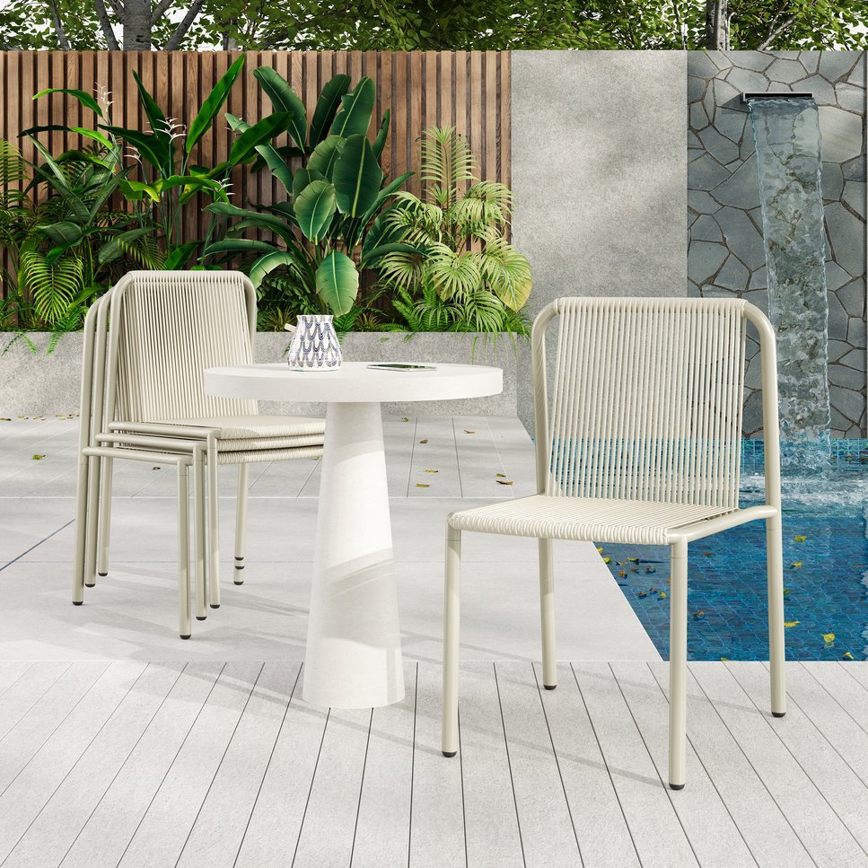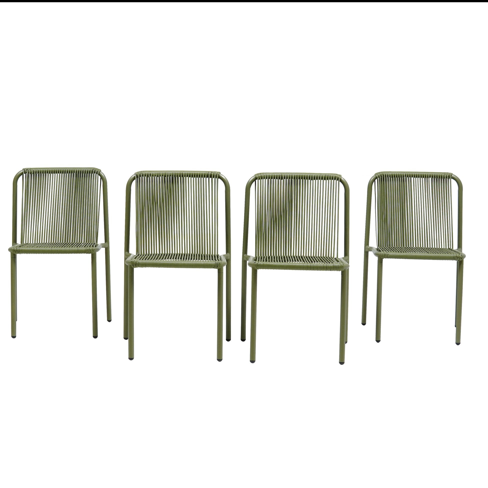 Bring comfortable, weather-ready seating to your outdoor dining area with this set of four Burgess stacking chairs. Crafted from durable PE rattan over a sturdy iron frame and finished in a fresh green, these chairs combine outdoor resilience with a refined, versatile look—ideal for patios, balconies, gardens, cafes, or poolside gatherings. Their lightweight construction and stacking capability make storage and rearranging effortless, while UV-resistant materials help preserve color and appearance season after season.