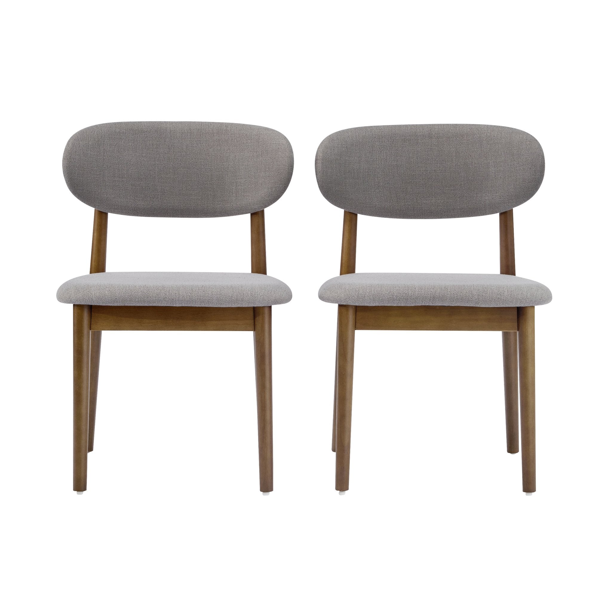 Elevate your dining or workspace with this contemporary set of two grey upholstered side chairs, featuring a sleek curved back and warm walnut legs. Designed for modern minimalism and everyday comfort, these chairs blend durable bentwood construction with soft foam cushioning to support long meals, meetings, or study sessions in compact or open-plan rooms.