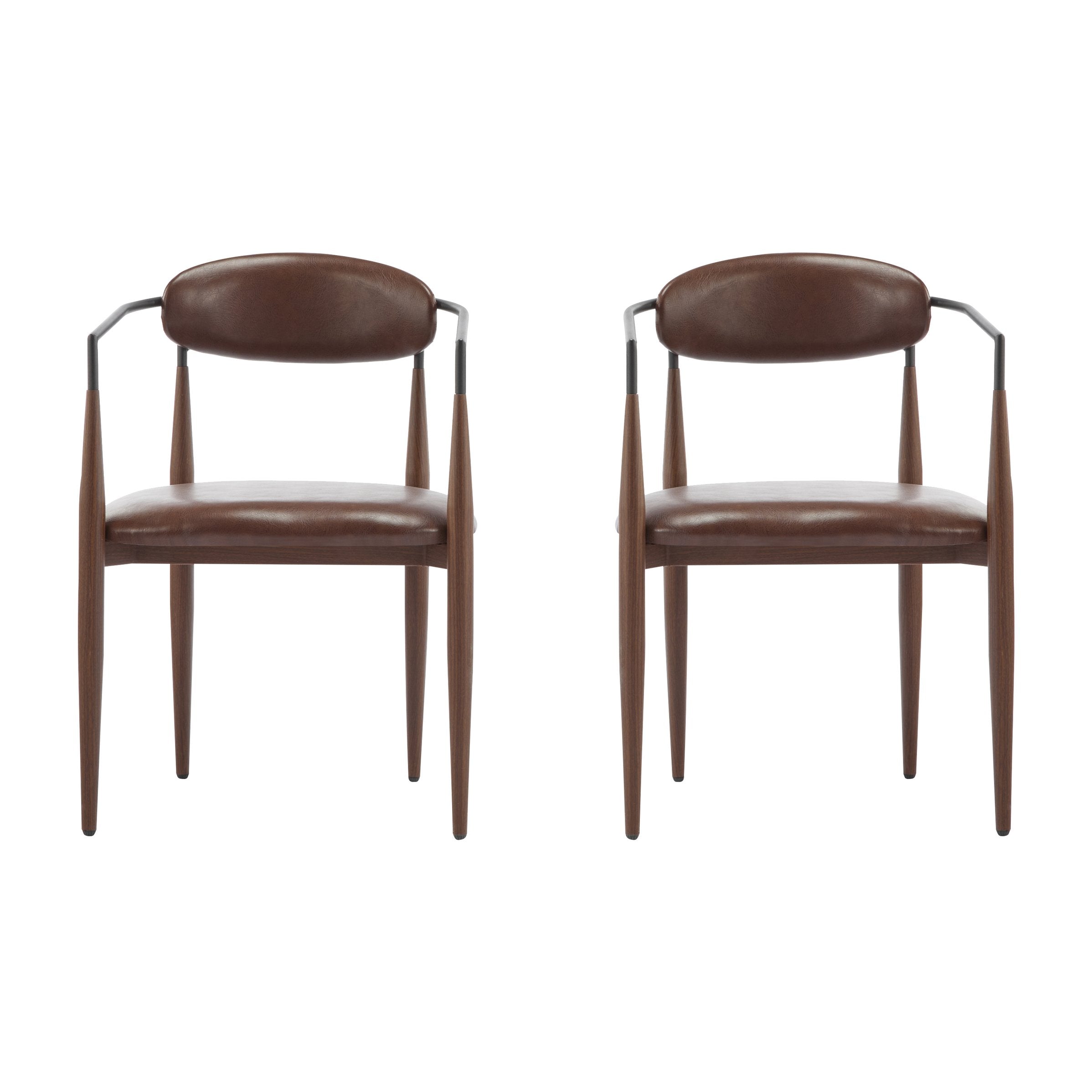 Elevate your dining area with this refined set of two upholstered arm chairs that combine modern minimalism with durable construction. Finished in dark brown PU with a sleek toothpick-style iron frame and a gently curved open backrest, these chairs deliver both visual appeal and everyday comfort—perfect for intimate dinners or casual gatherings.