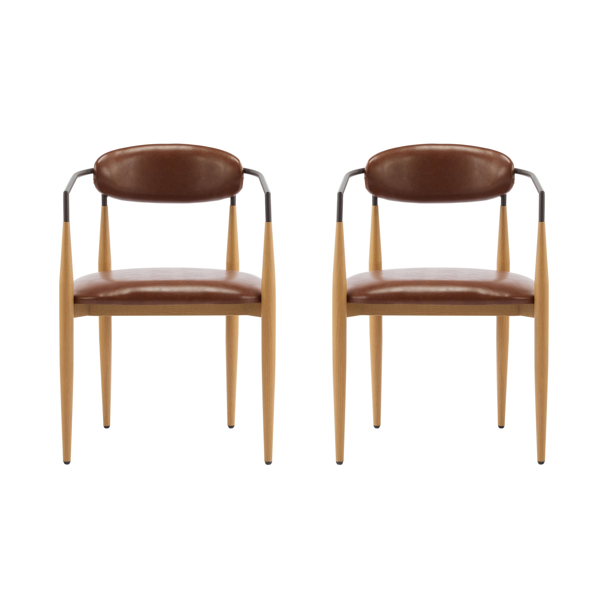 Elevate your dining area with this pair of modern upholstered arm chairs — a refined blend of comfort, durability, and contemporary style. Finished in light brown PU and supported by a sleek iron toothpick frame, these chairs bring a luxe yet understated look to any dining room while offering reliable everyday performance.