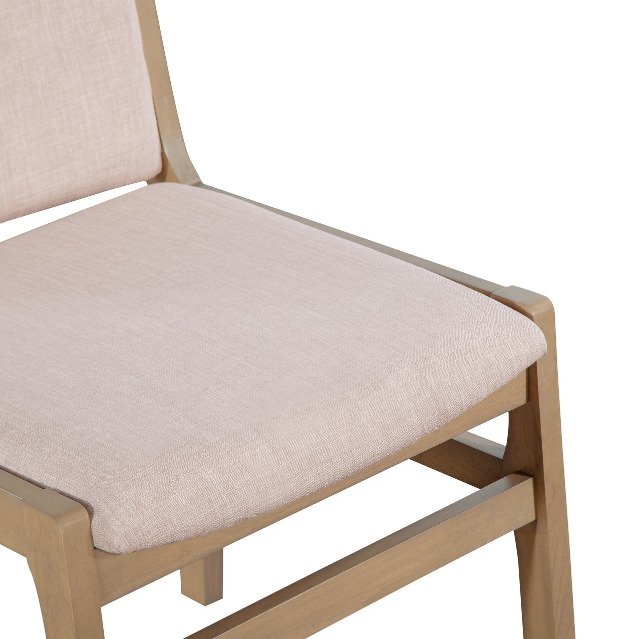 Refresh your dining space with these elegant, contemporary dining chairs in a light natural finish. Clean lines and a refined silhouette deliver a minimalist look that complements modern and transitional interiors, while plush upholstery and a durable rubberwood frame ensure lasting comfort and style. Sold as a set of two, these chairs are a tasteful, functional upgrade for breakfast nooks, dining rooms, or kitchen islands.