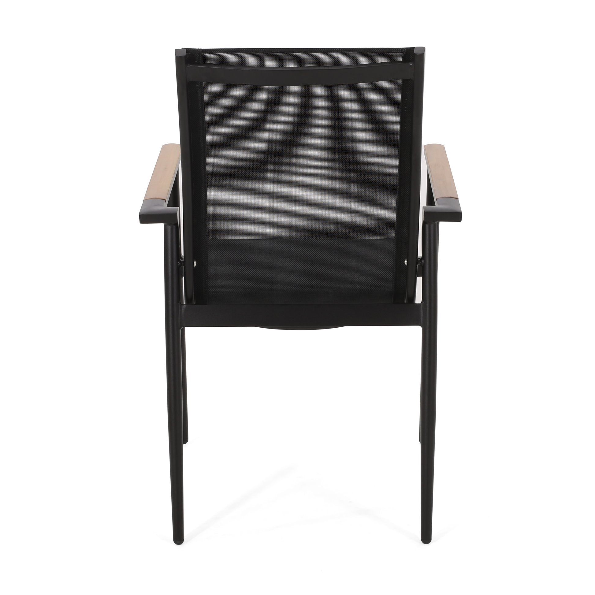 Elevate your outdoor dining area with a modern, minimalist chair that balances style, comfort, and durability. Combining a lightweight aluminum frame, breathable mesh seating, and tasteful faux wood accents, this chair brings a contemporary look while standing up to everyday outdoor use.