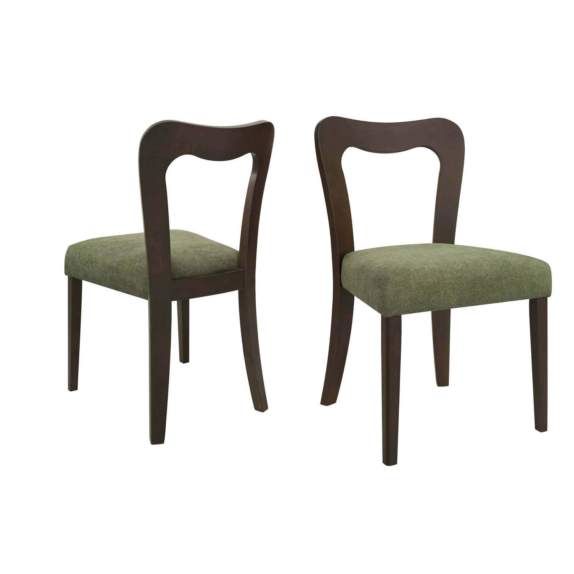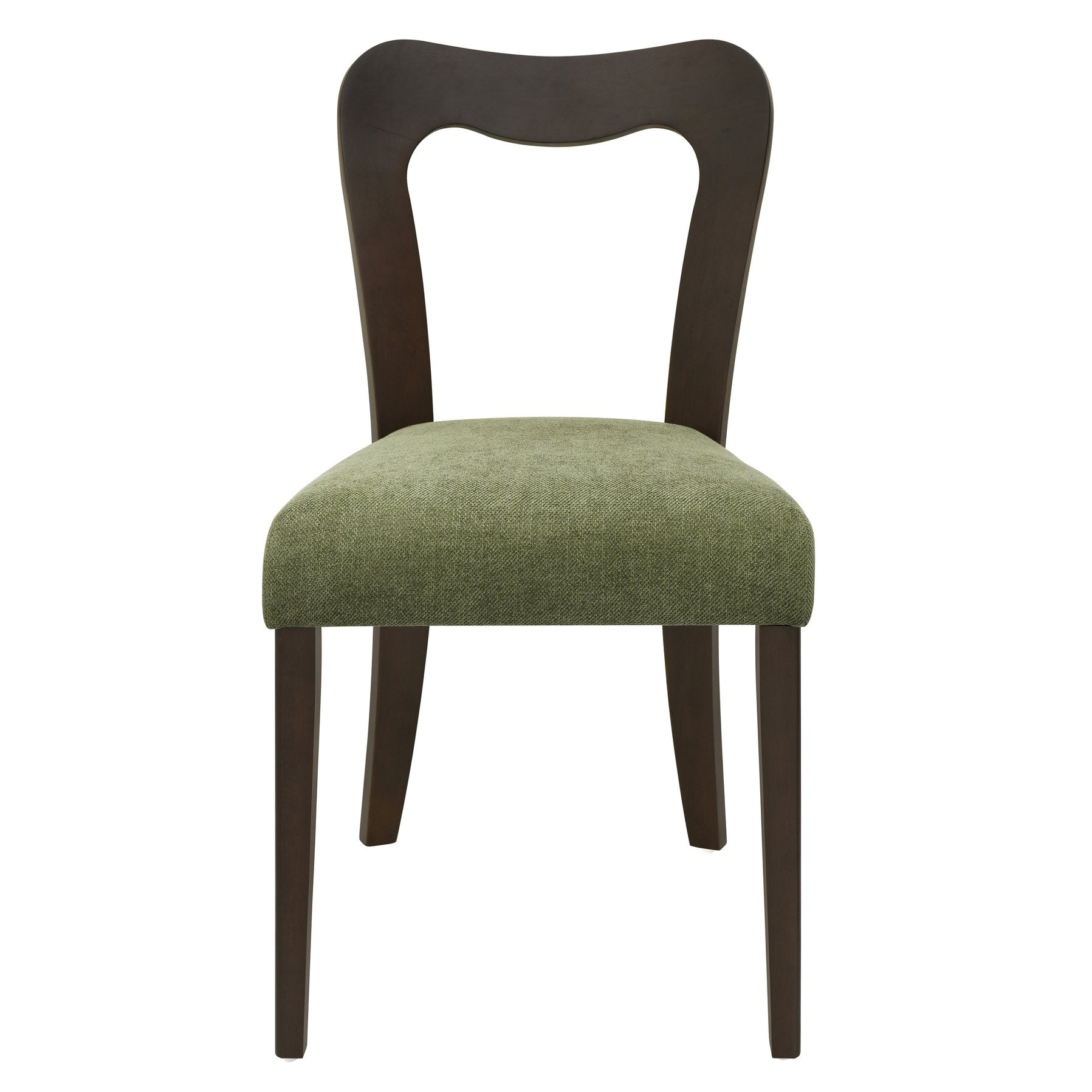 - The eye-catching design of this two-piece dining chair is our combination of classic and modern style. Clean lines and rounded backrest curves give a stylish look that perfectly matches the modern and minimalist aesthetic. The sturdy oak frame is durable and easy to maintain, while the muted interior seats give you all the comfort you need to enjoy dinner and dessert.