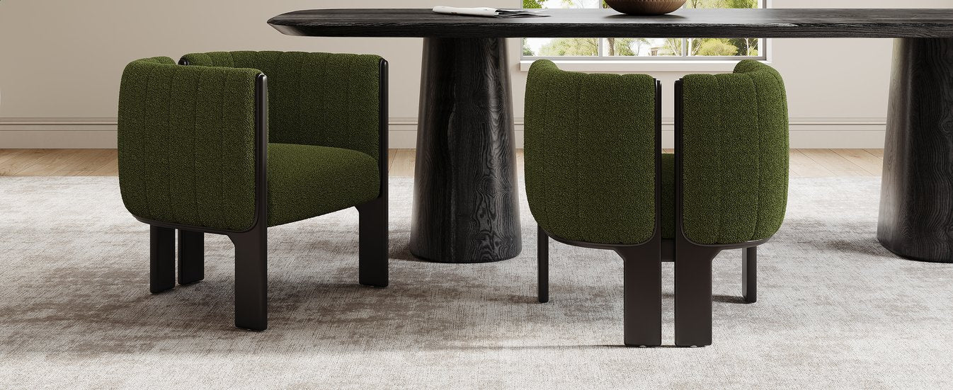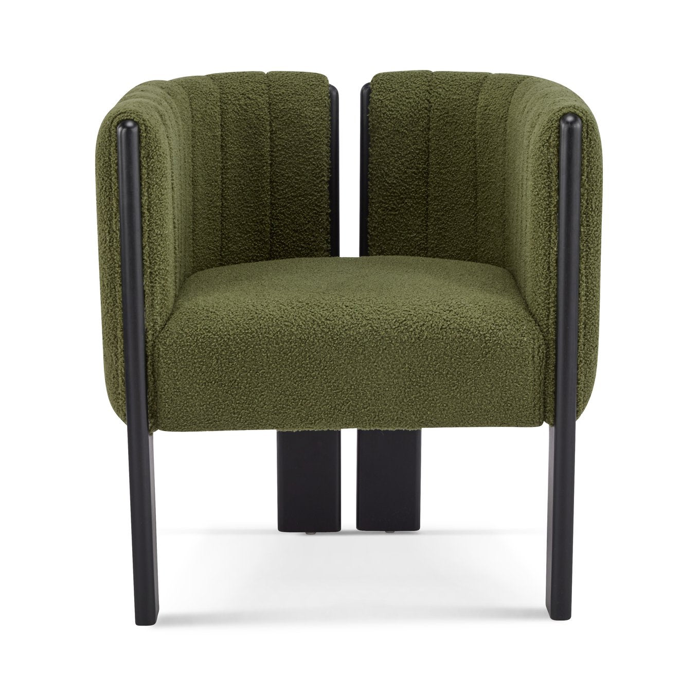 - Comfortable Upholstery: Olive green boucle fabric with plush padding for ergonomic seating during meals or gatherings