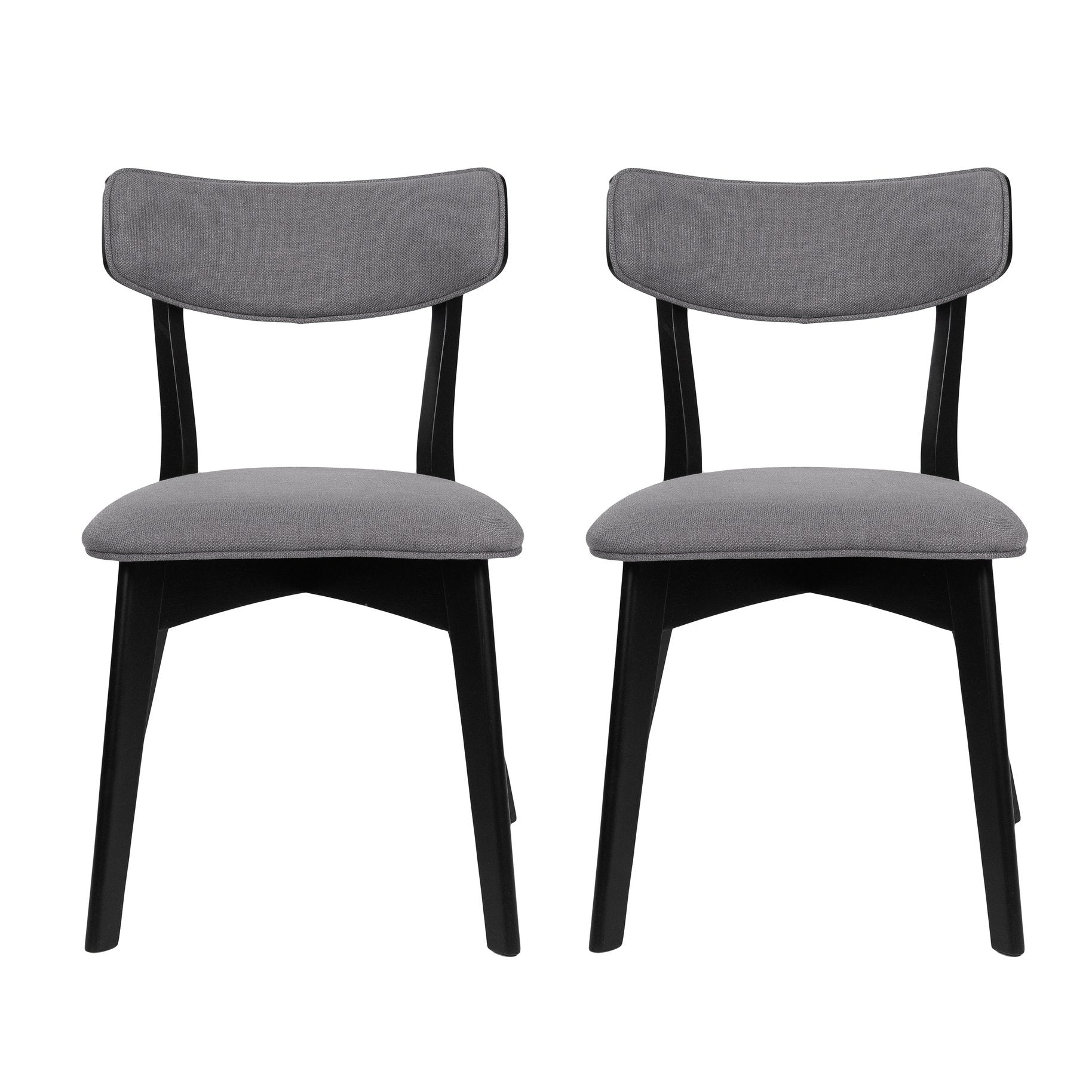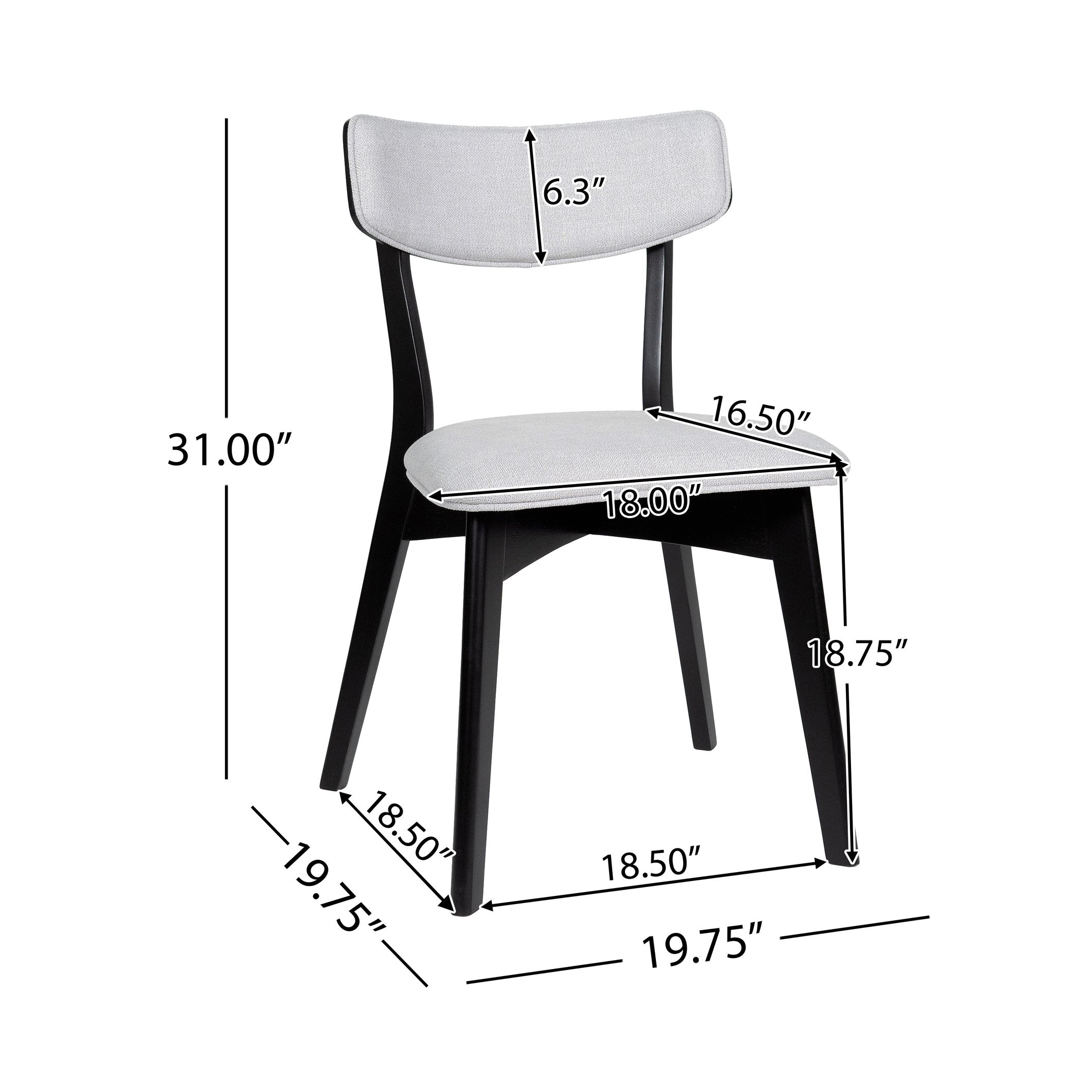 Bring mid-century modern charm and everyday comfort to your dining space with this stylish set of two light grey upholstered chairs. Thoughtfully designed with a gently curved silhouette, splayed rubberwood legs, and plush fabric seats, these chairs pair visual appeal with practical durability—ideal for dining rooms, breakfast nooks, or extra seating in living areas.