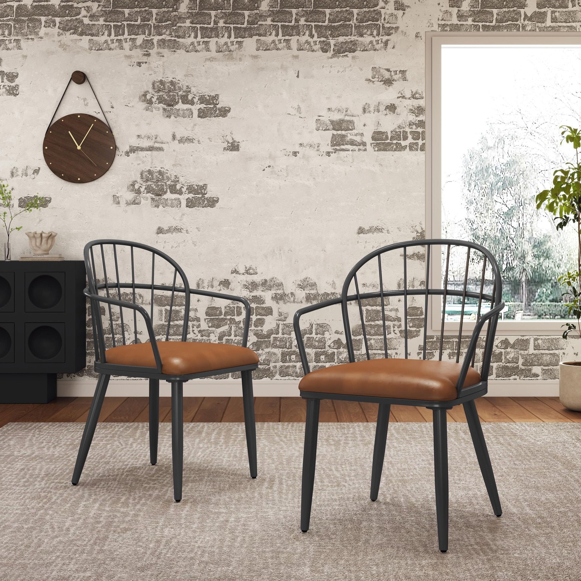 Elevate your dining space with a pair of stylish, comfortable chairs that blend industrial flair with everyday practicality. These upholstered dining chairs feature a gently arched back, butter-soft PU seating, and a sturdy matte black metal frame—designed to provide supportive comfort and a refined look for meals, work-from-home setups, or casual seating.