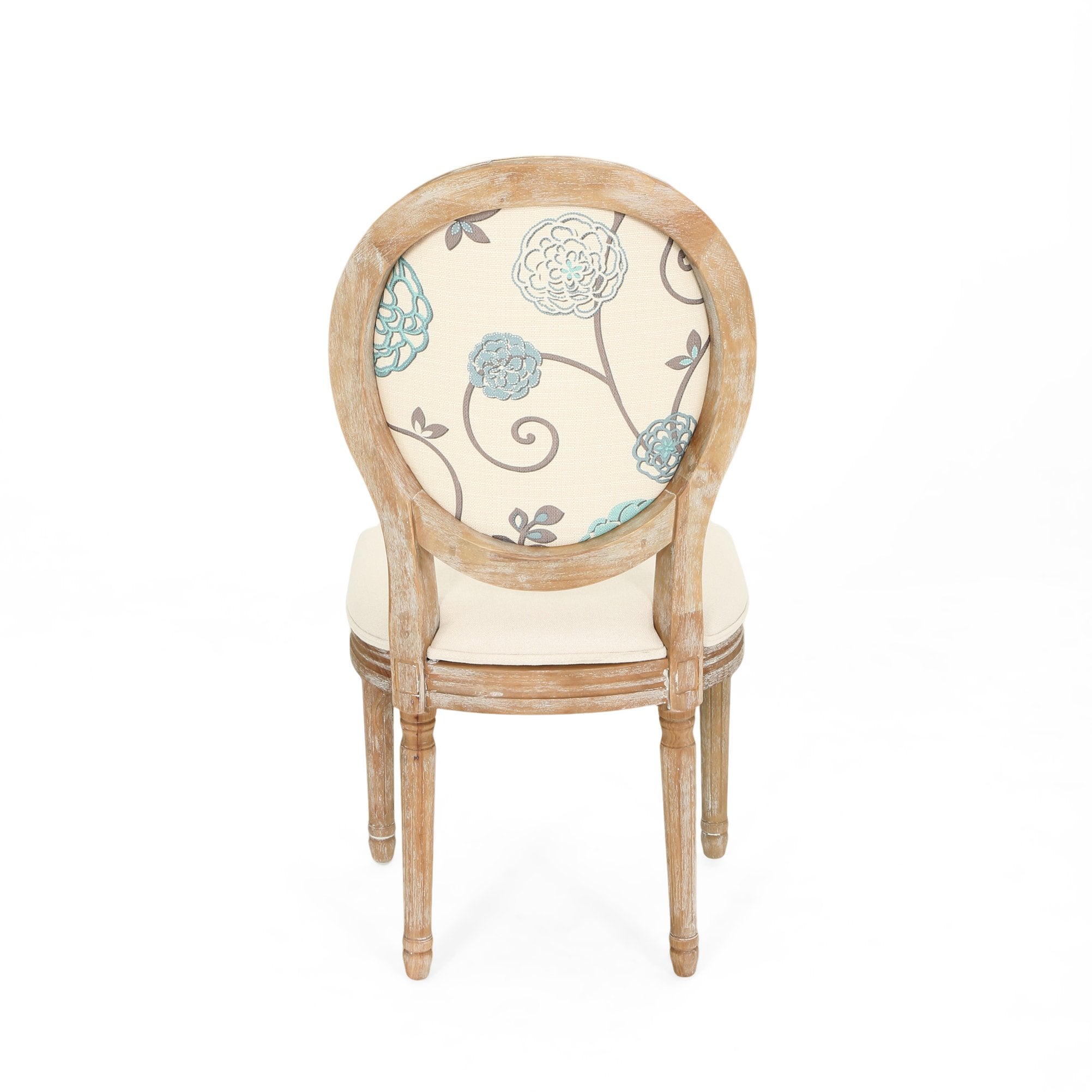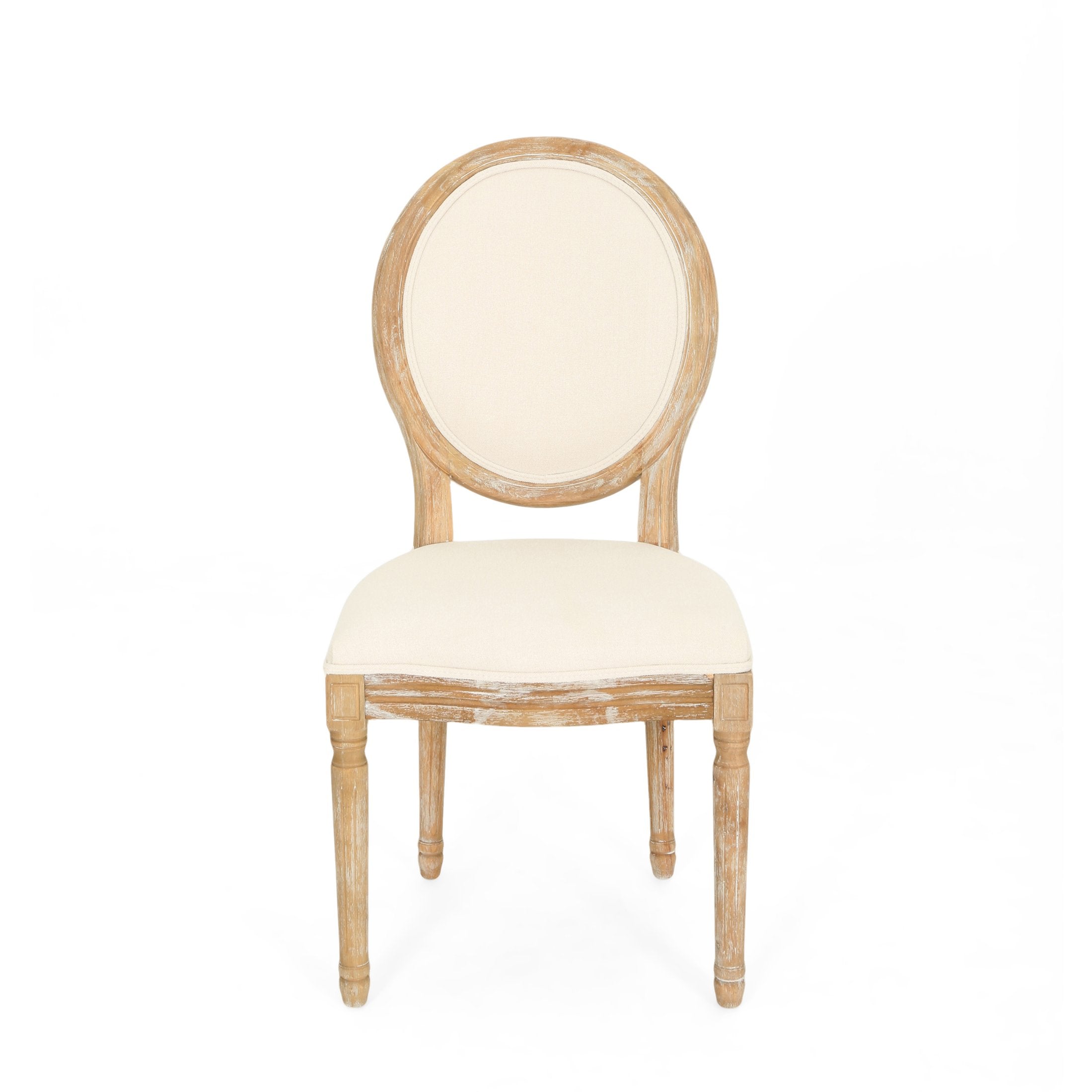 Bring timeless French-country charm to your dining space with this set of two upholstered dining chairs. Designed with an iconic rounded backrest, fluted legs, and plush fabric upholstery, these chairs blend classic elegance with everyday comfort—perfect for family meals, entertaining, or creating a cozy conversation nook.