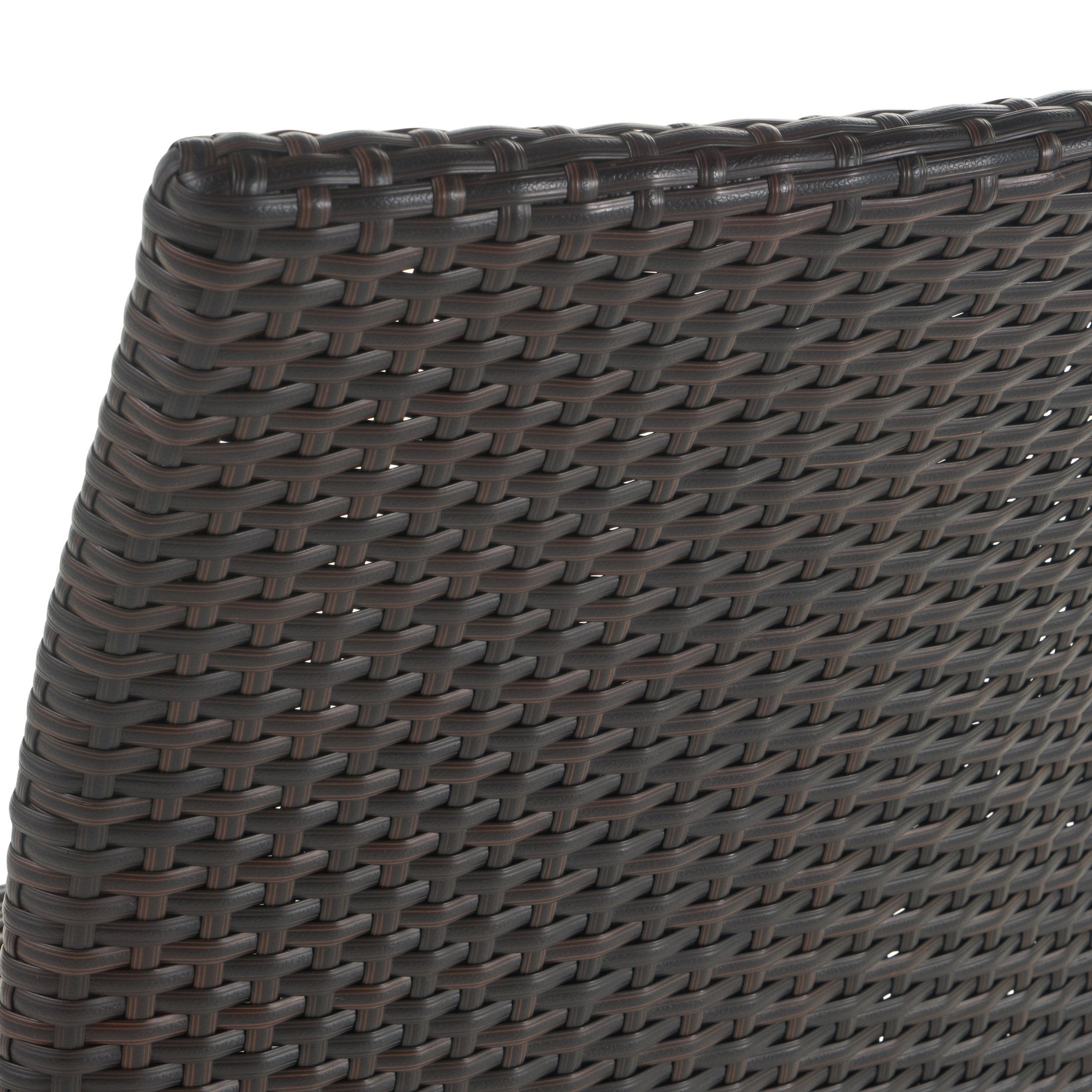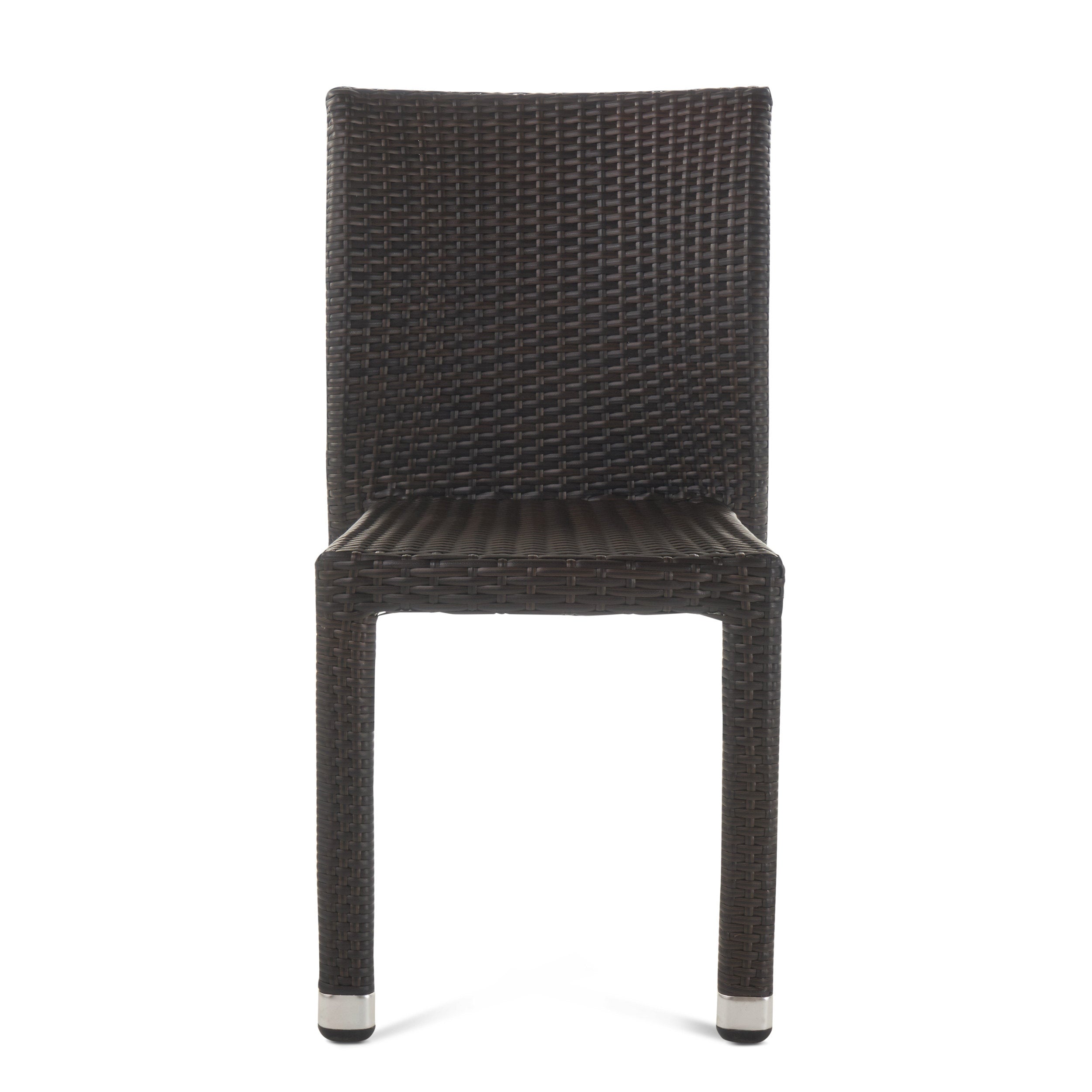 Elevate your outdoor dining and lounging area with this contemporary armless rattan chair set. Crafted for comfort and built to complement modern patio aesthetics, the set features a detailed wicker finish and a lightweight aluminum frame for durability and easy handling. Stackable for convenient storage, these chairs blend practicality with refined style to create a cohesive, inviting outdoor space.