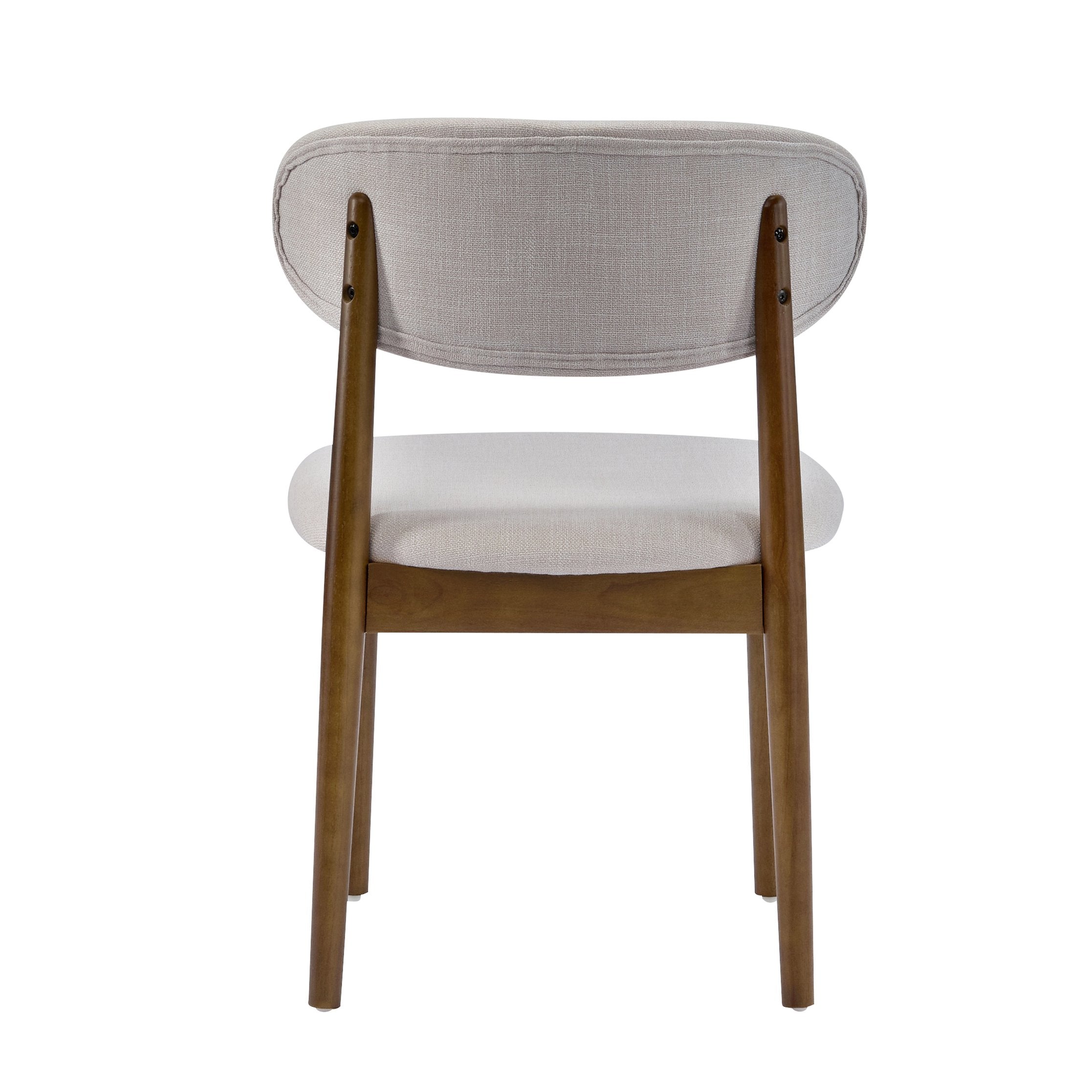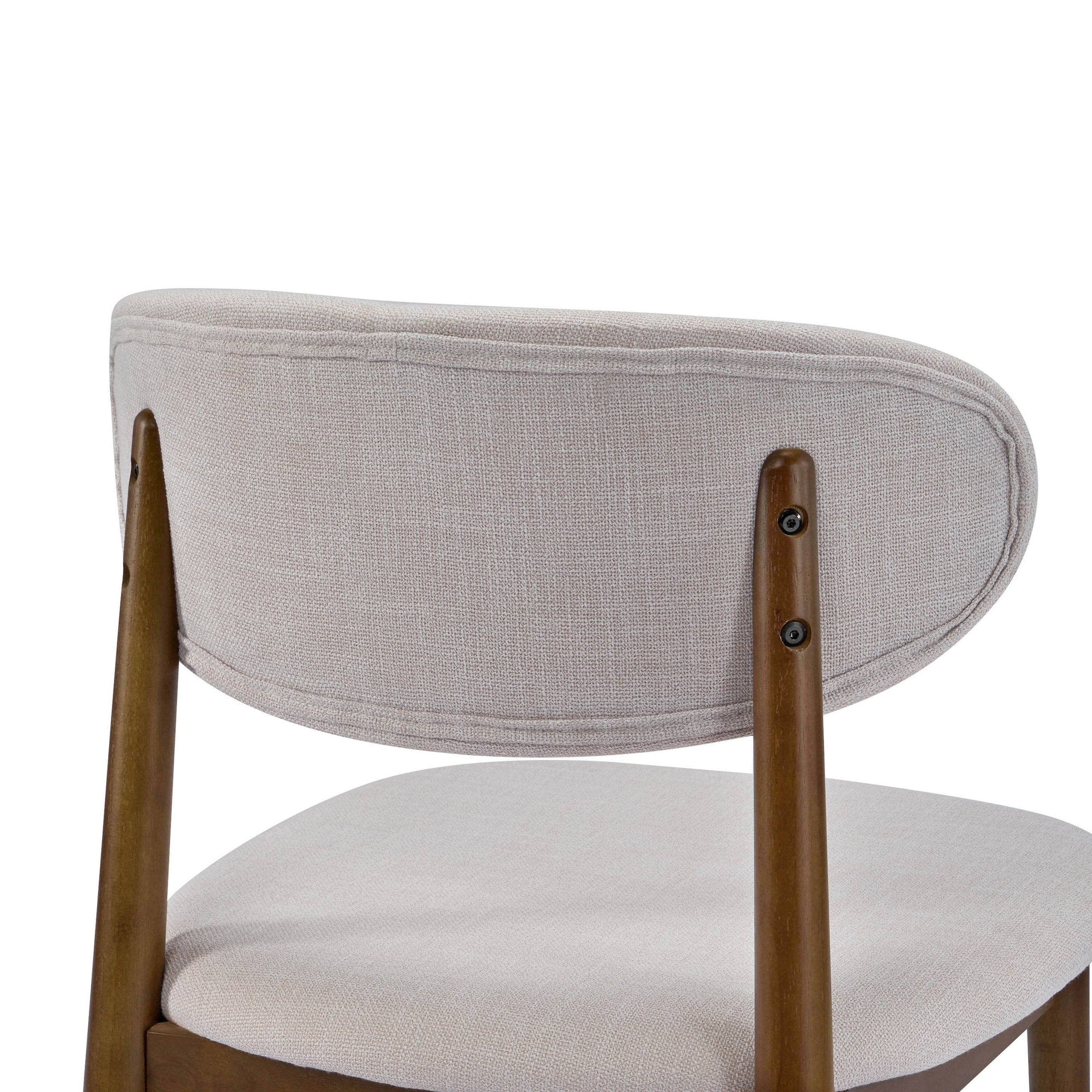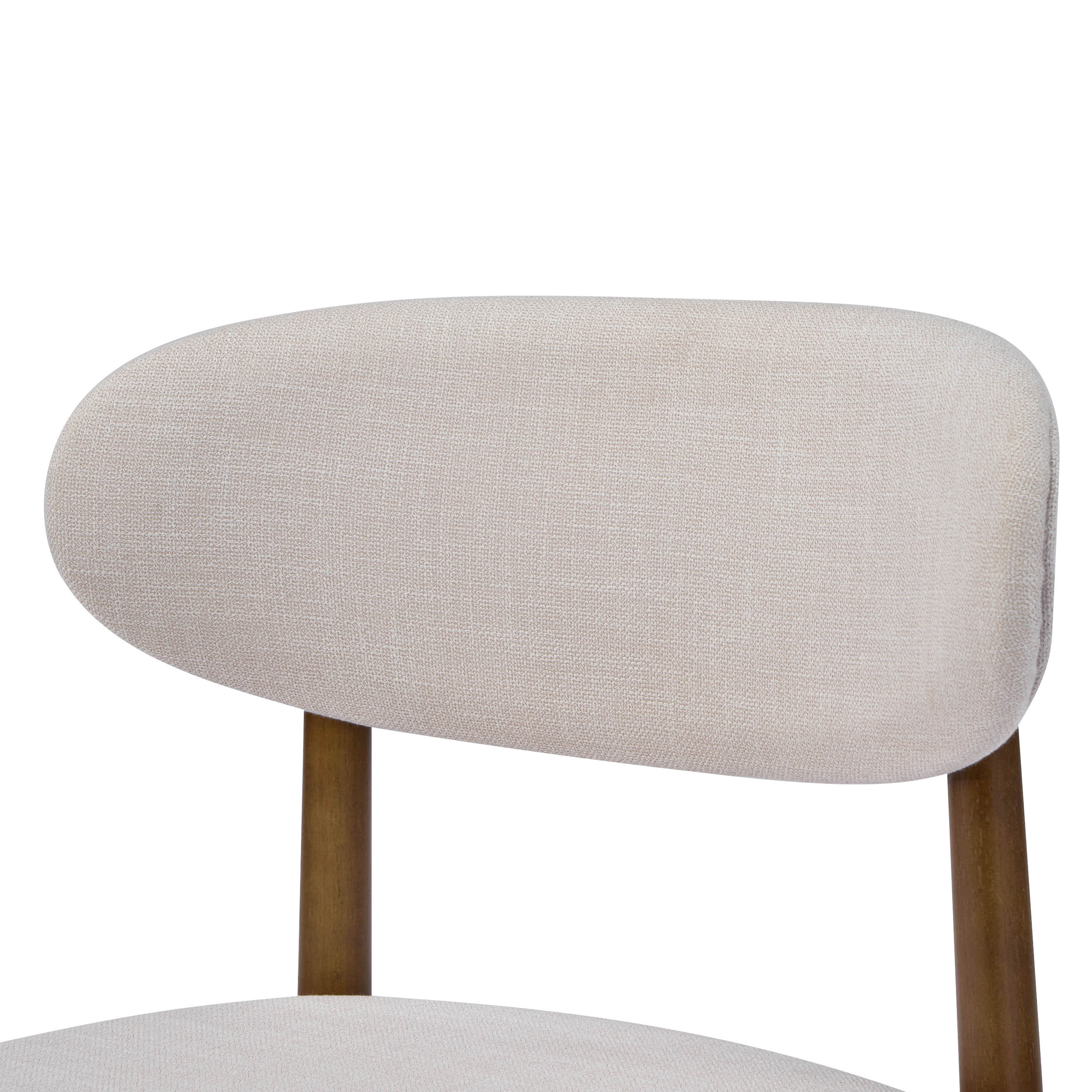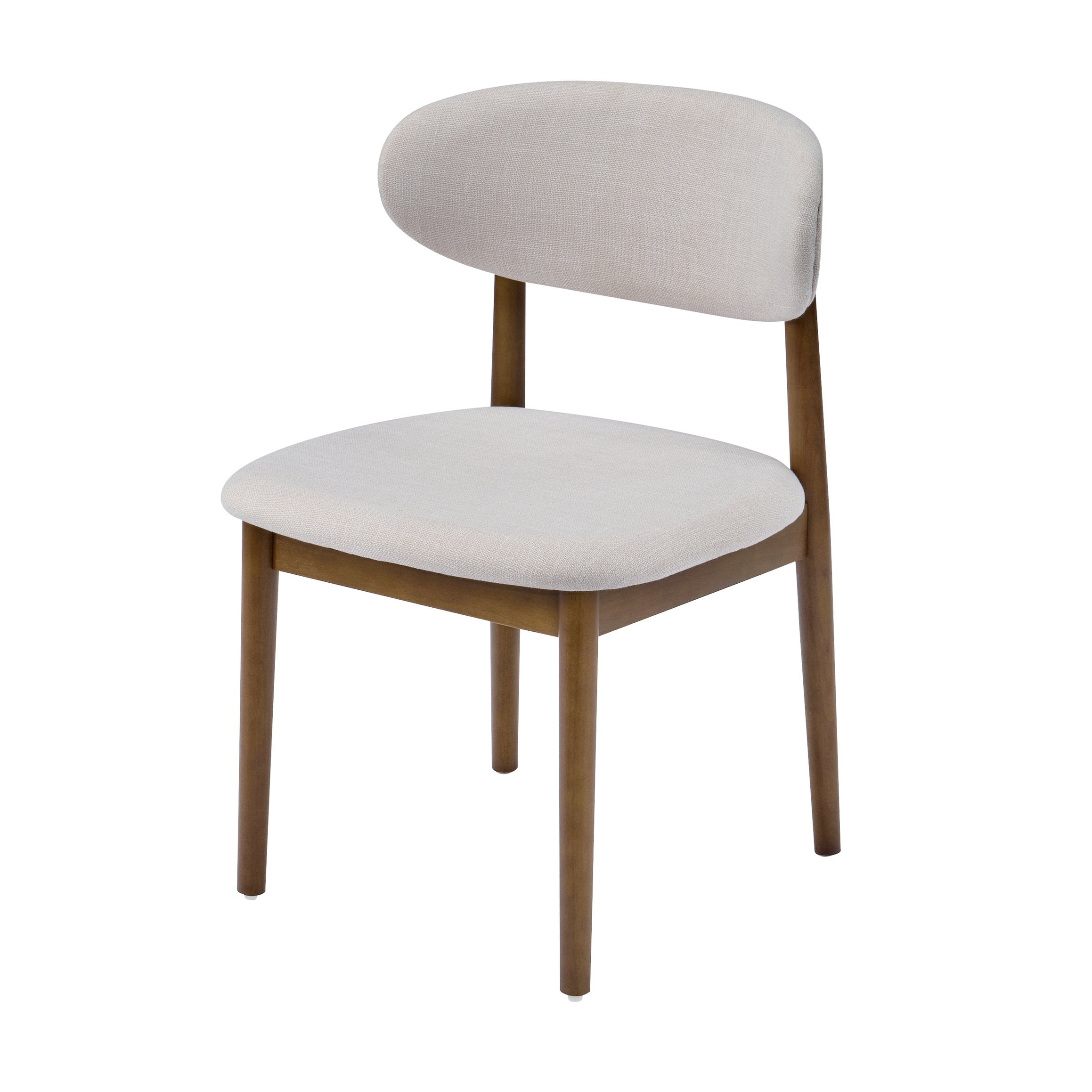 - Stylish side chair with beige fabric and walnut legs, perfect for dining, home office, or lounge areas.