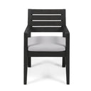 Enjoy relaxed outdoor dining with this stylish and comfortable two-chair set designed to blend contemporary design with weather-ready durability. Each chair pairs a sleek dark grey frame with a light grey, low-profile cushion for a modern, coordinated look that complements patios, decks, and garden dining areas.