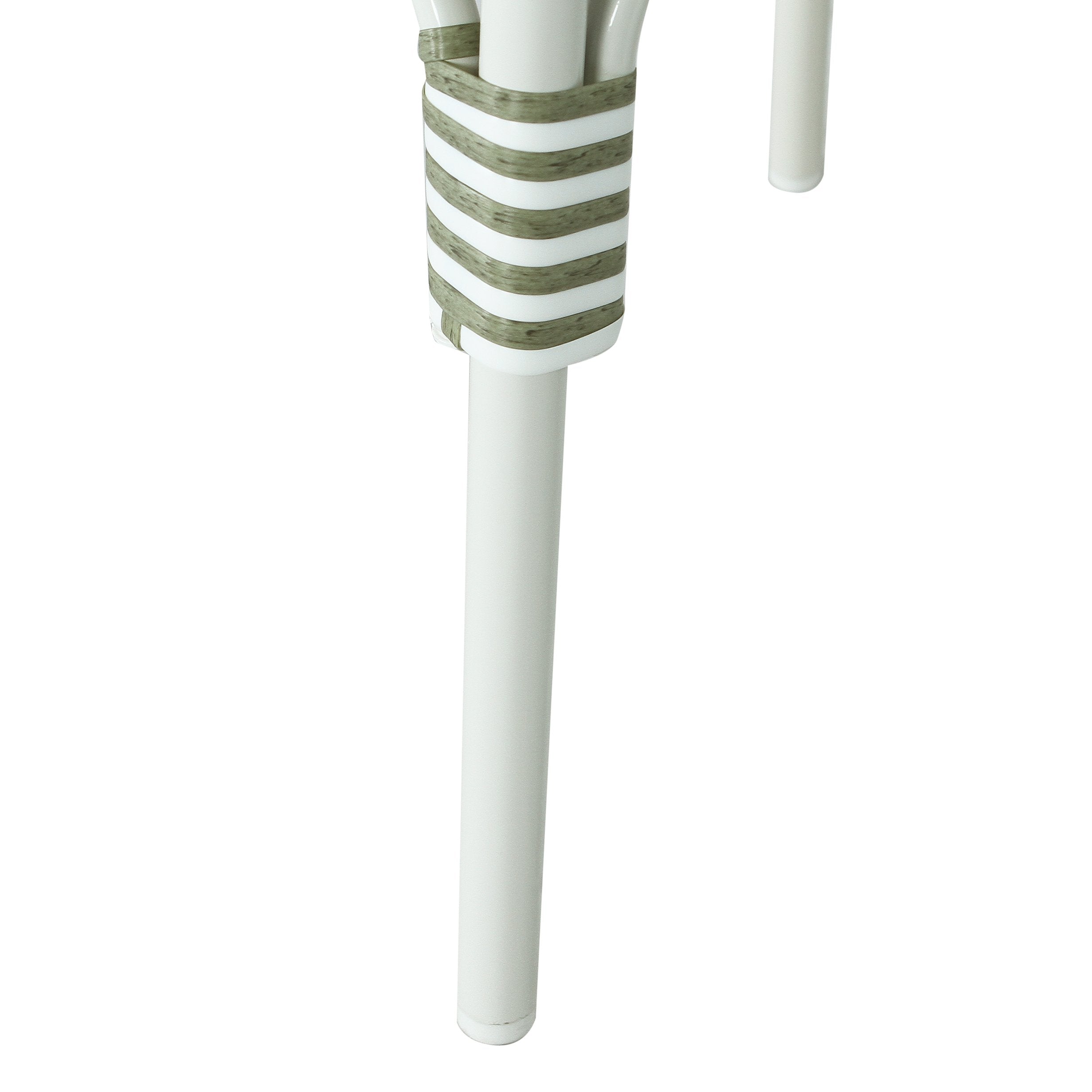- Color: White frame with green-and-white woven seat and back accents to complement a variety of outdoor décors.