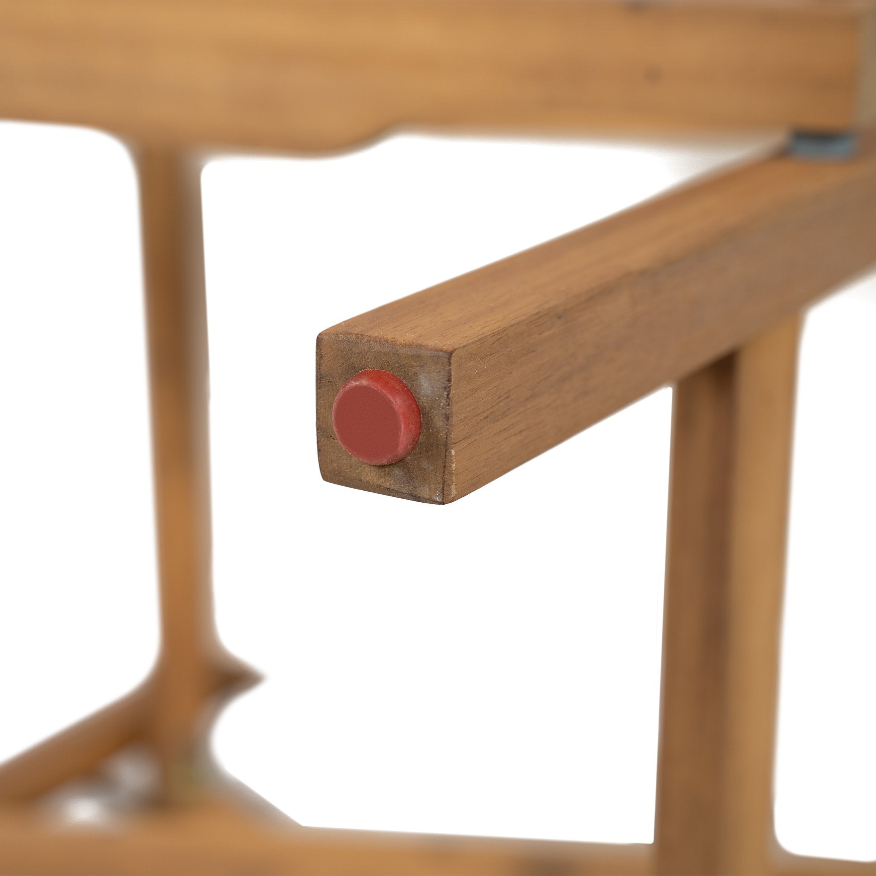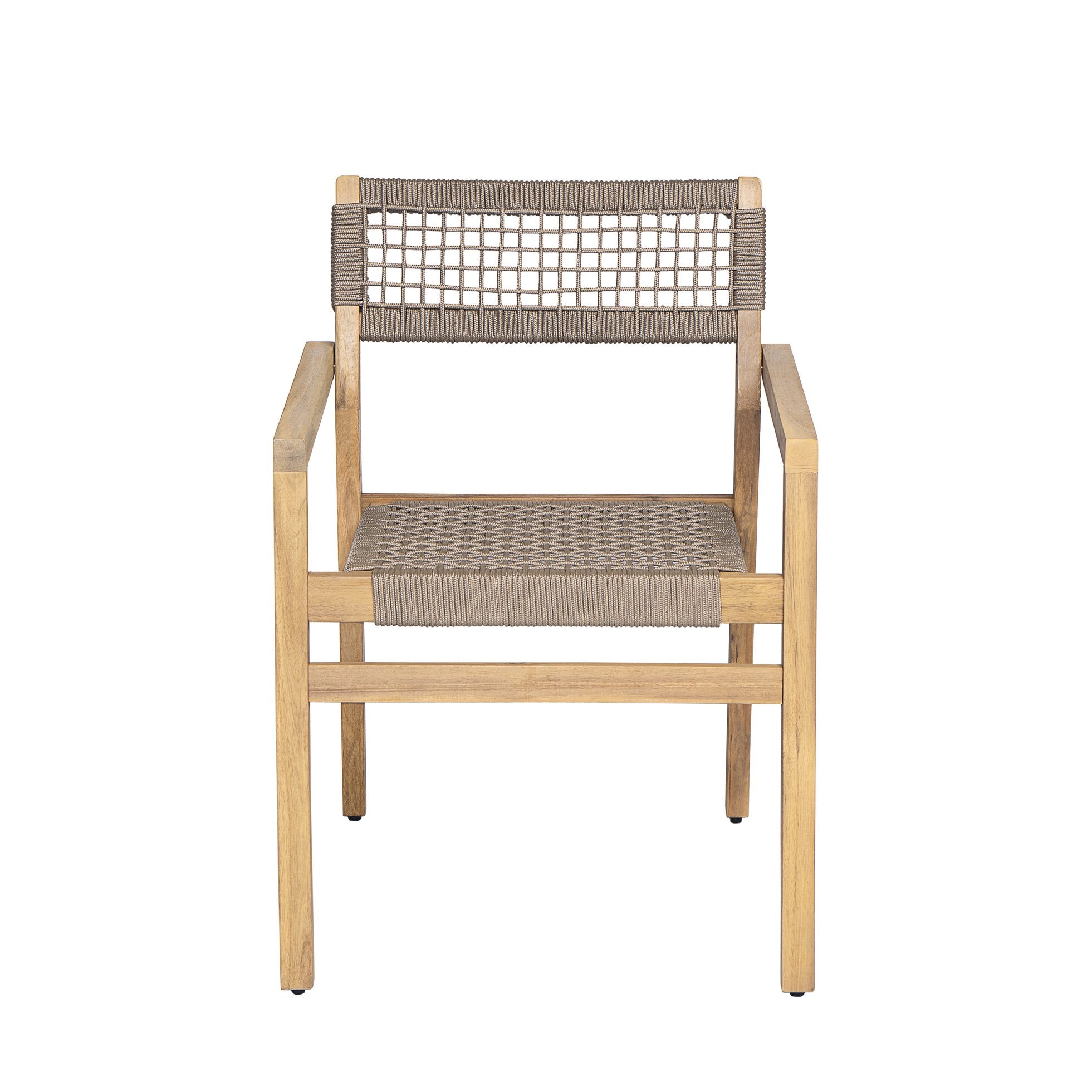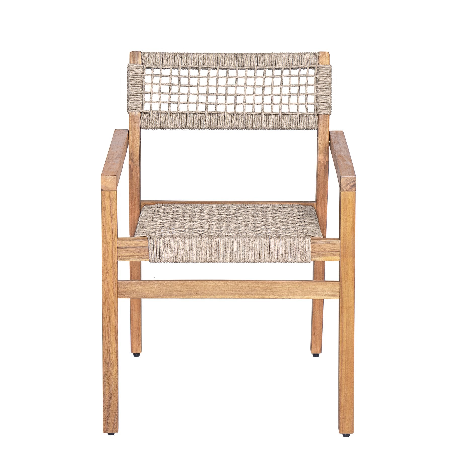 - Materials: Solid acacia wood frame with a rope-woven backrest; durable, weather-resistant finish in Light Teak