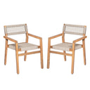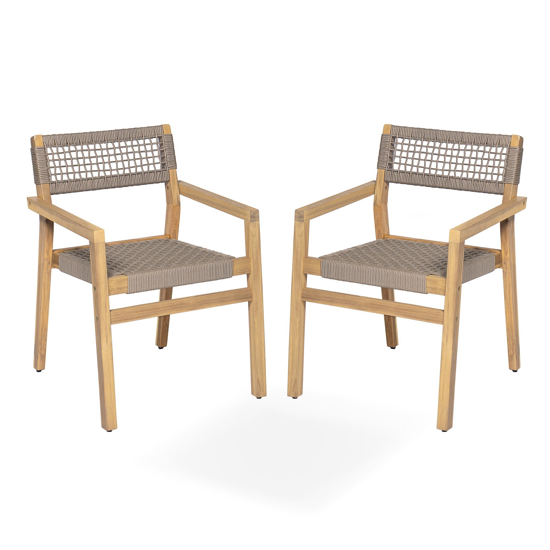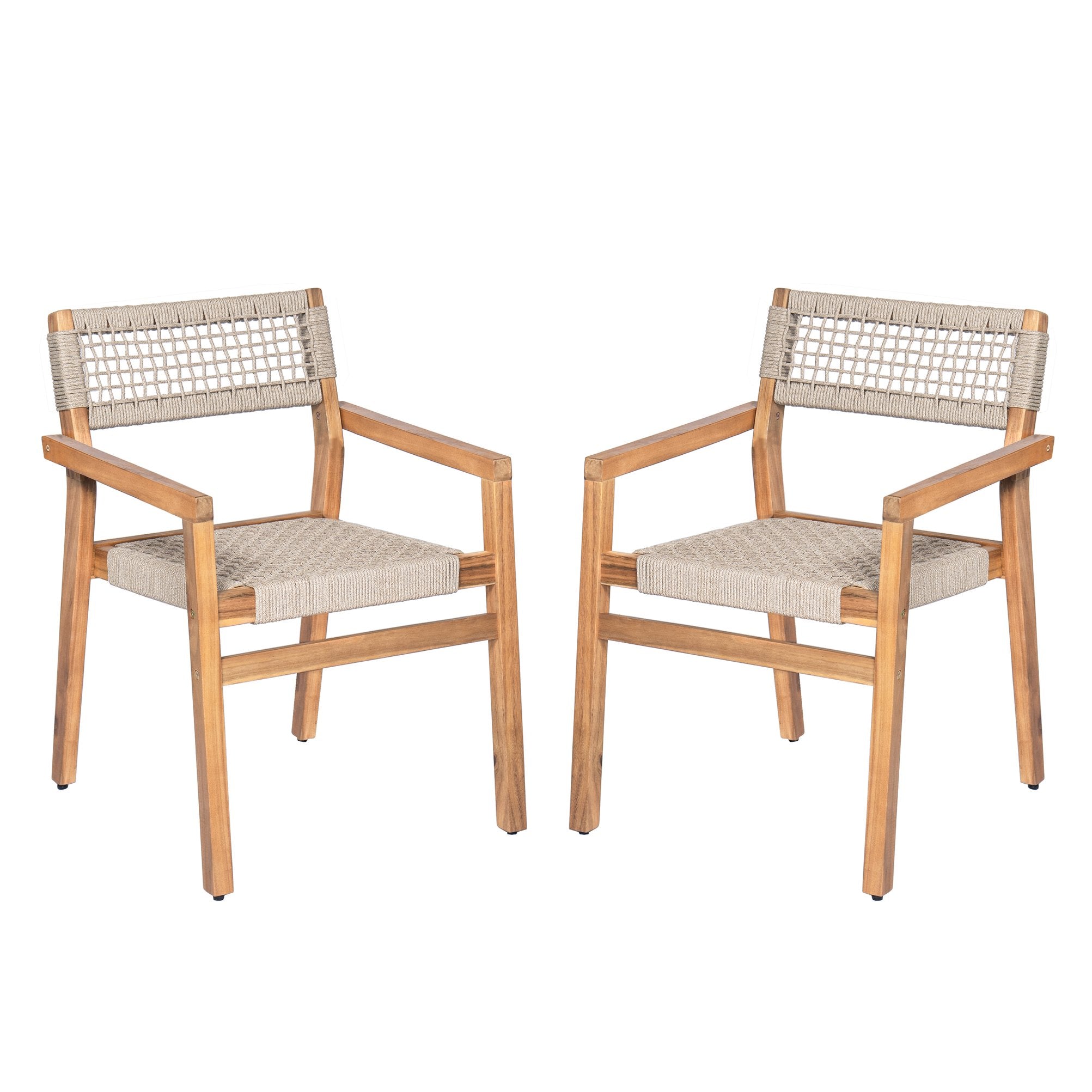 Enhance your indoor or outdoor dining area with a pair of thoughtfully crafted chairs that combine natural materials and modern design. These light teak acacia chairs feature a rope-woven back for breathable comfort and a sturdy frame built to last, delivering both style and everyday functionality for patios, kitchens, or dining rooms.