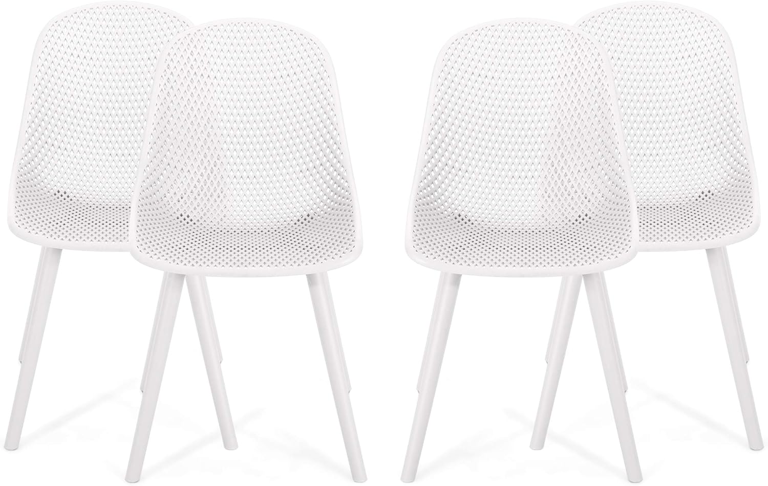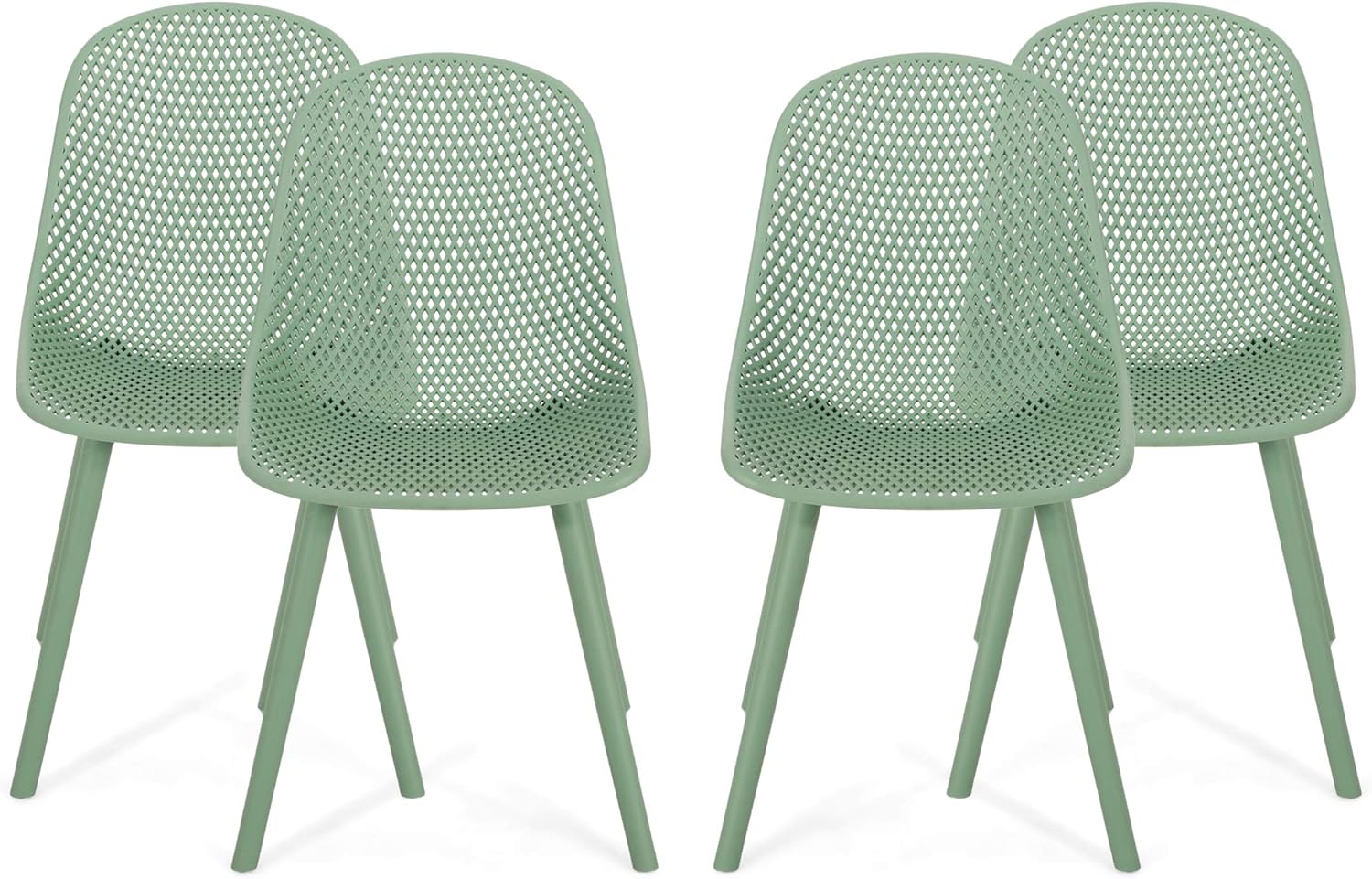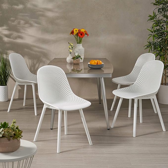 Bring modern refinement to your outdoor or indoor dining area with the Posey chair set. Clean lines, a perforated diamond mesh pattern, and a durable polypropylene construction combine for a contemporary look that’s comfortable, low-maintenance, and built to withstand the elements season after season.