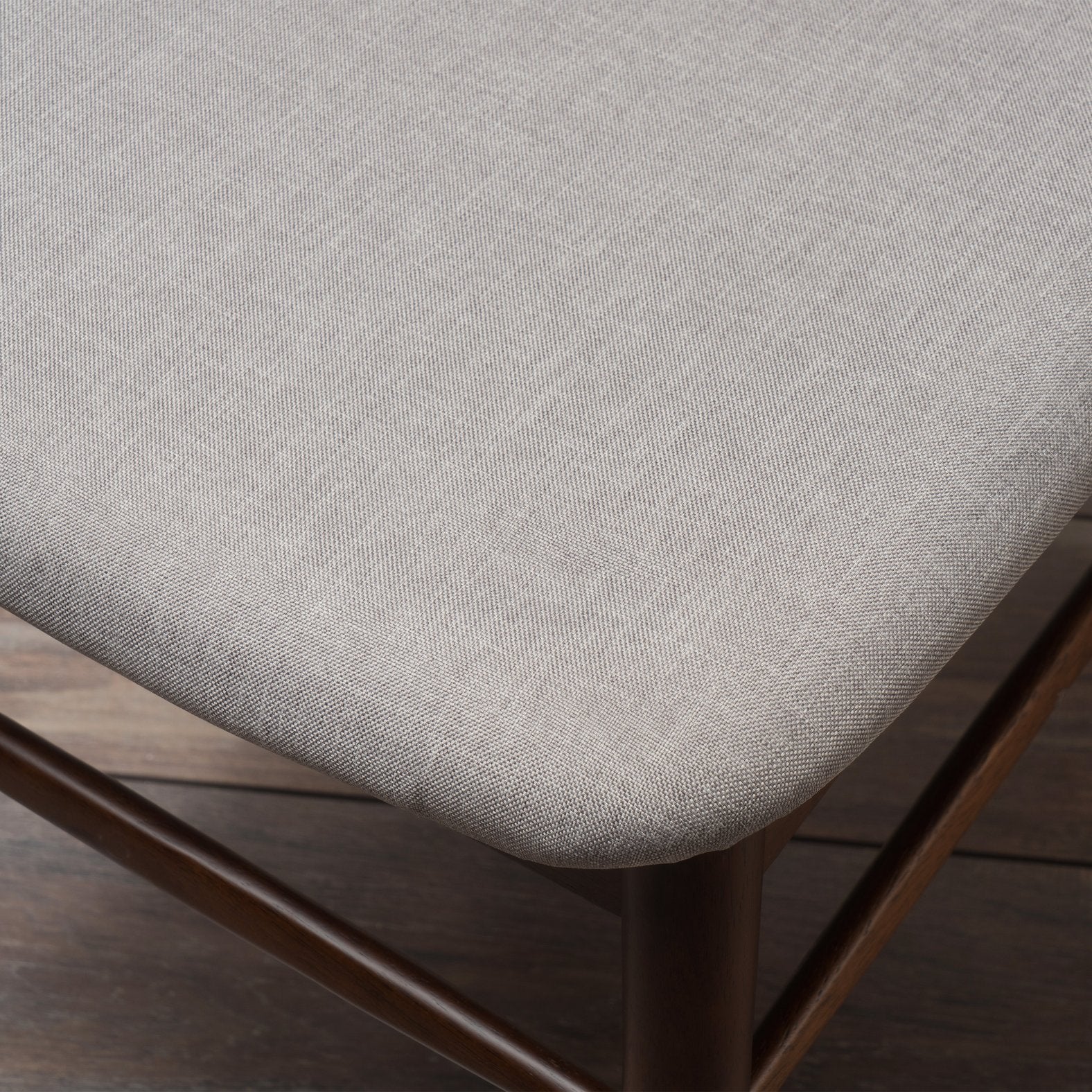 - Finish and color: Walnut wood frame with light gray upholstery for versatile, modern appeal