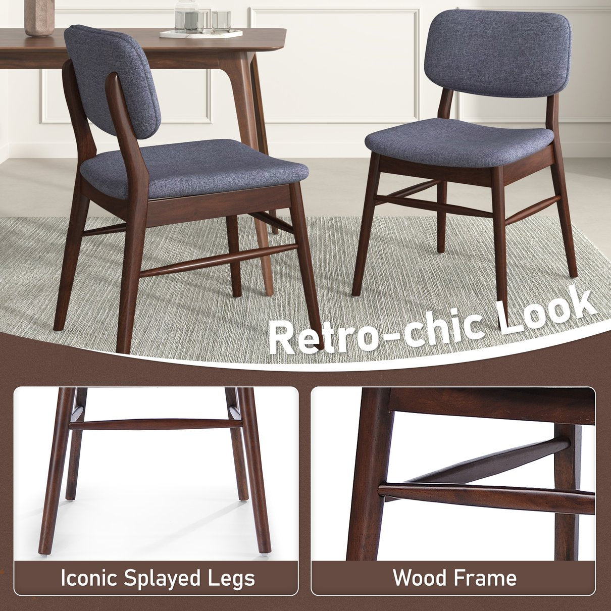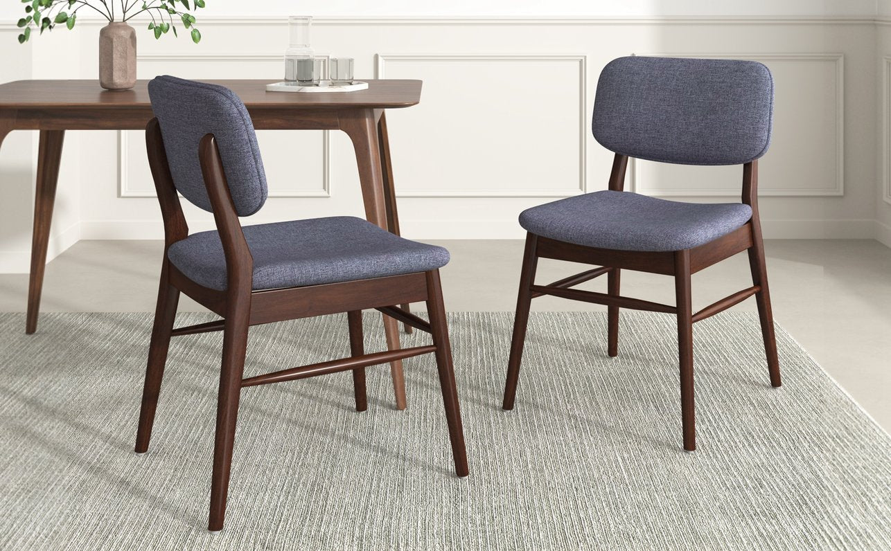 Bring retro-modern elegance and everyday comfort to your dining space with this set of two Mid-Century upholstered chairs. Designed with a refined fabric seat and a sturdy rubberwood frame, these chairs combine iconic mid-century lines, plush seating, and reliable construction for dining rooms, kitchens, hotels, or casual seating areas.