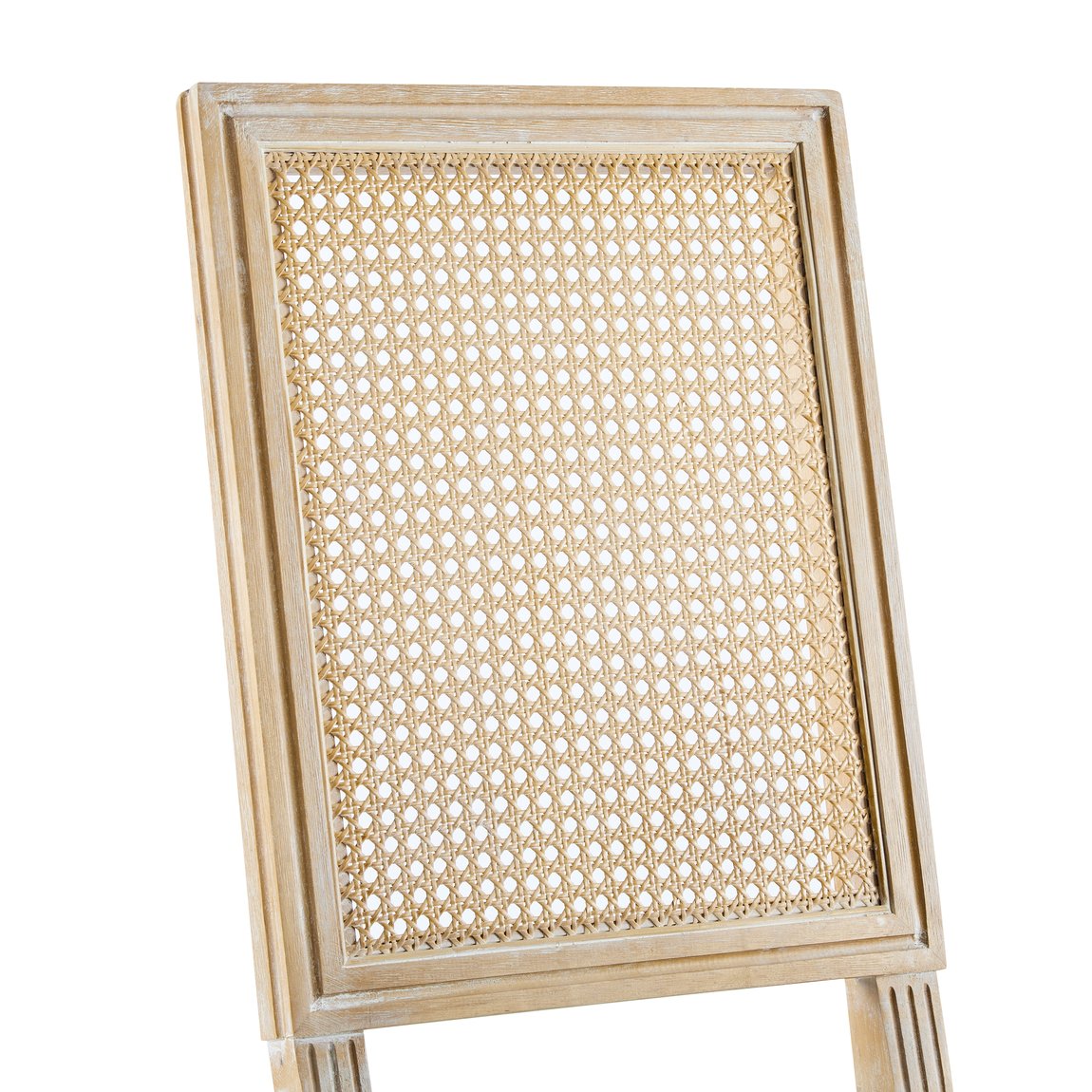 - FRENCH COUNTRY INSPIRATION: Meticulously designed with a touch of sophistication, these chairs transform your dining space into a work of art. Inspired by French country aesthetics, the set of two dining chairs showcases a sleek rectangular cane backrest, elegantly upholstered seats, and slender fluted legs. This unique combination adds a distinctive charm to your home while staying true to its timeless, vintage elegance.