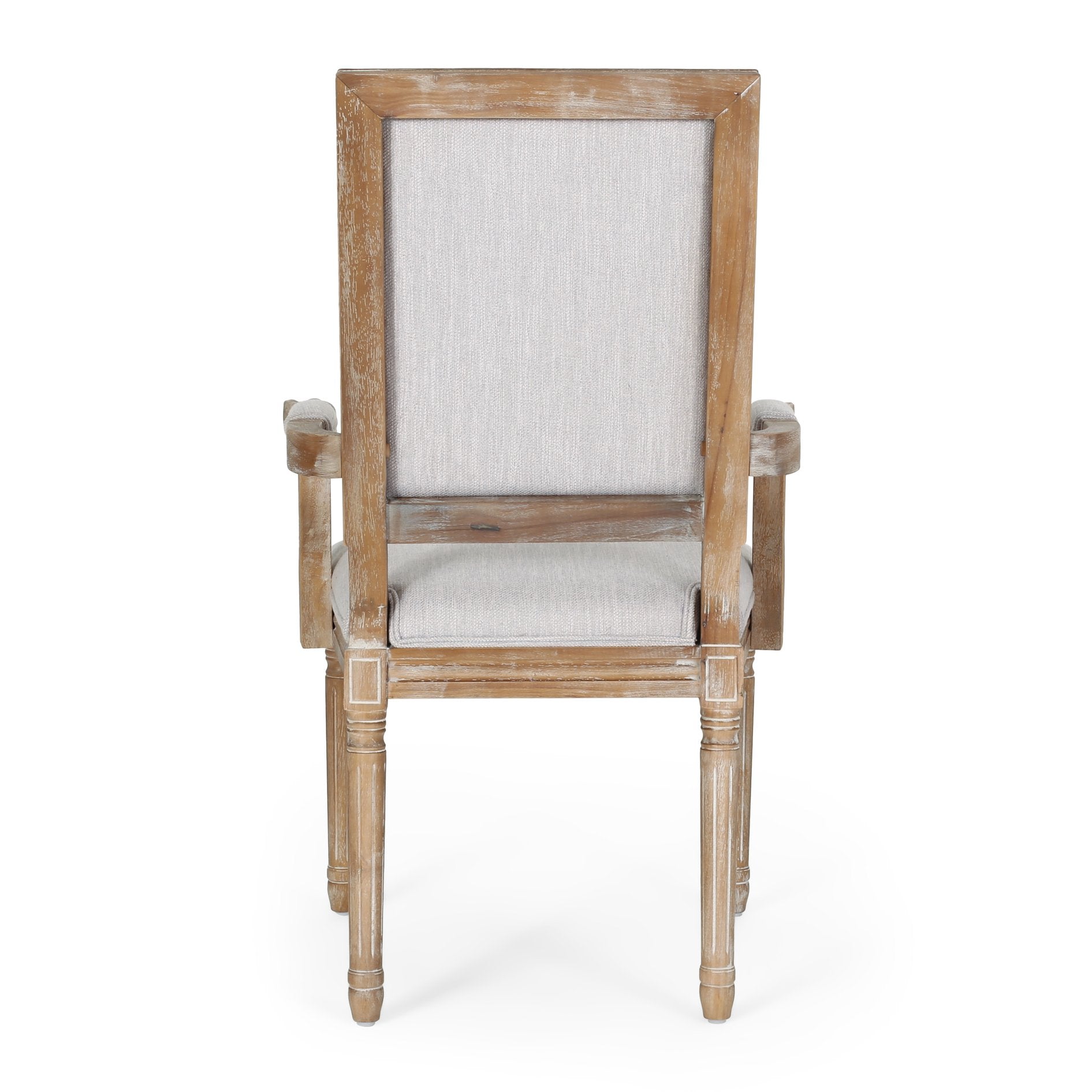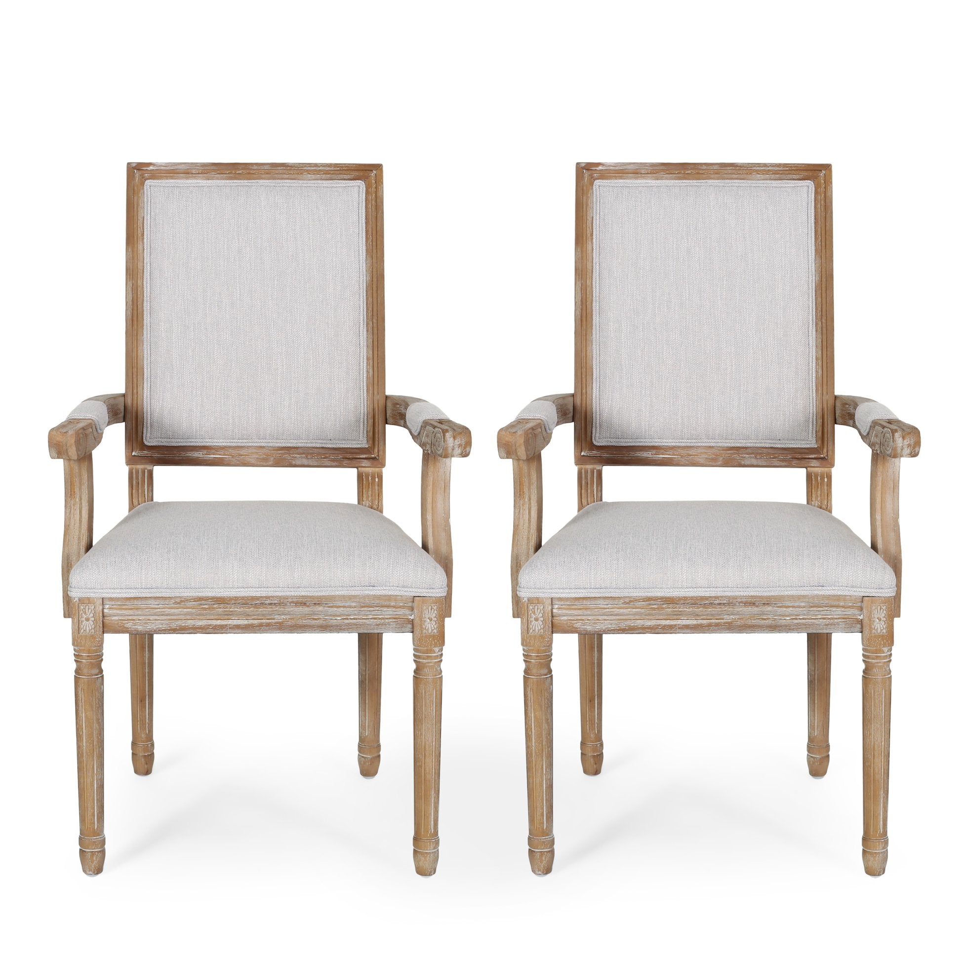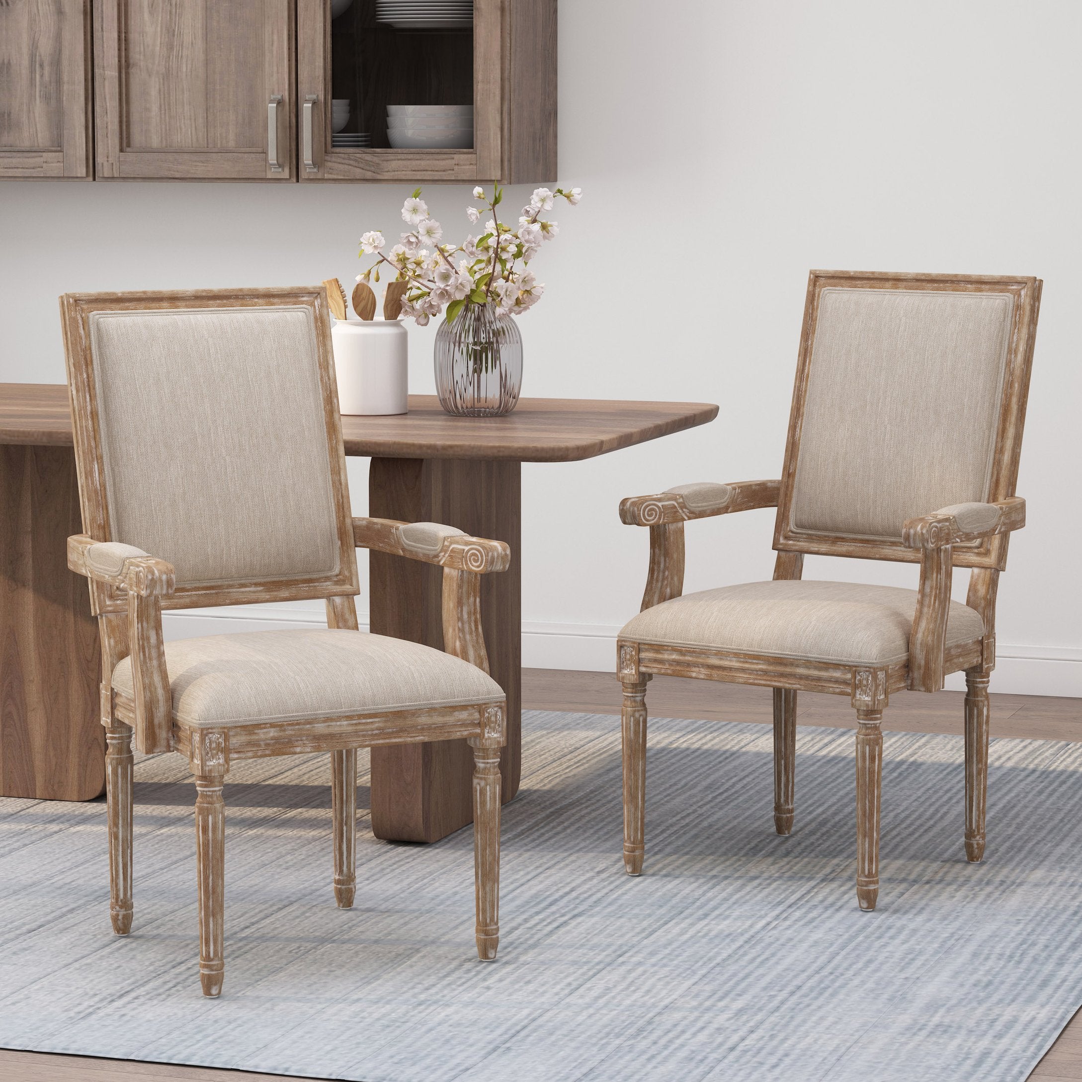 - Bring undeniable excellence to your dining area with seating of classic style and comfort. Drawing from French country inspiration and Queen Anne styling, our set of upholstered dining chairs feature a square backrest, fluted legs, and exquisite armrests to offer your home something a little out of the ordinary while also remaining true to their elegant, old-fashioned roots.