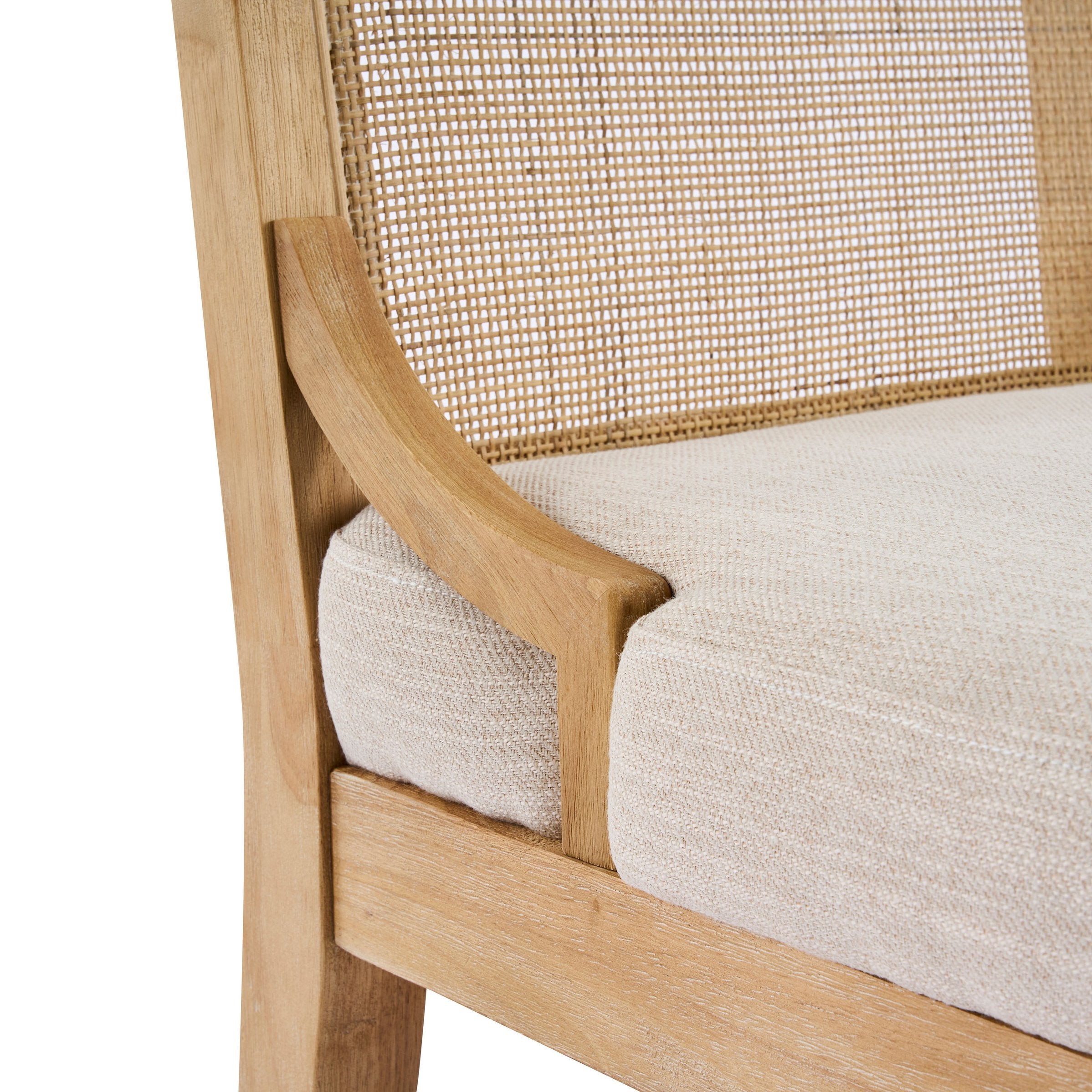 - Design: Natural cane back for airy support and visual texture; soft beige upholstered seat for neutral, versatile styling