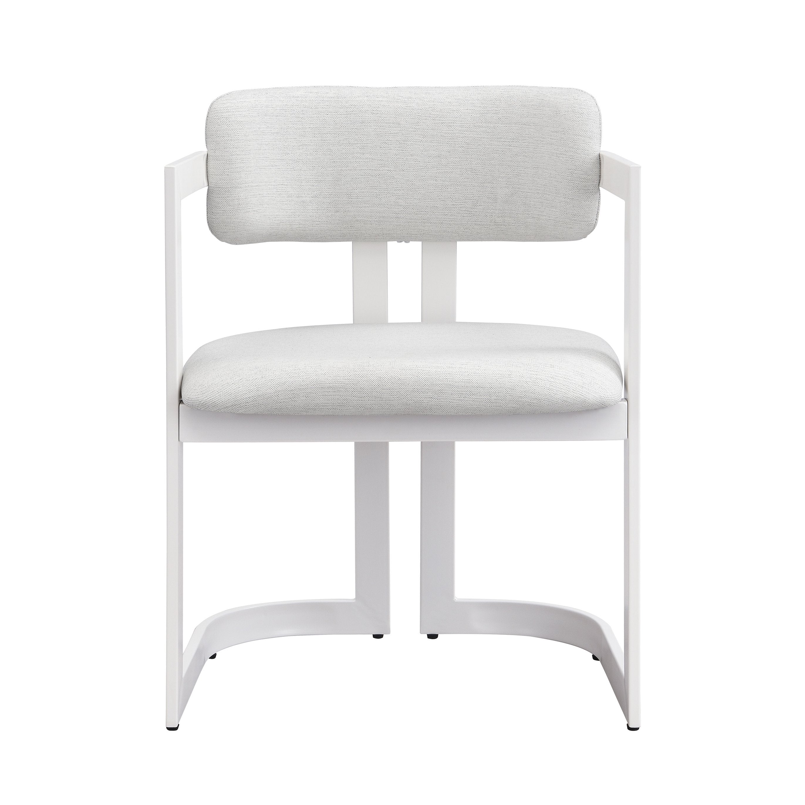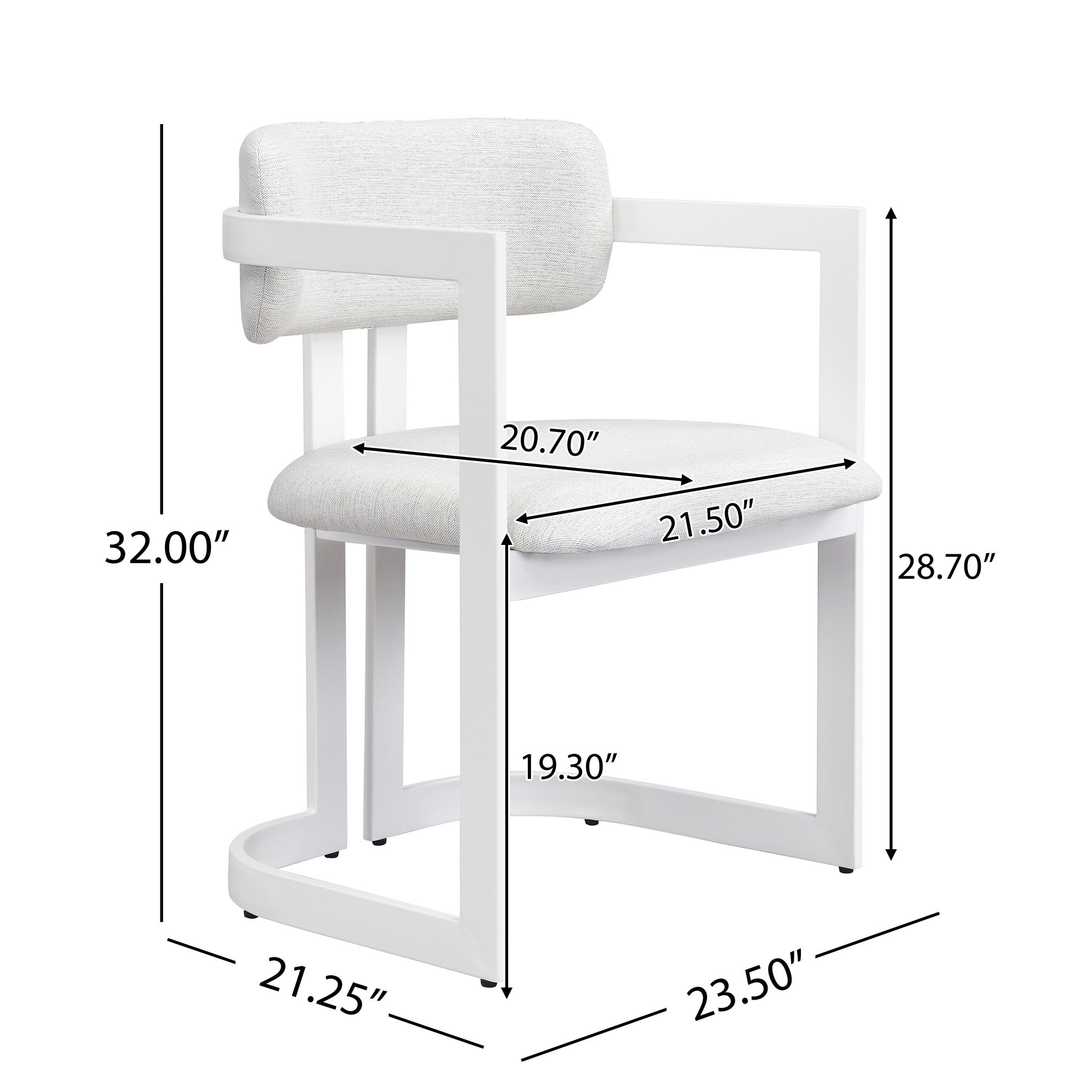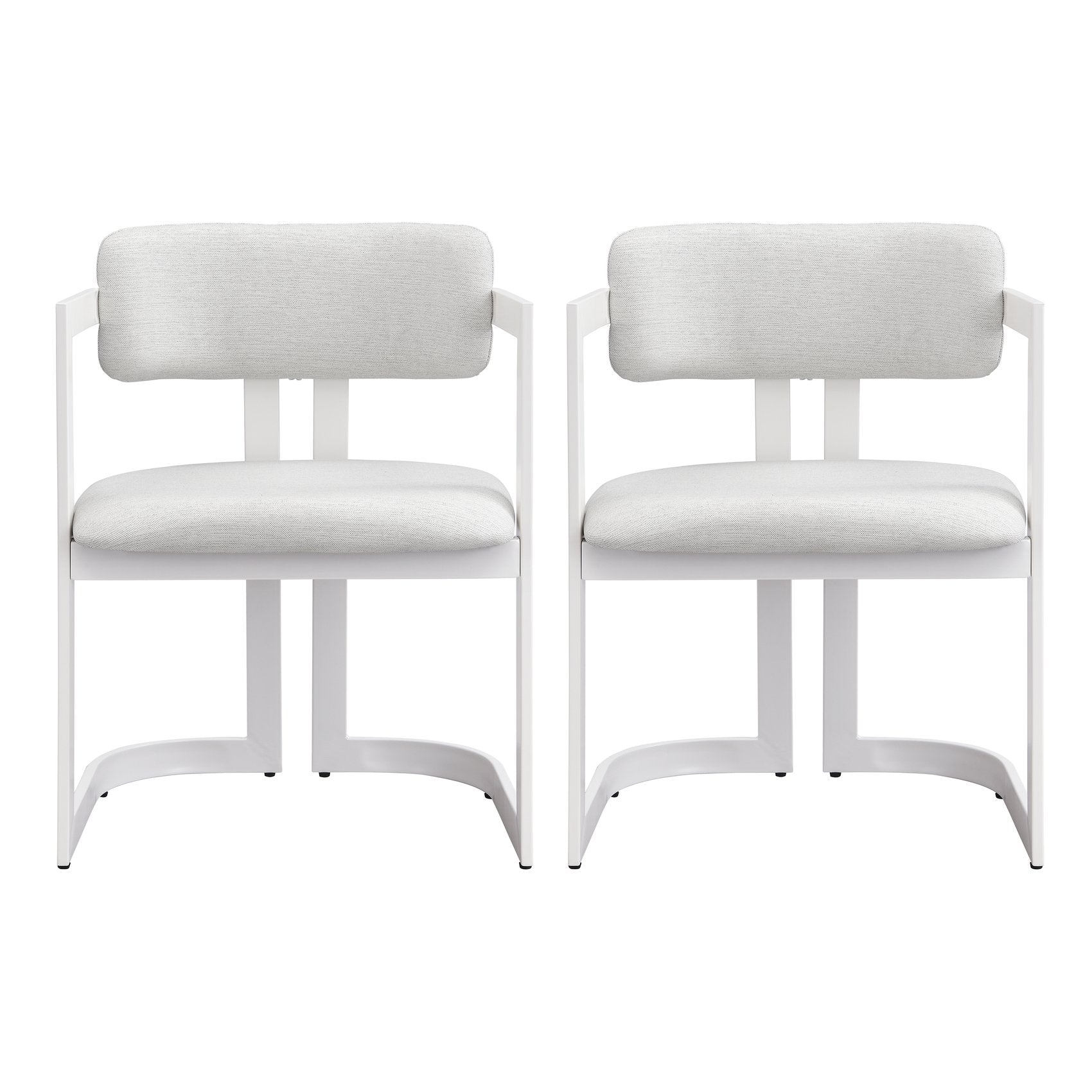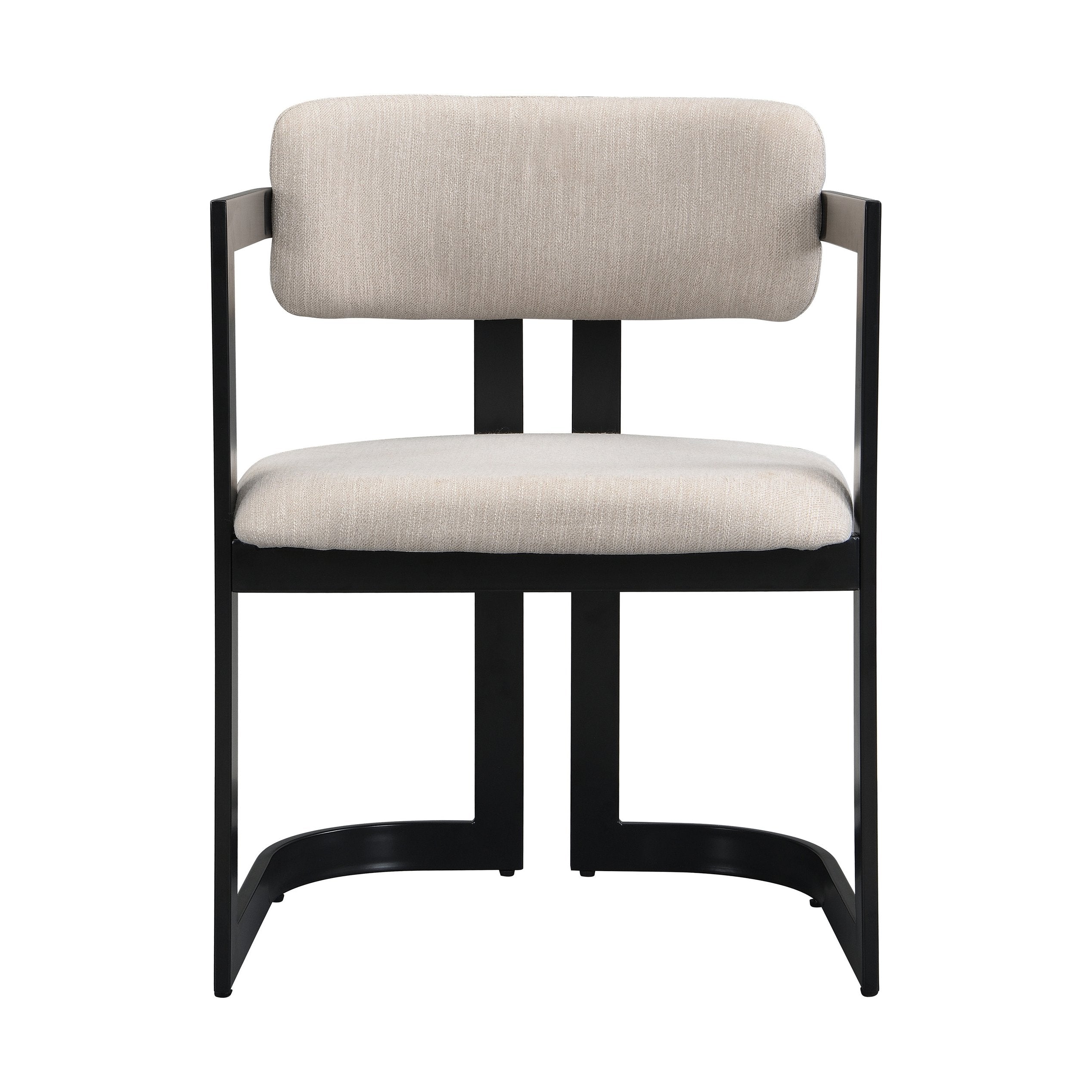 Bring modern elegance and everyday comfort to your dining space with this set of two upholstered armchairs. Designed for both style and durability, these chairs pair soft beige fabric cushions with a sleek black metal frame to create a versatile look that fits contemporary and transitional interiors. Thoughtfully engineered for daily use, they deliver supportive seating and straightforward assembly so you can enjoy a polished dining area right away.