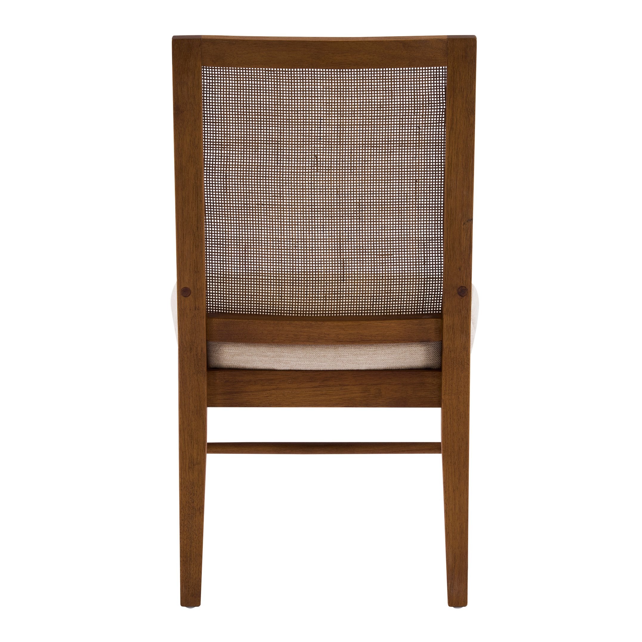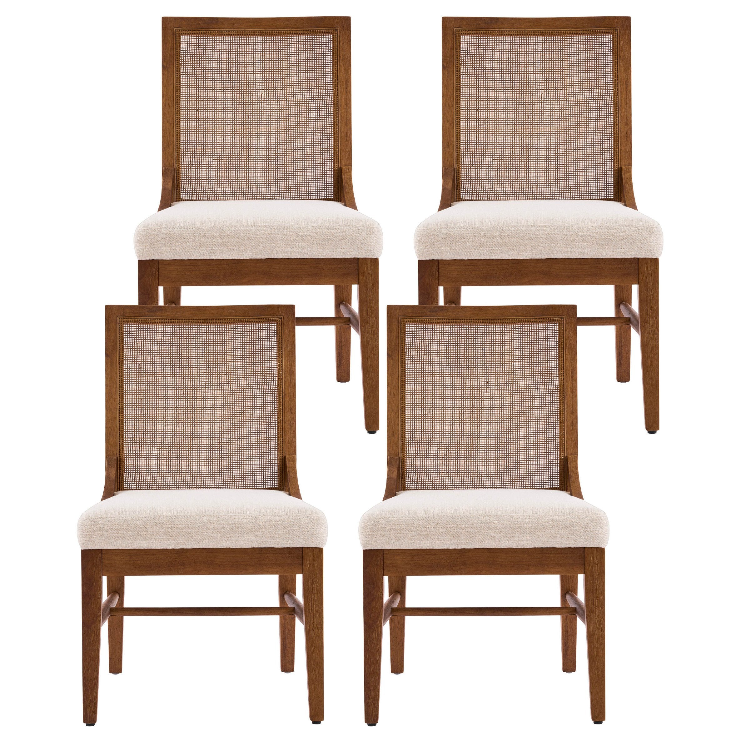 Elevate your dining space with a set of four refined chairs that blend classic craftsmanship and modern comfort. Each chair pairs a breathable natural cane back with a plush upholstered seat and sturdy walnut-finished rubberwood legs, creating a versatile silhouette that works beautifully in mid-century, transitional, and contemporary interiors.