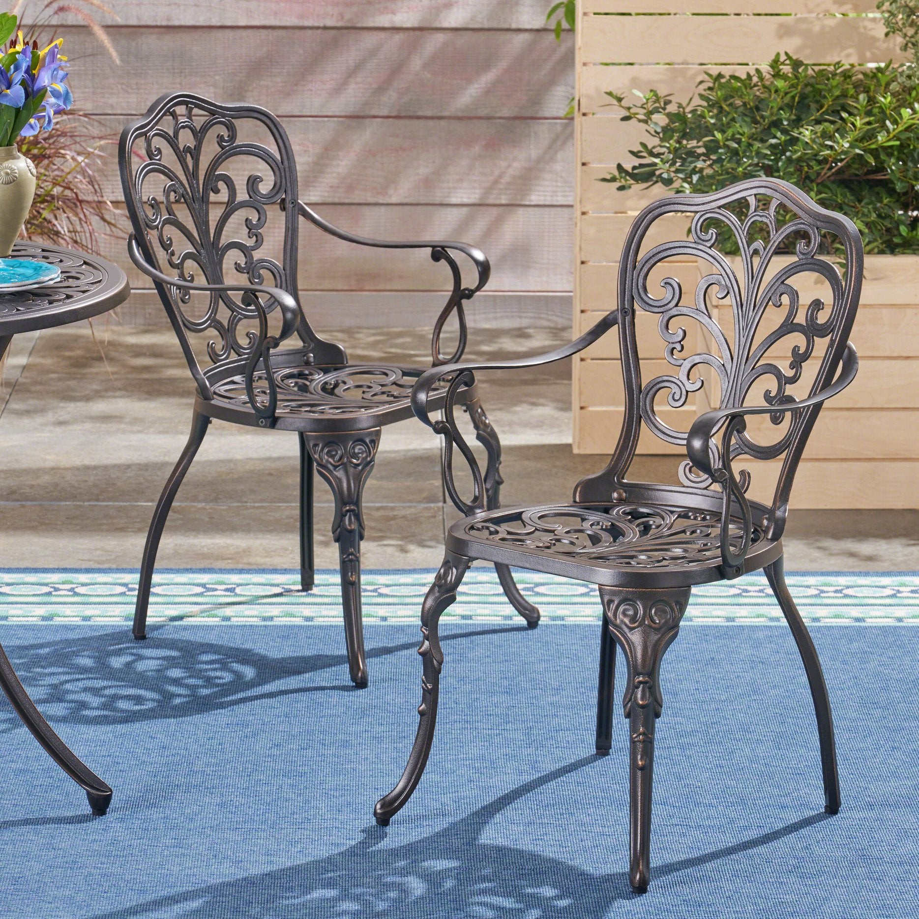 Elevate your outdoor dining area with the VIGO dining chair — a refined, durable choice that blends traditional craftsmanship with weather-ready performance. Its ornate cast-aluminum construction and open scrollwork deliver an elegant silhouette while allowing quick drainage and low maintenance, making it ideal for patios, porches, and garden settings.