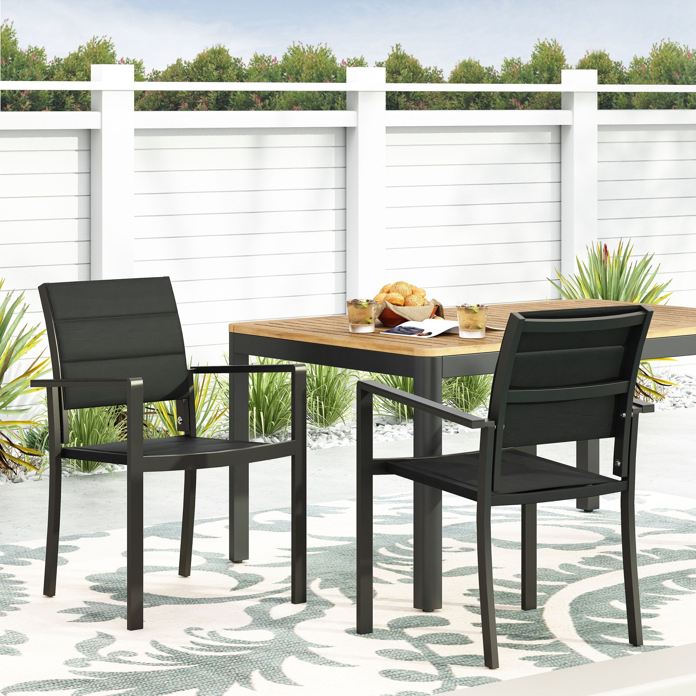 Add contemporary comfort to your outdoor dining area with a sleek, weather-ready chair designed for style and durability. The Wilbur dining chair pairs clean, modern lines with breathable mesh seating and a rust-resistant aluminum frame for a lightweight yet sturdy seating solution that performs well in casual outdoor environments.