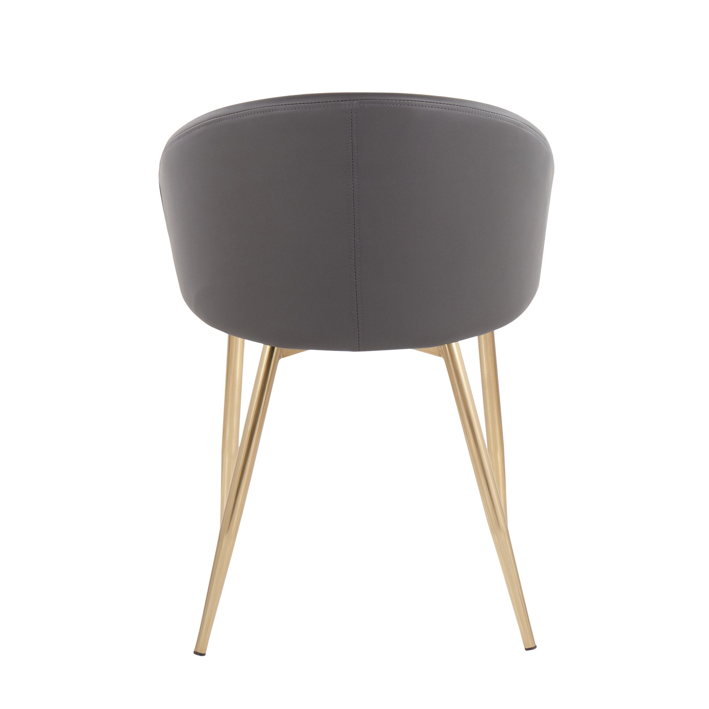 - Chic modern style shines bright with the unique design of the Claire Chair by LumiSource. With a rounded low backrest and sleek gold or chrome frame finish, it's the perfect piece for your contemporary dining area. The Claire Chair is available in lush velvet or faux leather upholstery.