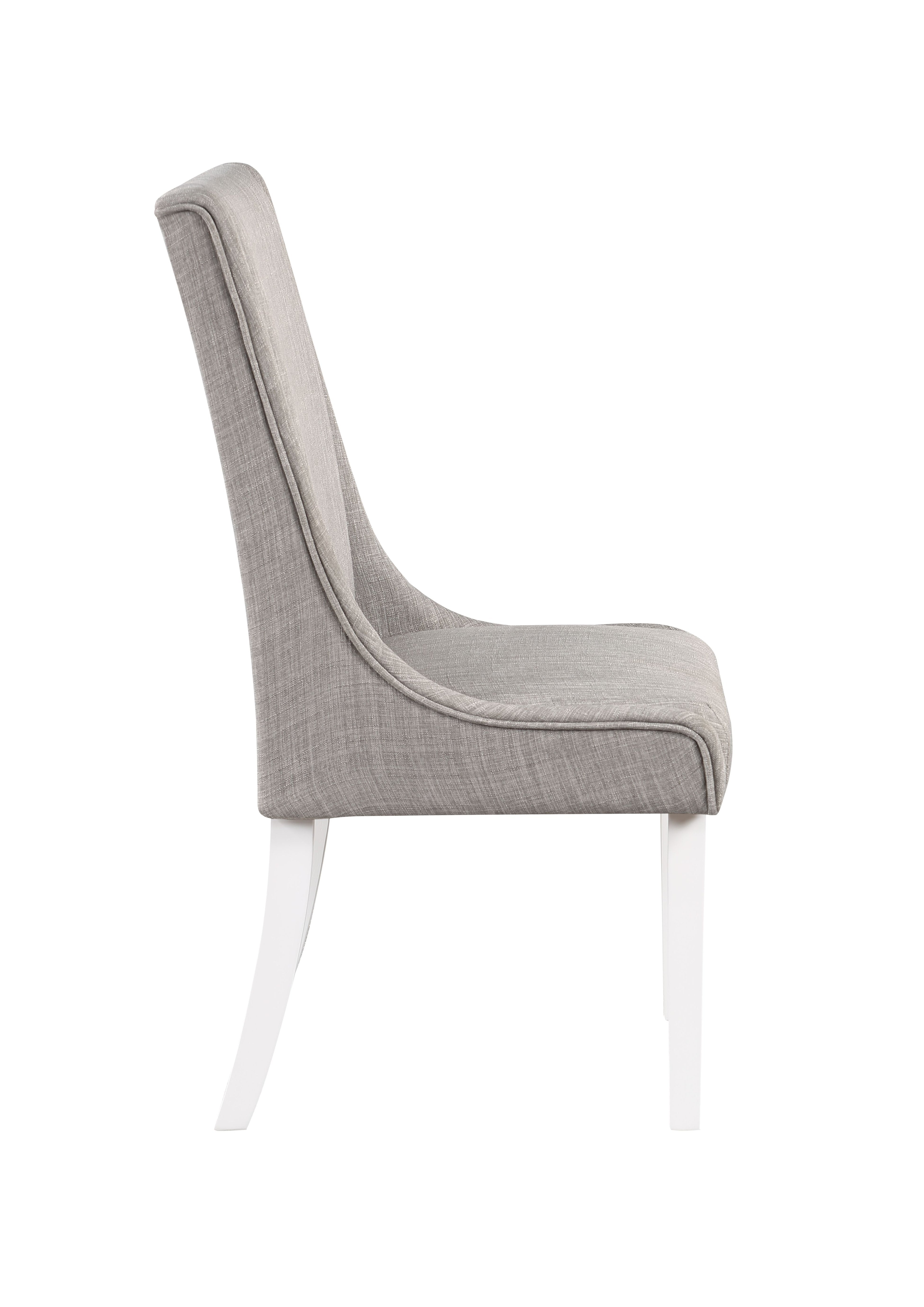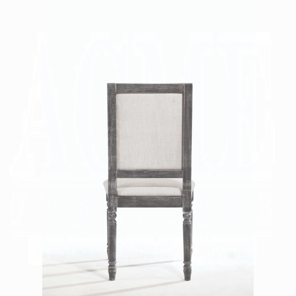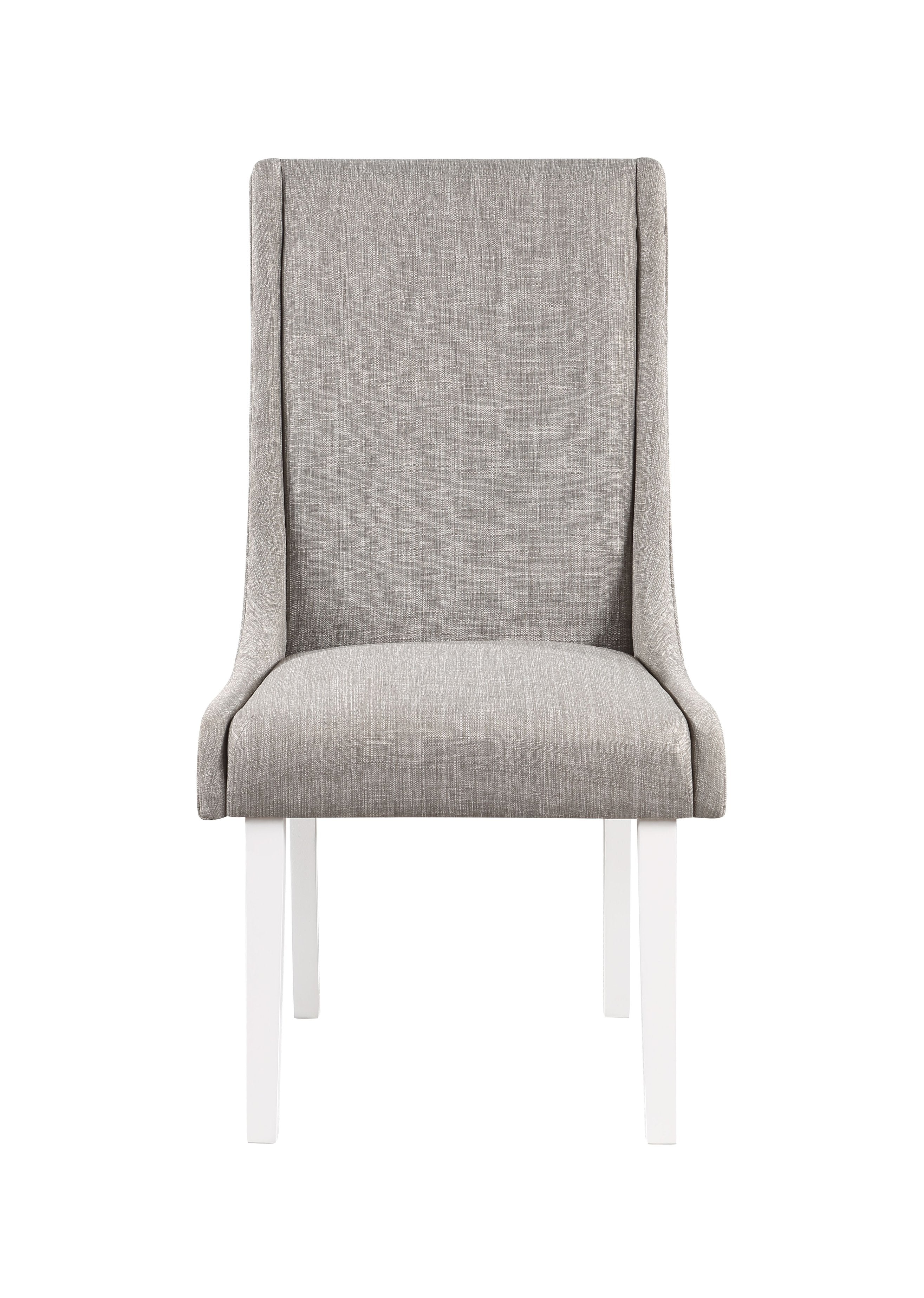 Bring timeless elegance and everyday comfort to your dining room with this pair of classic side chairs. Finished in a weathered gray with turned legs and cream linen upholstery, these chairs combine traditional style with practical comfort — ideal for family meals, entertaining, or adding a refined accent to any room.