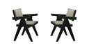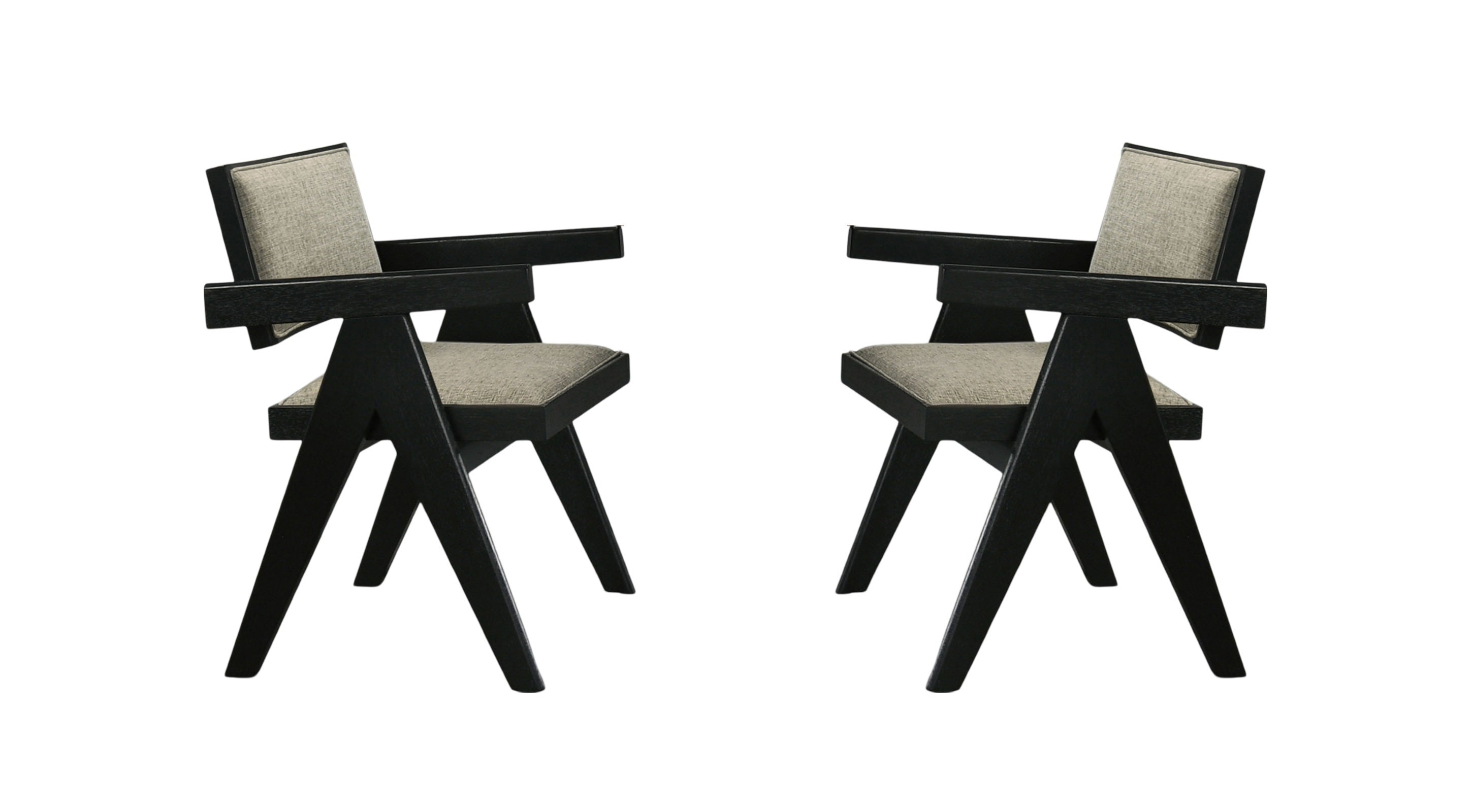 Add understated mid-century modern flair and lasting comfort to your dining space with this pair of contemporary arm chairs. Designed with clean lines, a warm oak veneer finish, and plush polyester upholstery, these chairs blend style and function—ideal for everyday meals or entertaining guests.