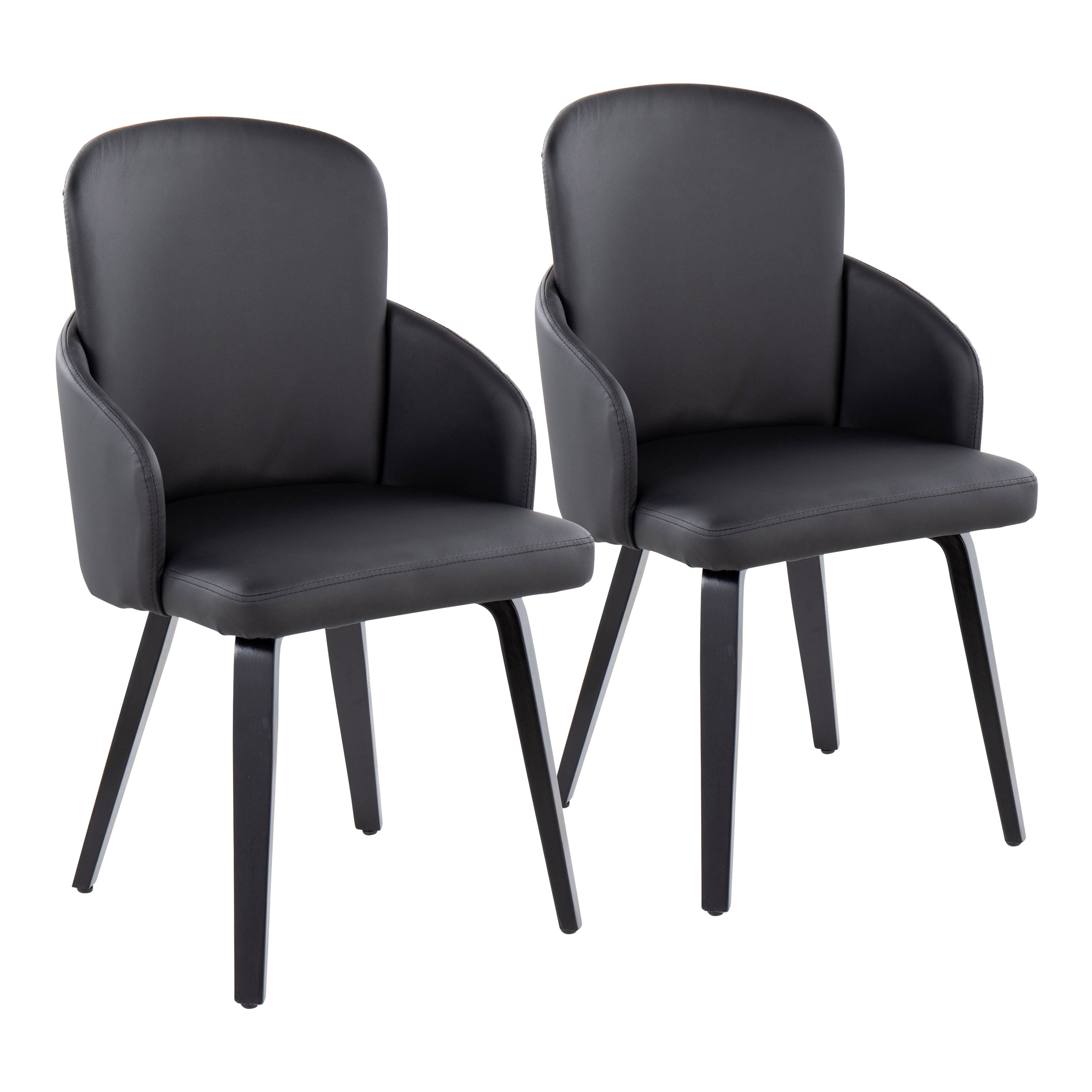 Elevate your dining space with the Dahlia dining chair—an understated contemporary piece that blends sleek faux leather upholstery, chrome accents, and bent wood legs for a polished, modern look. Designed for everyday comfort and visual appeal, this set of two chairs brings cohesive style to kitchens, dining rooms, or casual seating areas while supporting up to 250 lbs per chair.