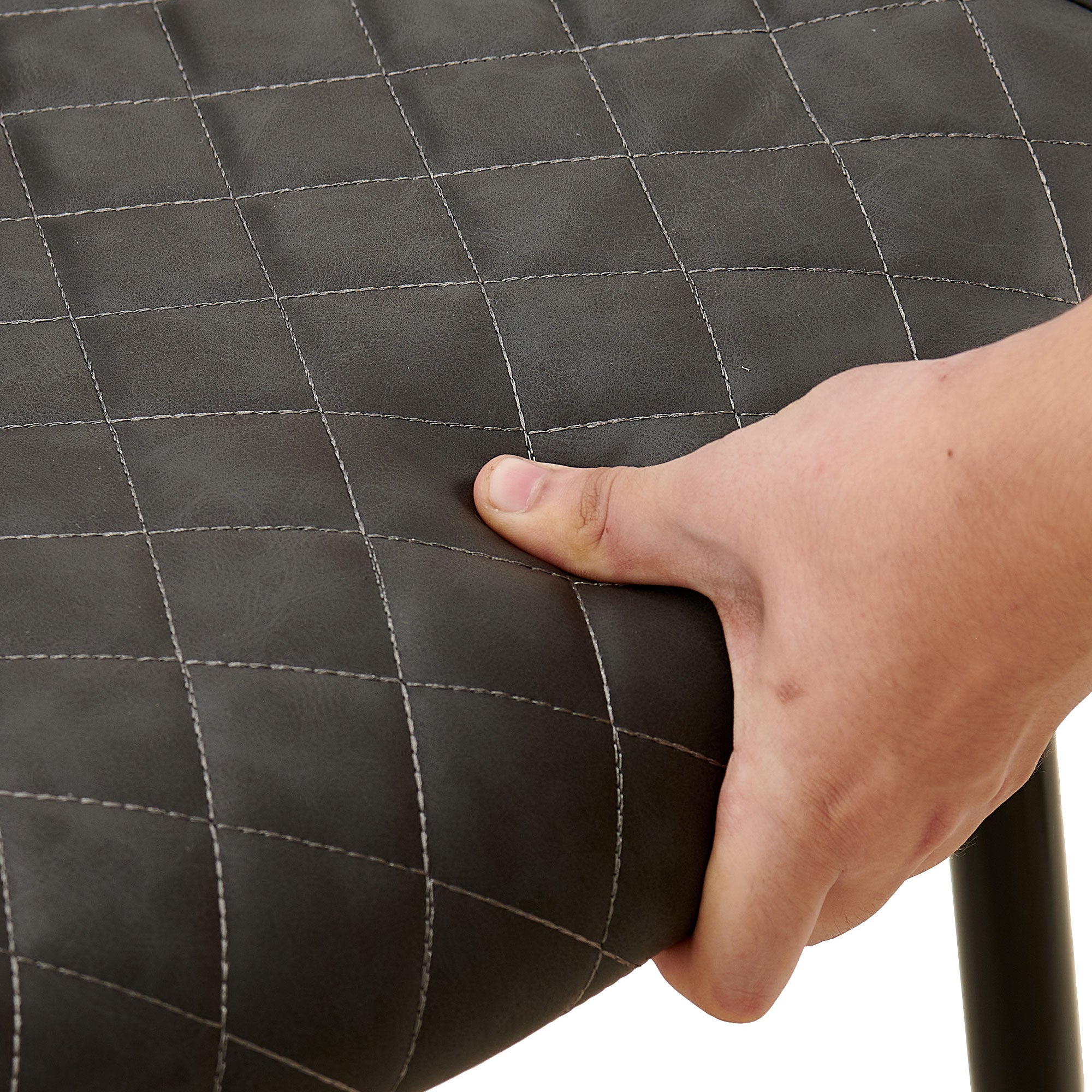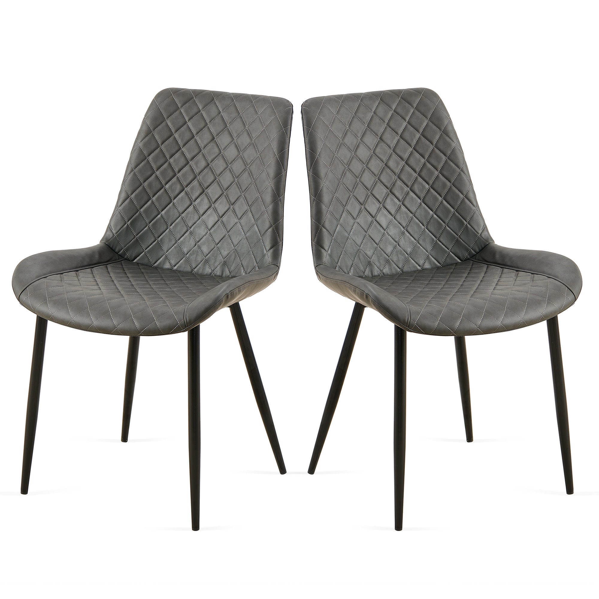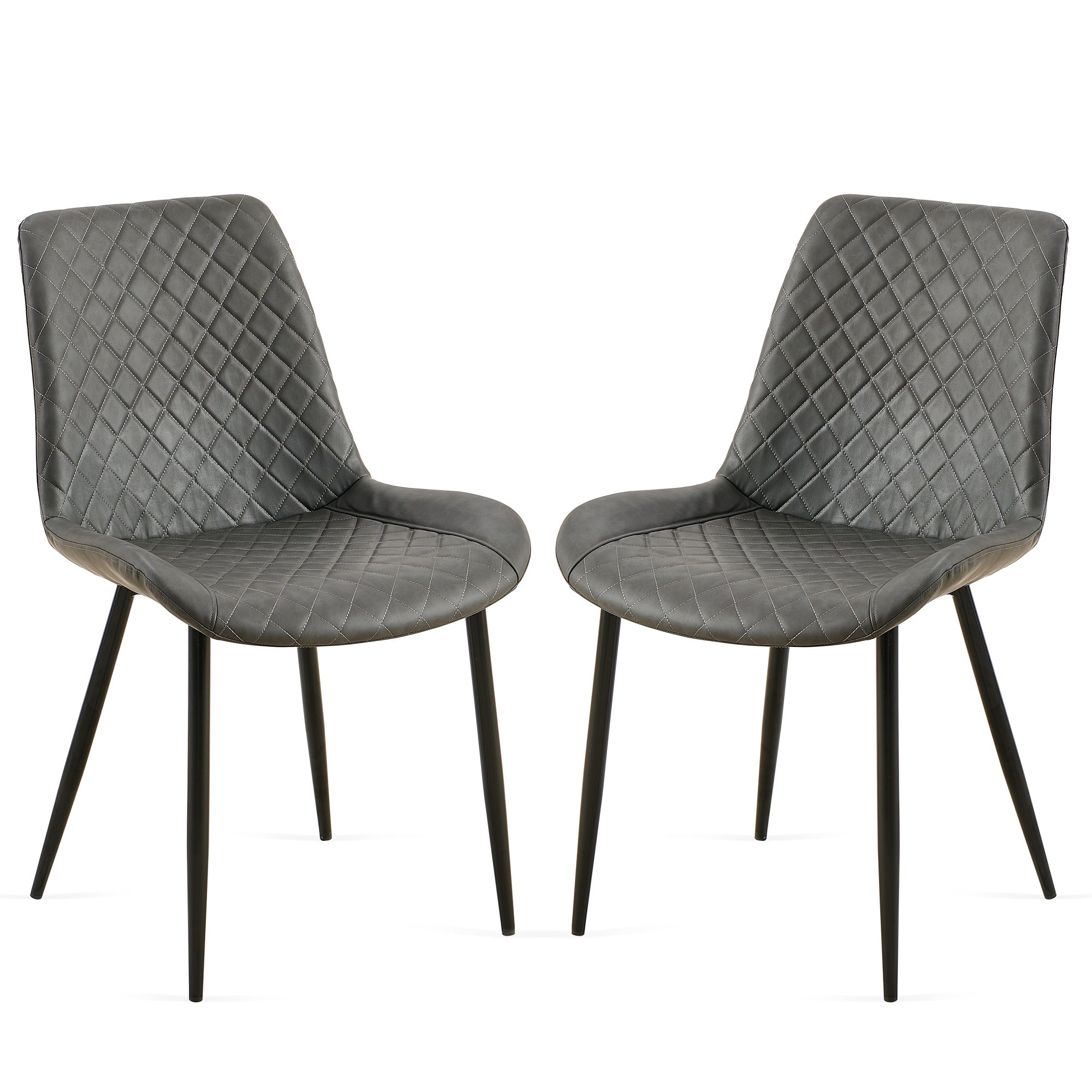 Refresh your dining or living space with this sleek 2-piece set of dark grey Leathaire side chairs—designed to blend mid-century modern lines with contemporary comfort. The streamlined armless silhouette and slender metal legs make these chairs a versatile accent for kitchens, dining rooms, home offices, or living areas, while the durable Leathaire upholstery offers easy care and a refined look that elevates any décor without overwhelming it.