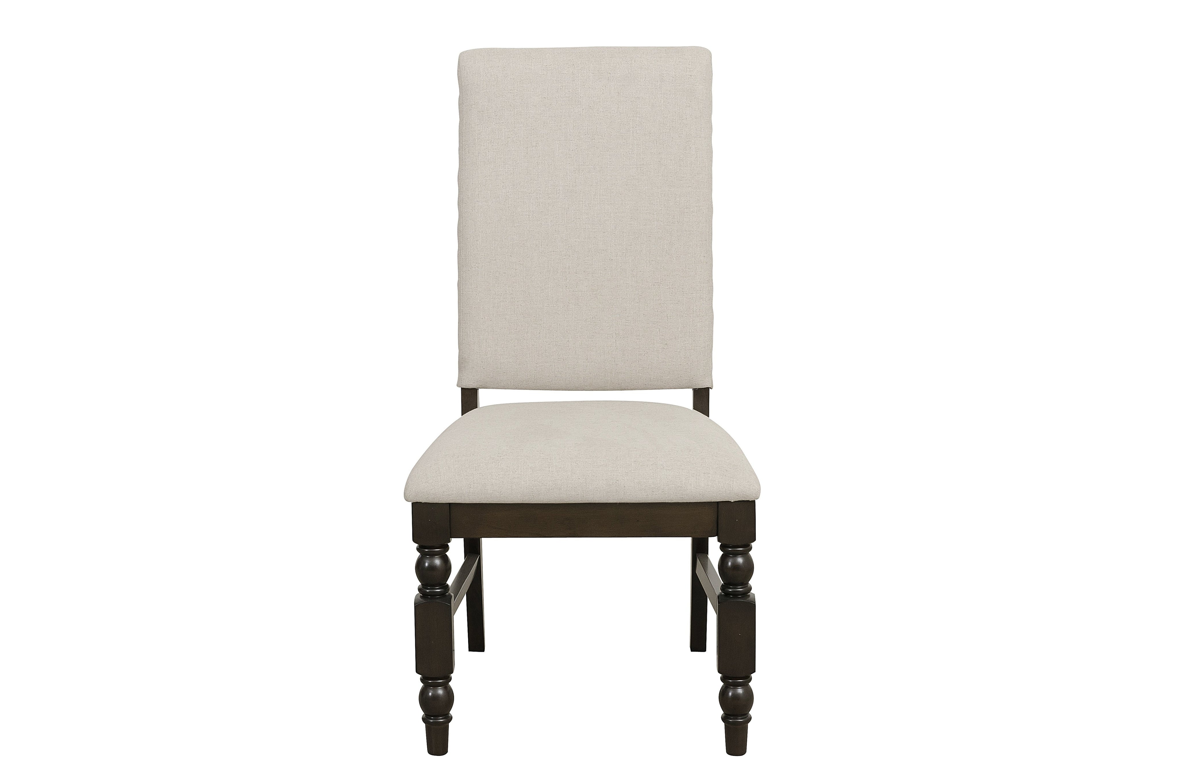 Elevate your dining space with these Dark Oak Finish wooden side chairs—where classic country charm meets modern industrial design. Each chair pairs a cream upholstered back and seat with turned block-style wood legs and tasteful nailhead trim for a refined yet relaxed look. Designed for comfort and visual appeal, this set of two delivers durable construction and easy assembly for immediate use in your dining room or breakfast nook.