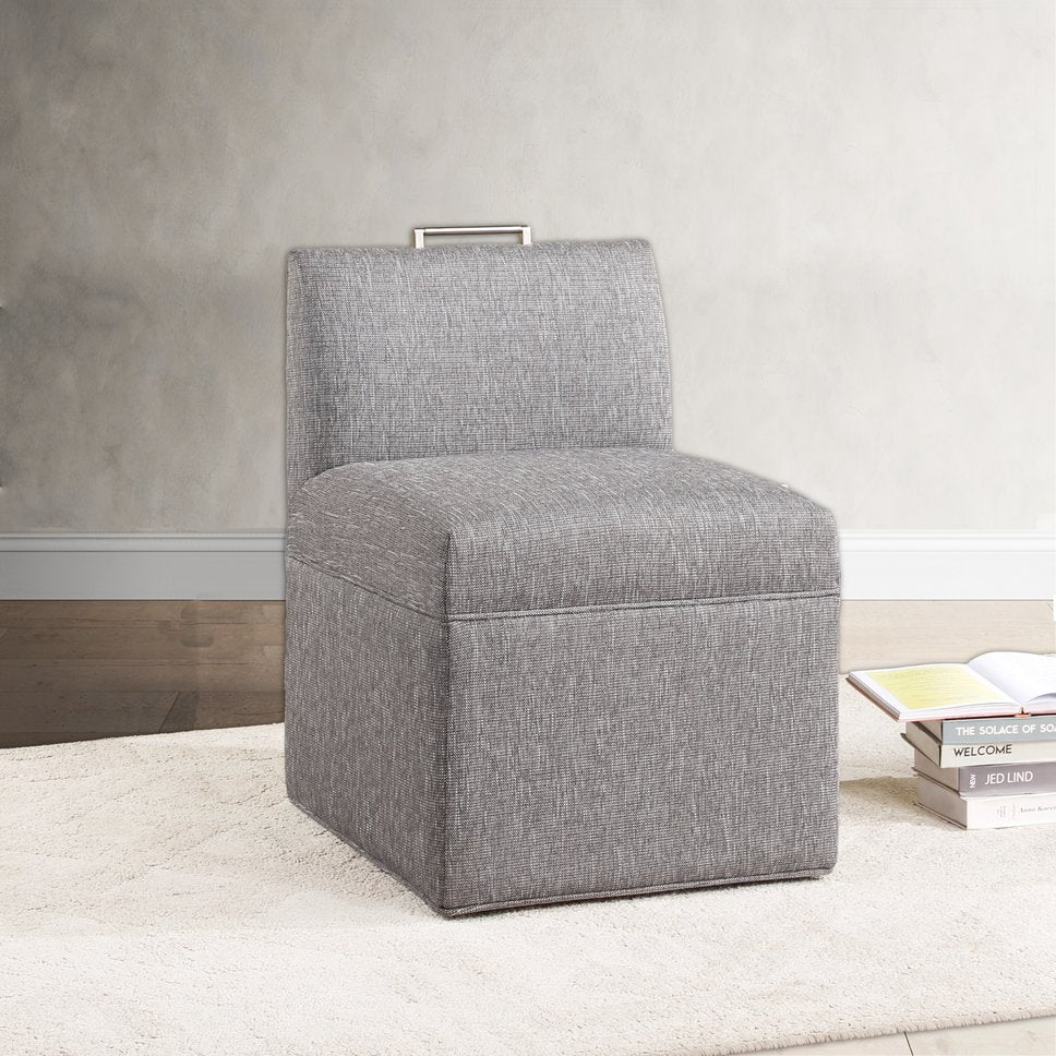 Refresh your workspace or dining area with the Della Modern Upholstered Castered Chair — a sleek, comfortable chair that blends contemporary design with practical performance. Upholstered in Ashen Grey performance fabric, this chair is engineered for everyday life: stain-, odor-, and moisture-resistant, easy to clean, and built on a durable hardwood frame with convenient casters and a tasteful nickel handle for effortless mobility and refined style.