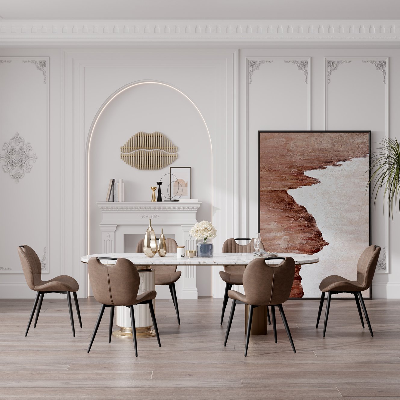 - Finish & color: Brown PU leather upholstery with natural wood-tone legs for a versatile modern look.