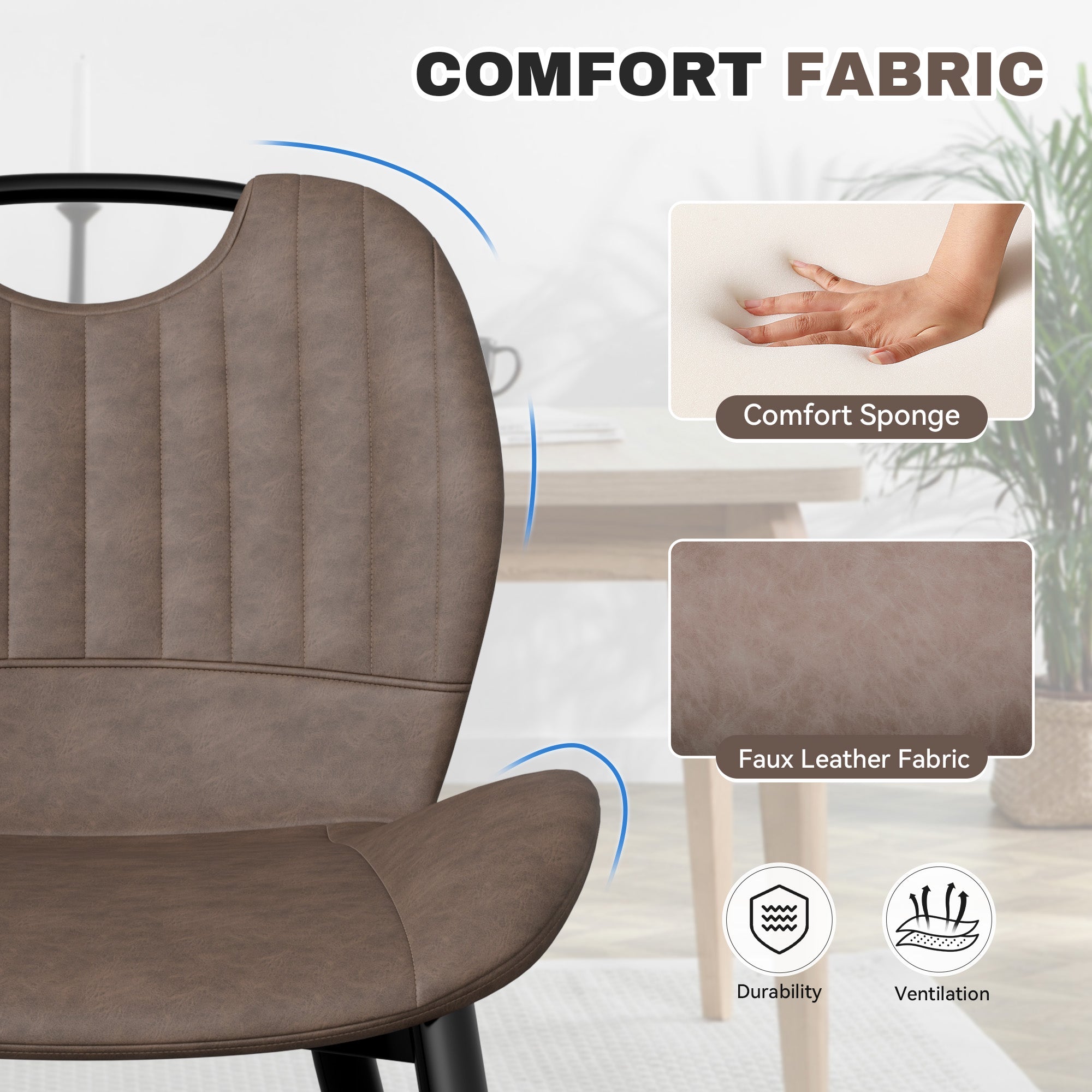 Upgrade your dining area with this contemporary set of 2 armless dining chairs that blend sleek modern styling with everyday comfort. Upholstered in water-resistant brown PU leather and supported by solid wood legs, these chairs are designed for durability and easy maintenance while offering an ergonomic, naturally curved backrest and a generously padded seat for relaxed dining or extended conversation.