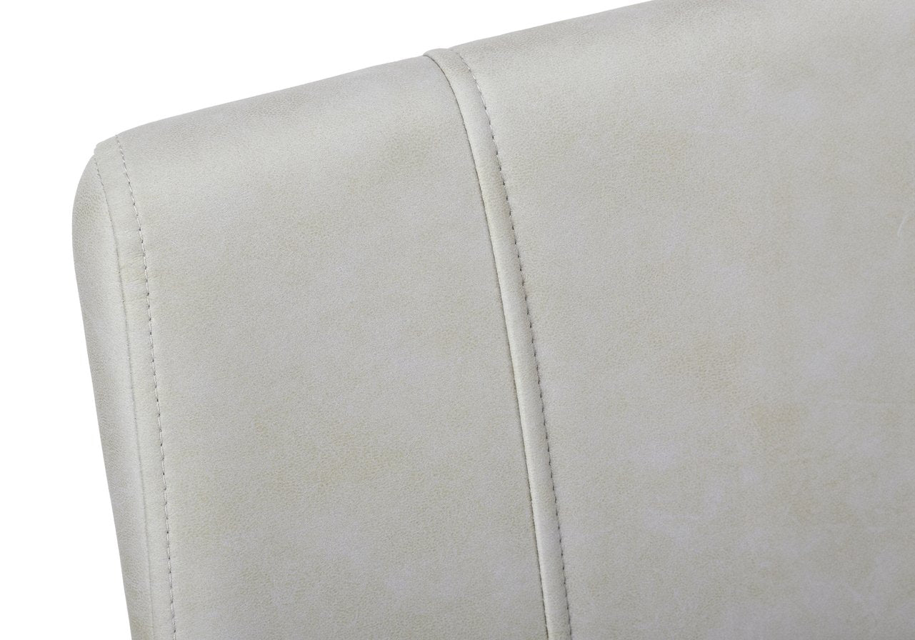 - Upholstery: Grey faux-suede polyester fabric with two vertical rows of stitching for a tailored, elegant look.