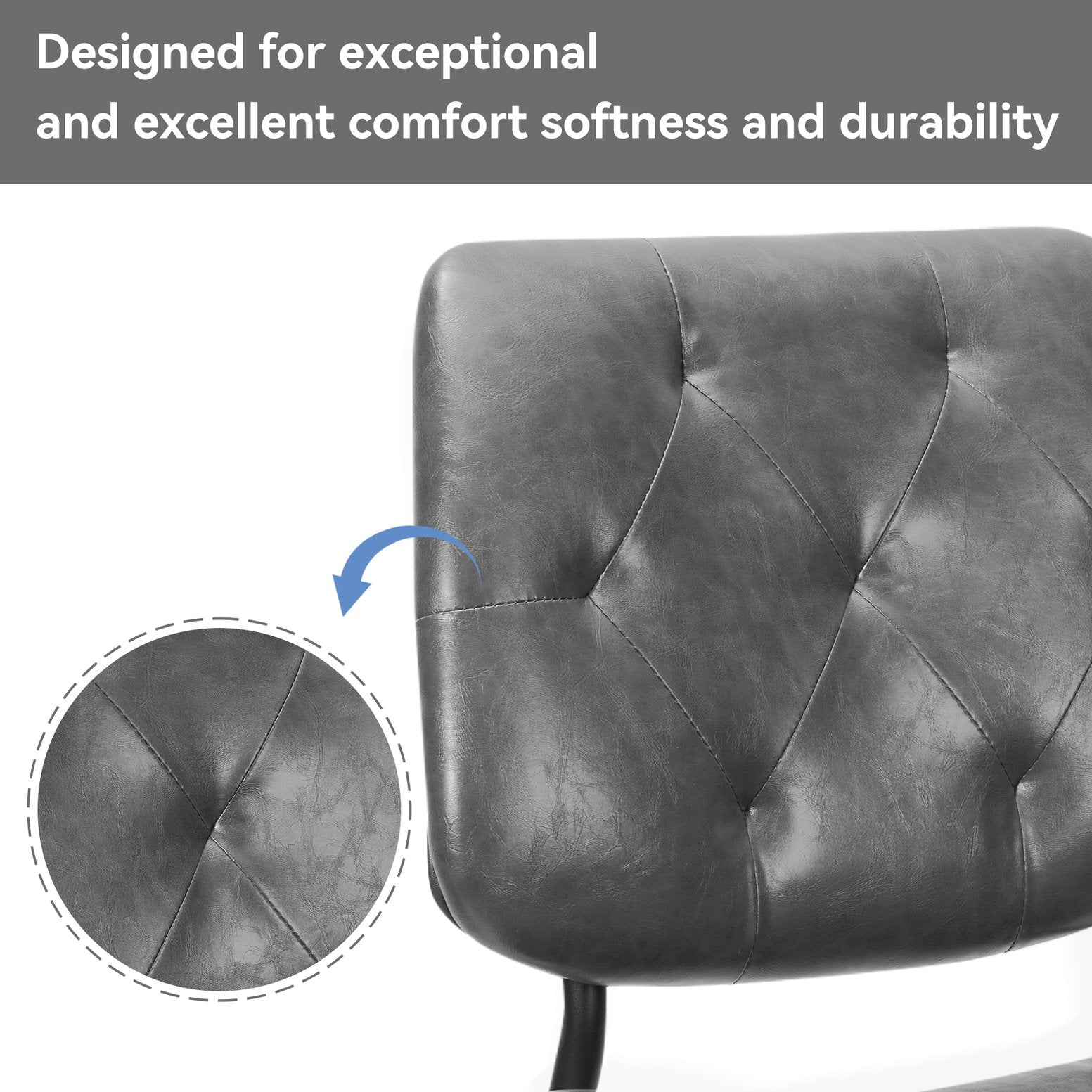 Enjoy upgraded comfort and contemporary style with this set of two upholstered dining chairs. Wrapped in soft dark gray PU leather and built with a supportive, ergonomic shape, these side chairs bring a refined, versatile look to dining rooms, kitchens, living areas, or home offices. The thick cushioning and breathable faux-leather surface deliver lasting comfort while remaining easy to clean and maintain.
