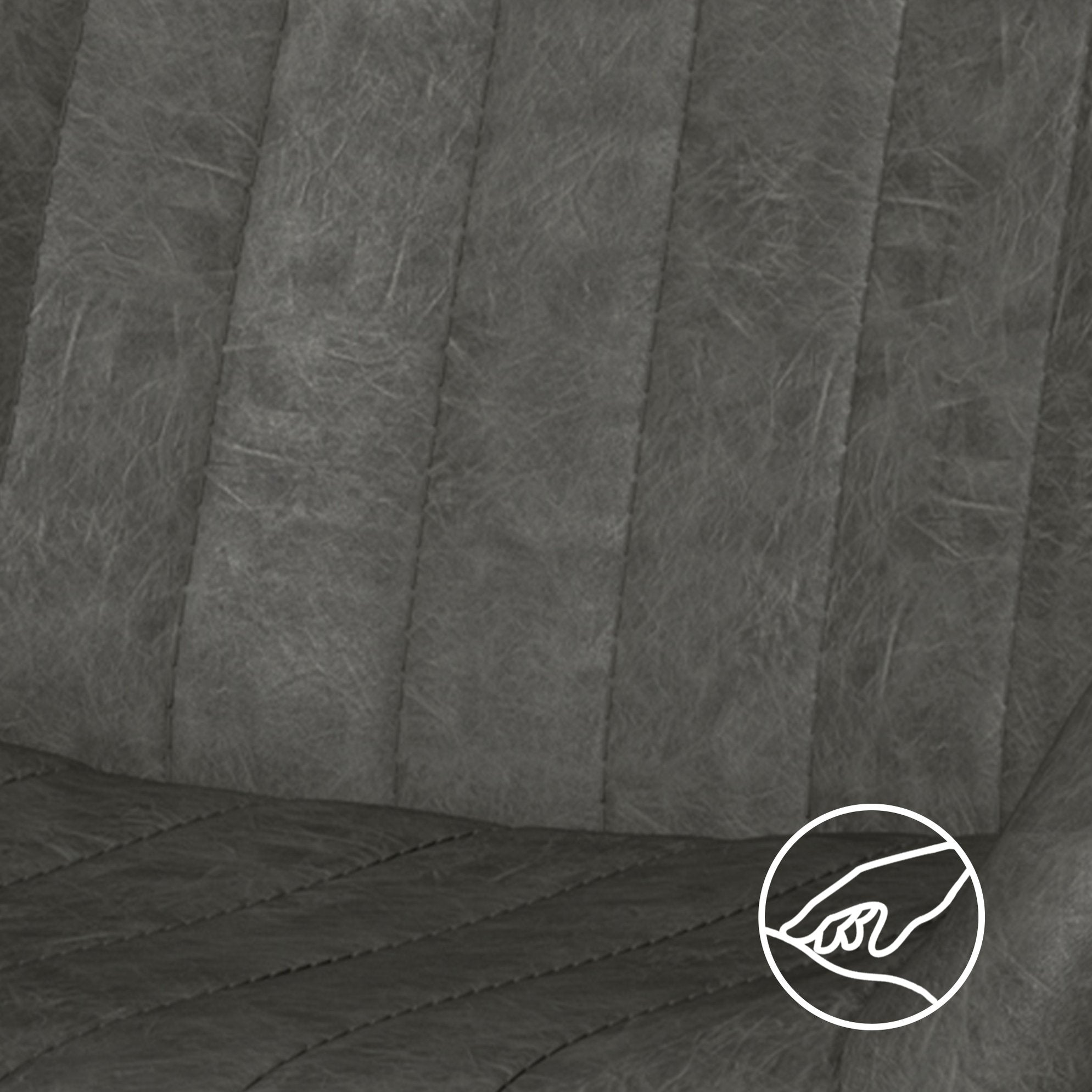 - Upholstery: Smooth, dark gray faux leather over padded cushions for a refined look that’s simple to wipe clean and maintain.