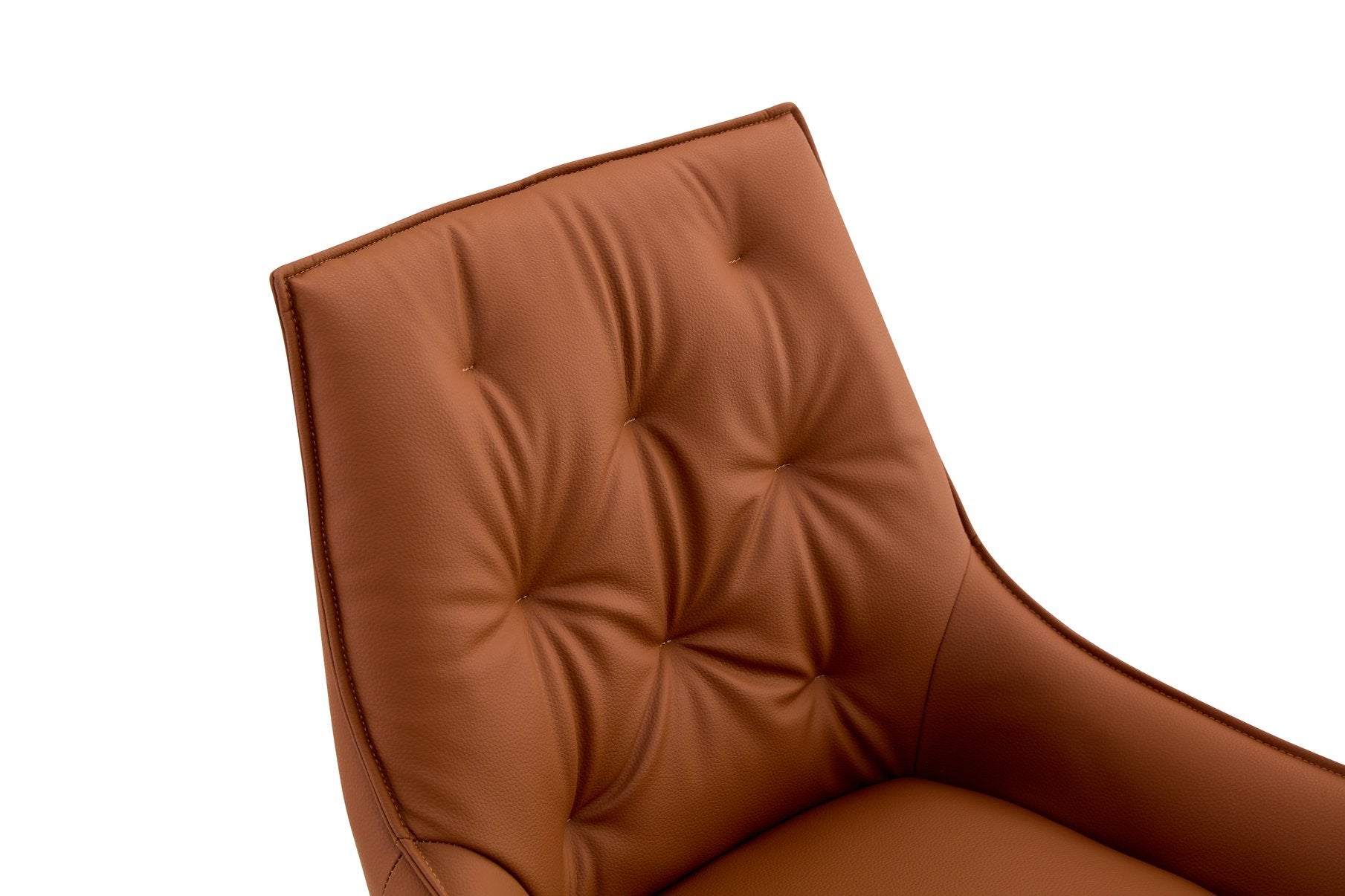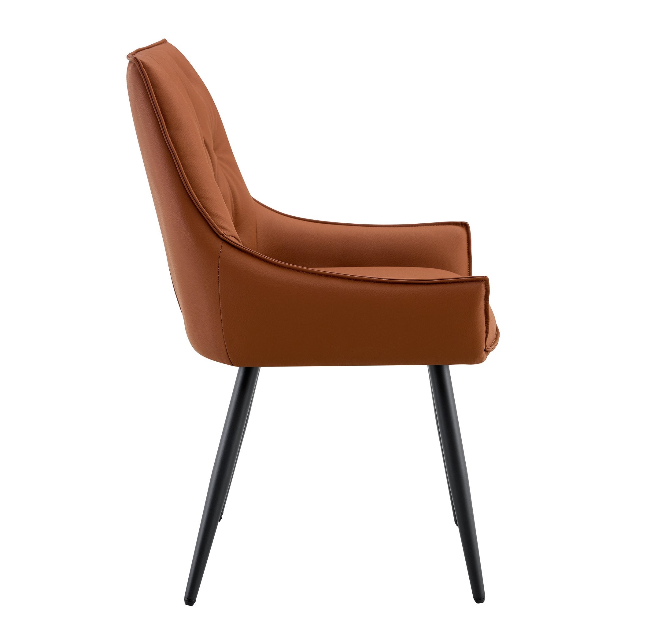 Add timeless elegance and everyday comfort to your dining space with these modern camel faux-leather chairs. Upholstered in premium PU leather with a subtle gold mesh texture and supported by sturdy black sanded legs, each chair pairs retro-inspired button-tufting and ergonomic contours with durable, easy-care materials—perfect for dining rooms, kitchens, or home offices.