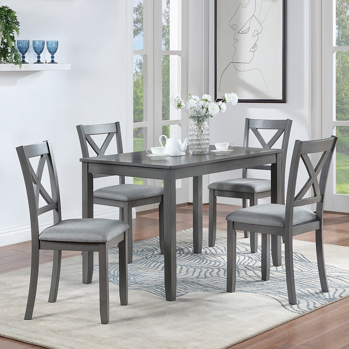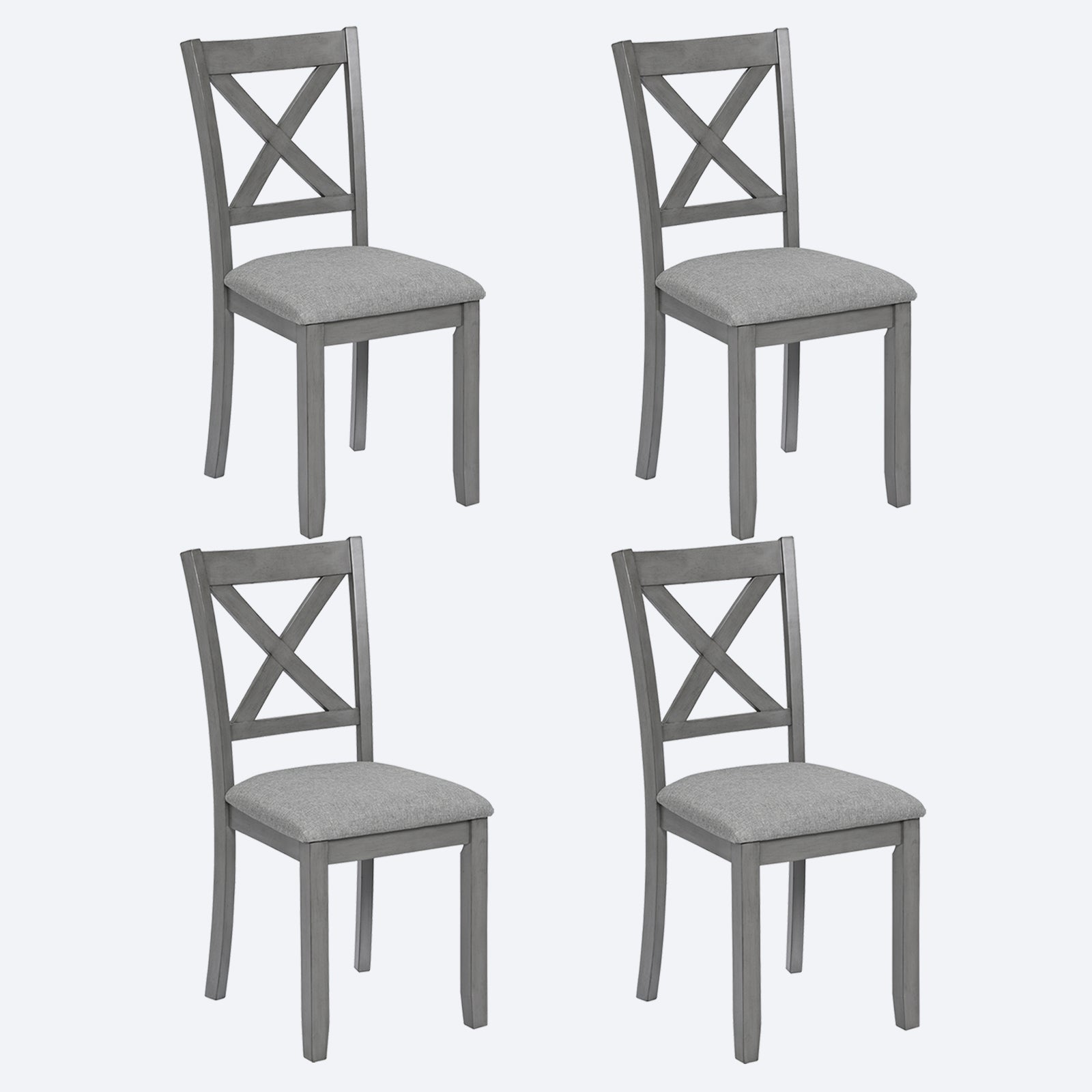 Upgrade your dining area with this elegant set of four upholstered side chairs, designed for comfort, durability, and modern style. Each chair combines a solid wood frame with plush cushioning and breathable linen upholstery to create a versatile seating solution ideal for the kitchen, dining room, living room, or waiting area. Thoughtful details—like an ergonomically curved X-shaped backrest and non-slip feet—ensure long-lasting comfort and stable use, while the neutral gray finish complements a wide range of décors.