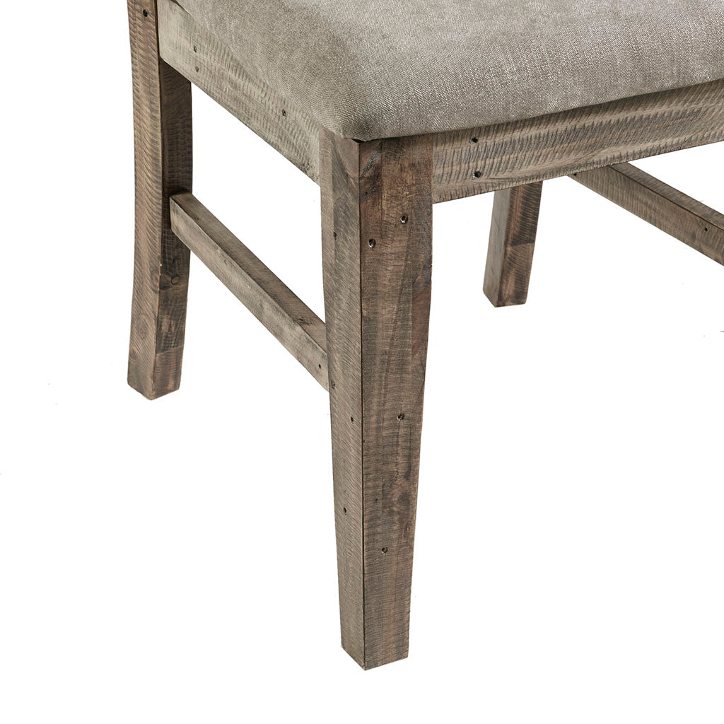 Bring rustic industrial charm and everyday comfort to your dining area with this set of two Oliver Dining Side Chairs. Each chair pairs a hand-distressed solid wood frame and weathered grey finish with plush, upholstered cushions for back support and seating comfort—ideal for family meals, casual gatherings, or as stylish extra seating in your kitchen or dining room. Simple leg assembly required.