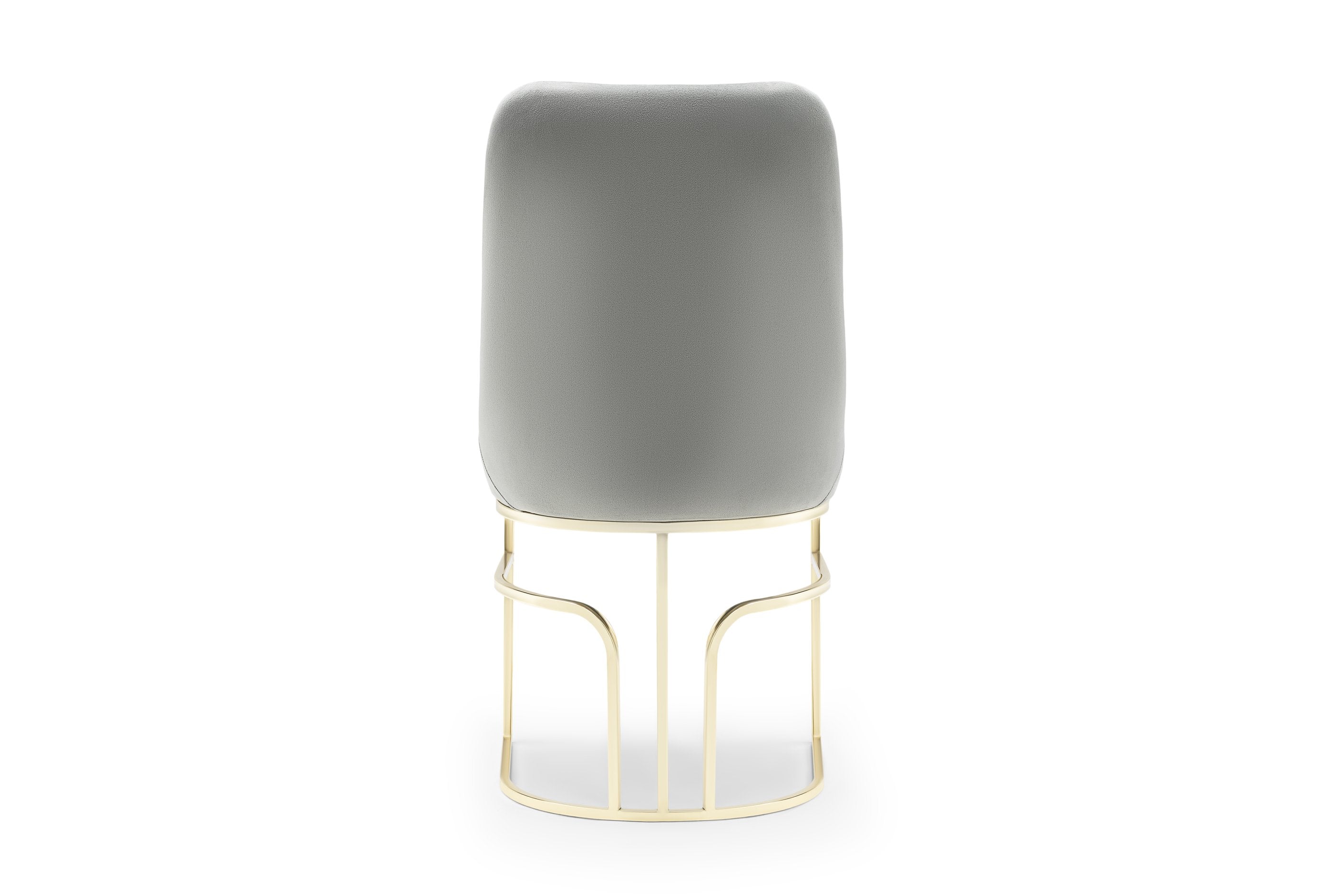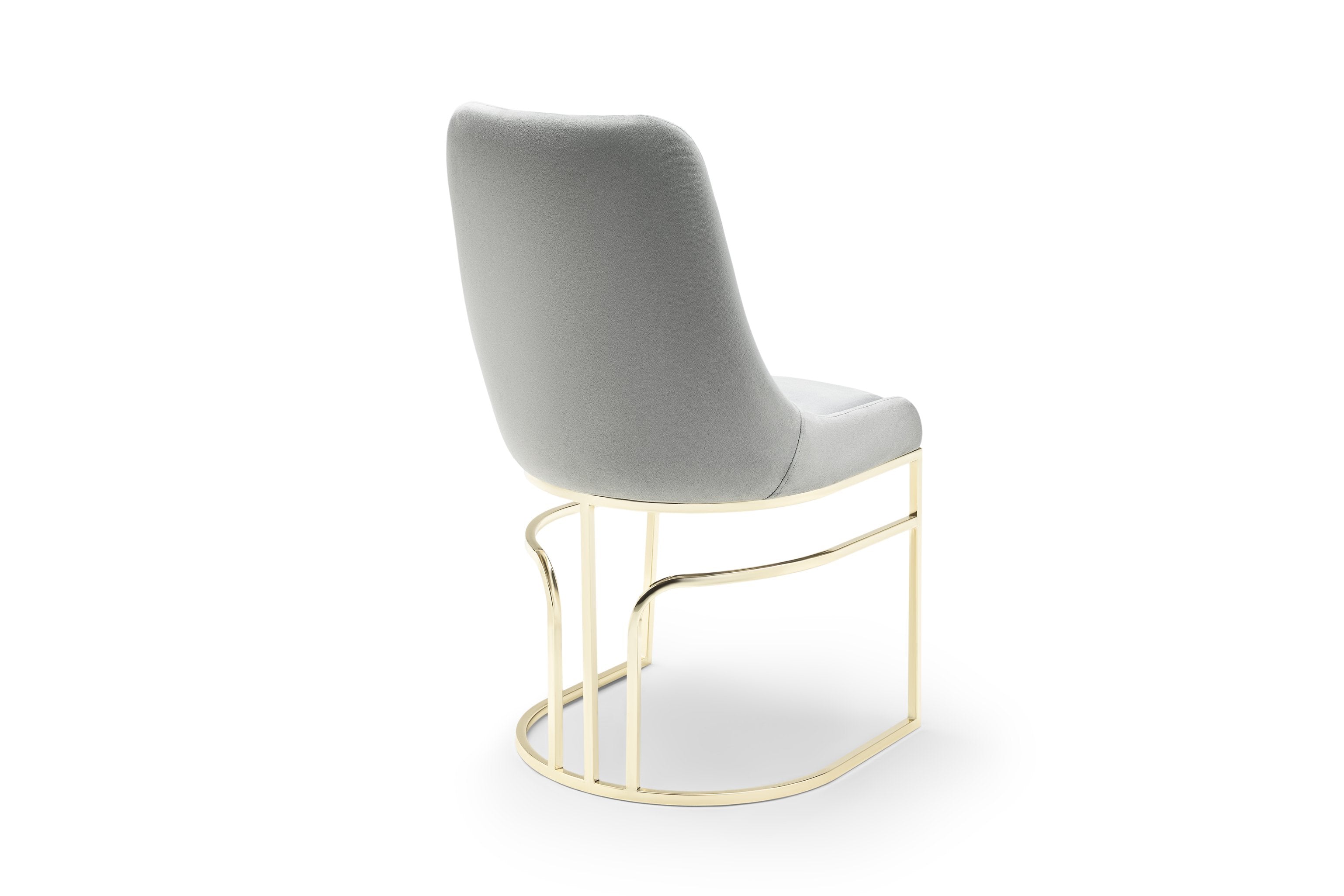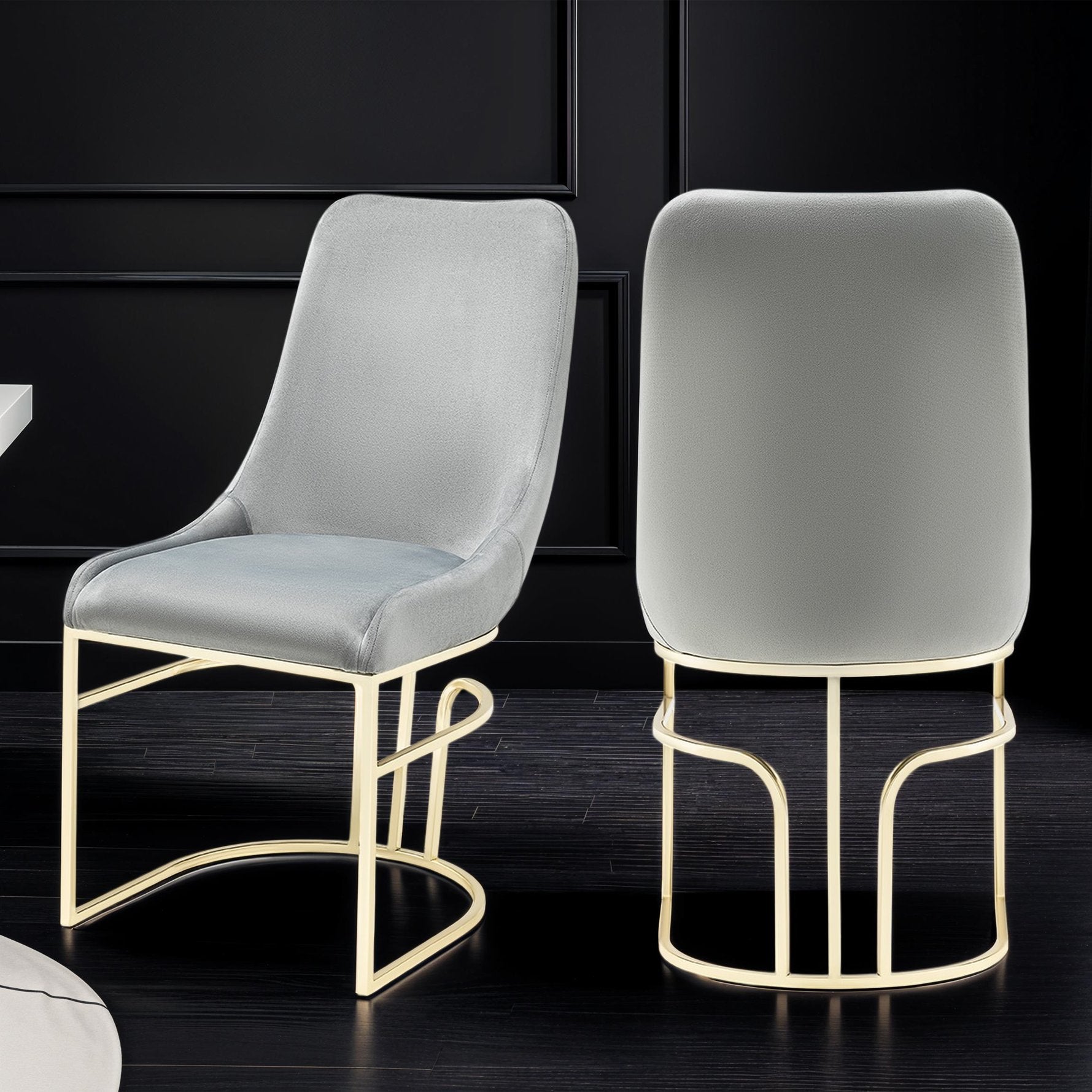 Experience modern luxury with these Emrald dining chairs—designed to combine sleek contemporary style with lasting comfort. Upholstered in sumptuous gray velvet and supported by striking gold-finished legs, each chair elevates dining and living spaces with a refined silhouette and ergonomic seating.