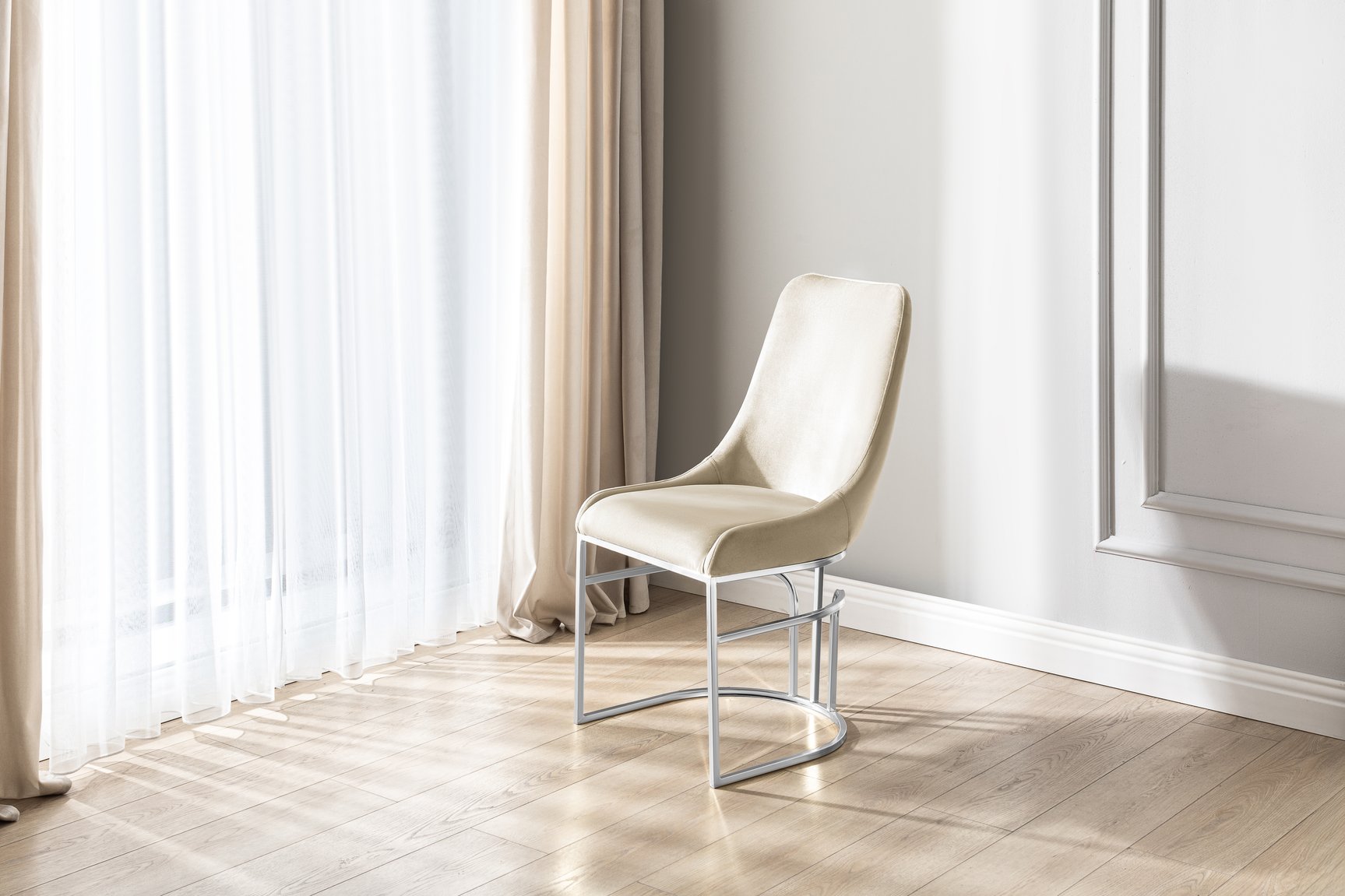 Discover a refined blend of contemporary design and everyday comfort with this modern two-piece dining chair set. Upholstered in plush beige velvet and supported by sleek steel legs, these chairs bring warmth, durability, and a touch of luxury to dining rooms, breakfast nooks, or as stylish accent seating.