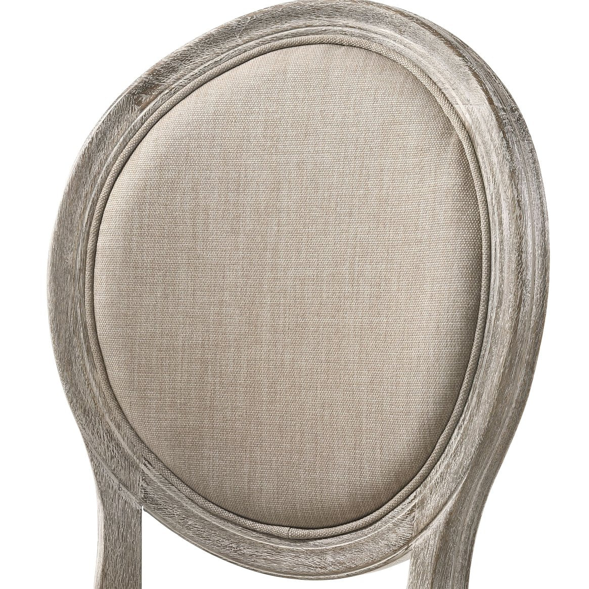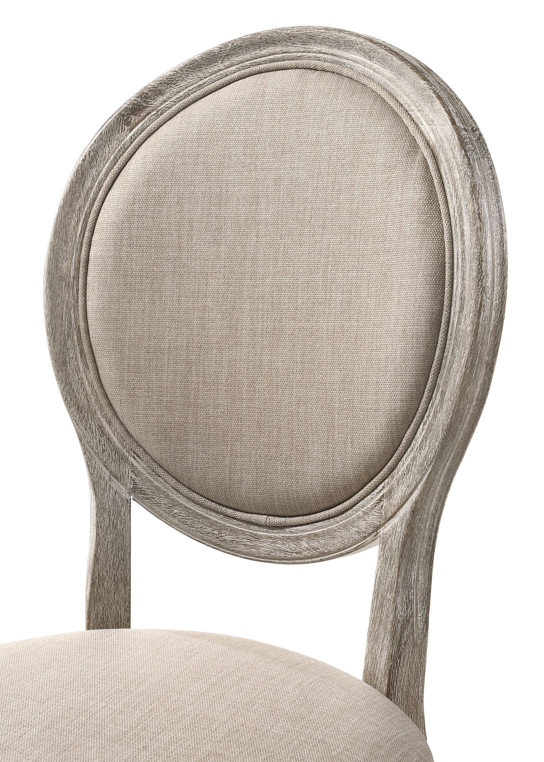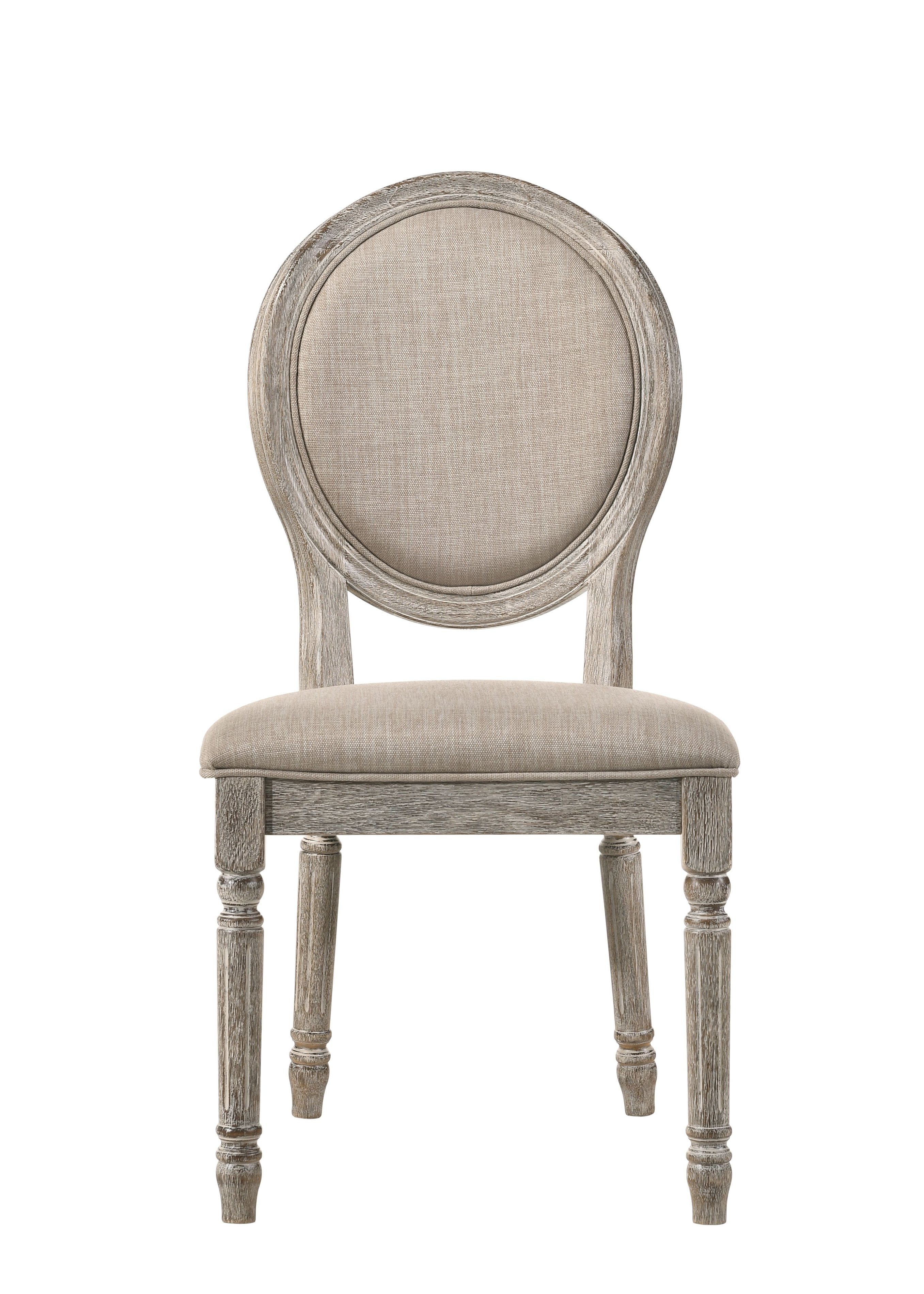 Elevate your dining or seating area with these elegant side chairs that blend classic craftsmanship and modern comfort. Upholstered in soft tan fabric atop a salvaged light oak–finish frame, this set of two chairs offers refined detailing—turned legs, an oval back, and boxed seat construction—while remaining durable for everyday use.